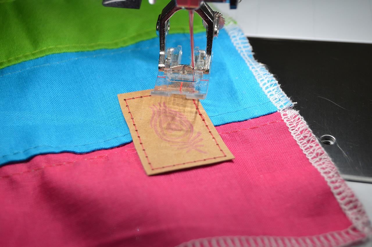 Näht nun einmal an der oberen Kante entlang. Achtet auch hier darauf, dass Ihr genau auf der Naht des Tunnels näht.