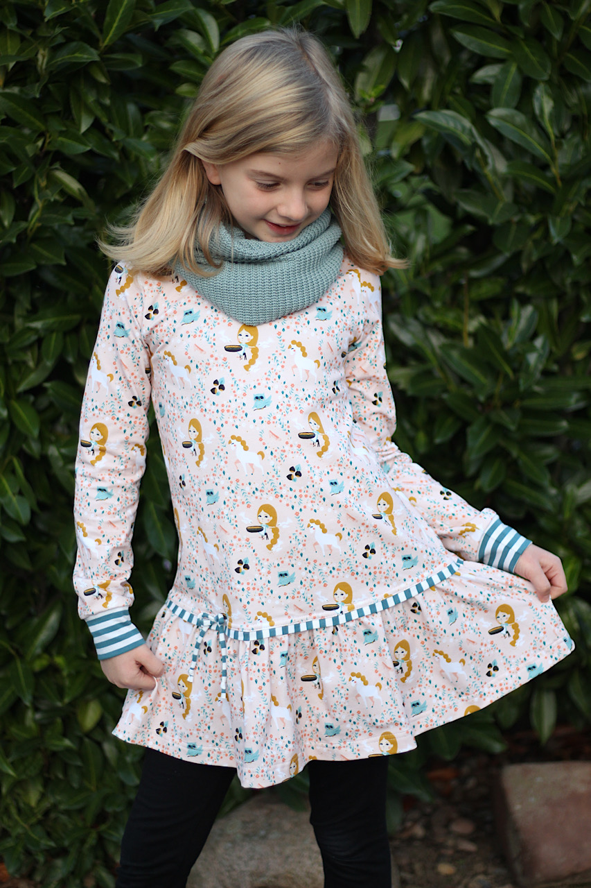 Wer einen der Aschenbrödel Stoffe mit einem Unistoff kombinieren möchte, dem können wir heute ganz besonders unseren Pamuk in Jade (Farb-Nr. 769) ans Herz legen.