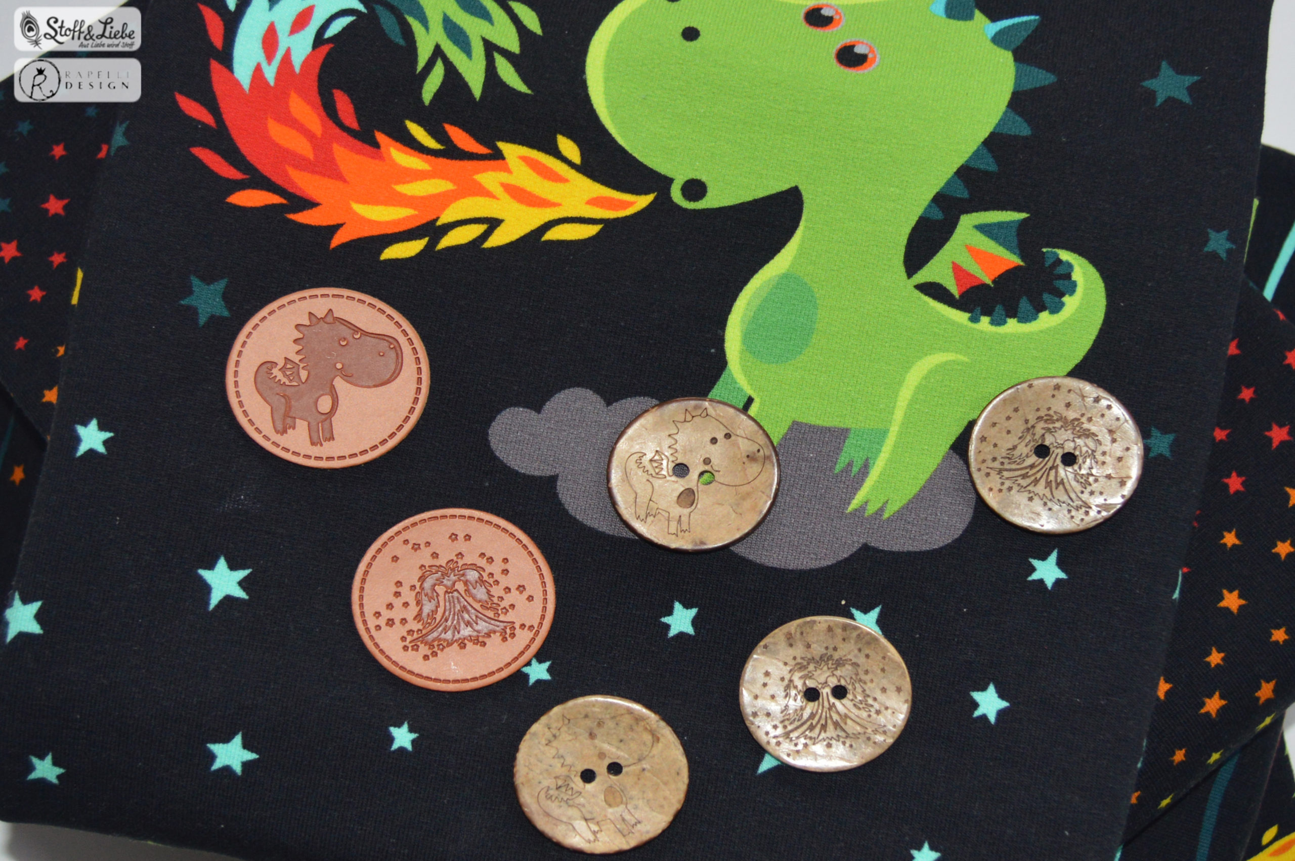 Falls Ihr Eure Nähwerke mit passenden Labels oder Knöpfen aufwerten möchtet, können wir Euch noch einen Tipp geben. Vielleicht habt Ihr die Knöpfe und Label auch schon bei den Designbeispielen entdeckt?