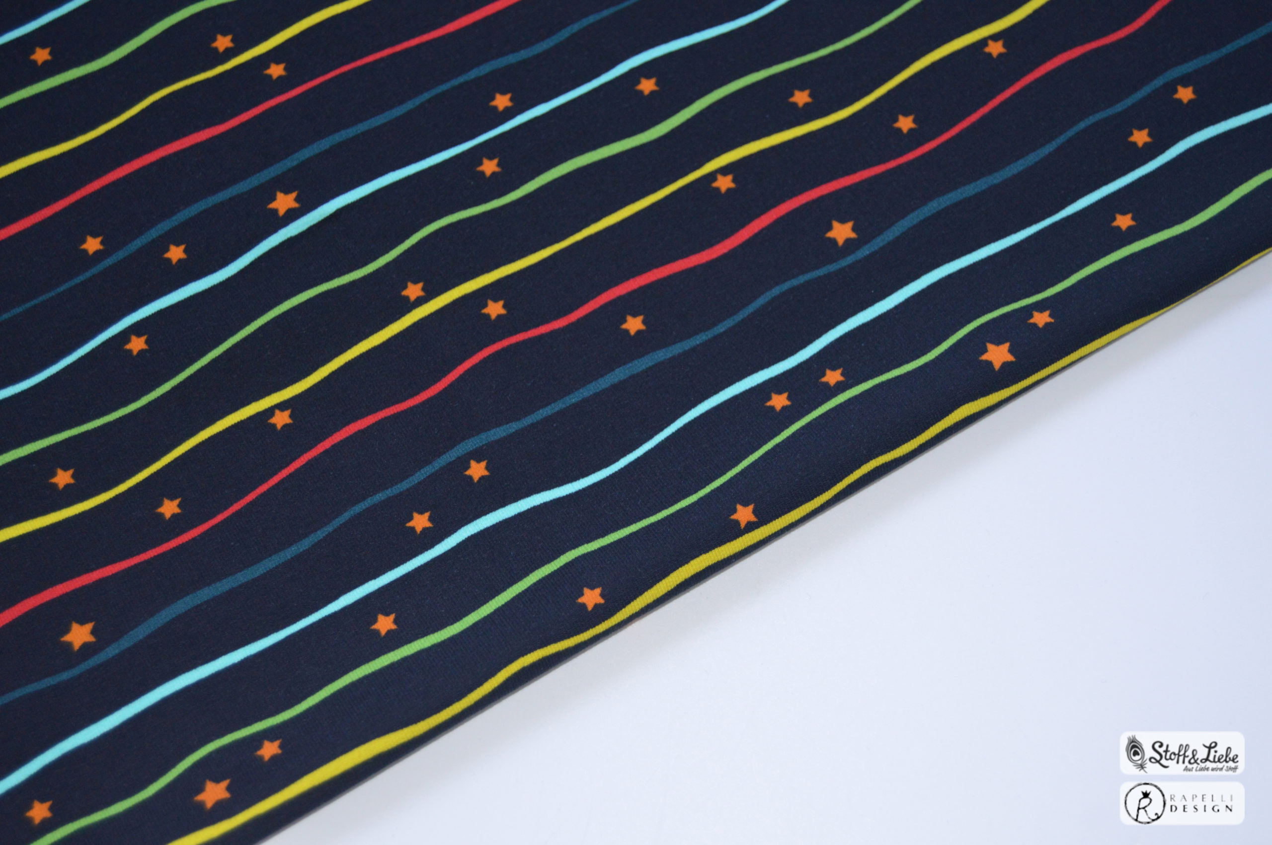 Zum Kombinieren haben wir für Euch die zauberhaften Sterne und Stripe Me Ribbons in bunten Farben. Allerdings müssen wir auch hier wieder zugeben, dass sich diese Stoffe auch wunderbar solo vernähen lassen, wie Ihr weiter unten bei den Designbeispielen sehen könnt.