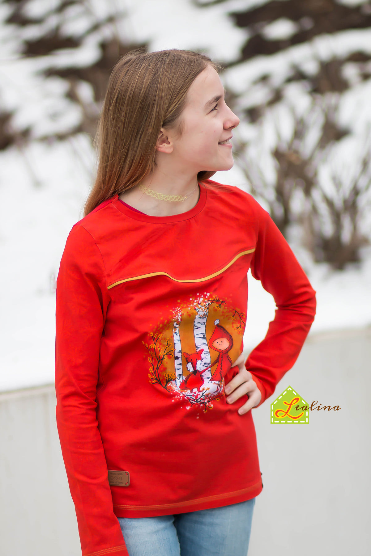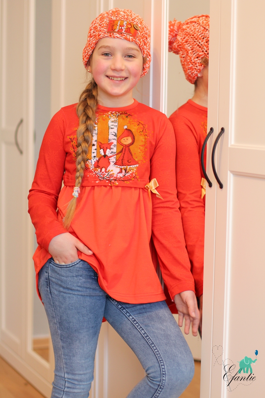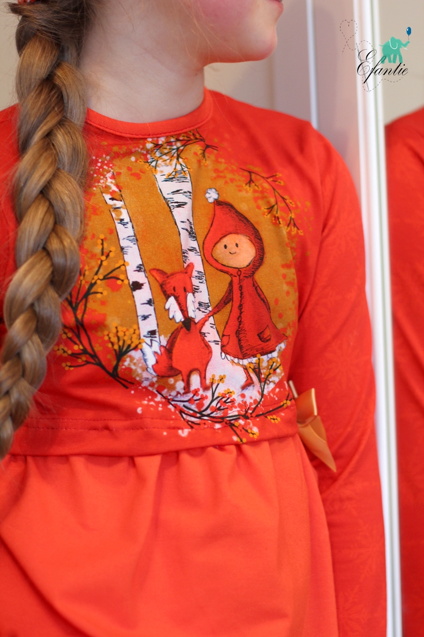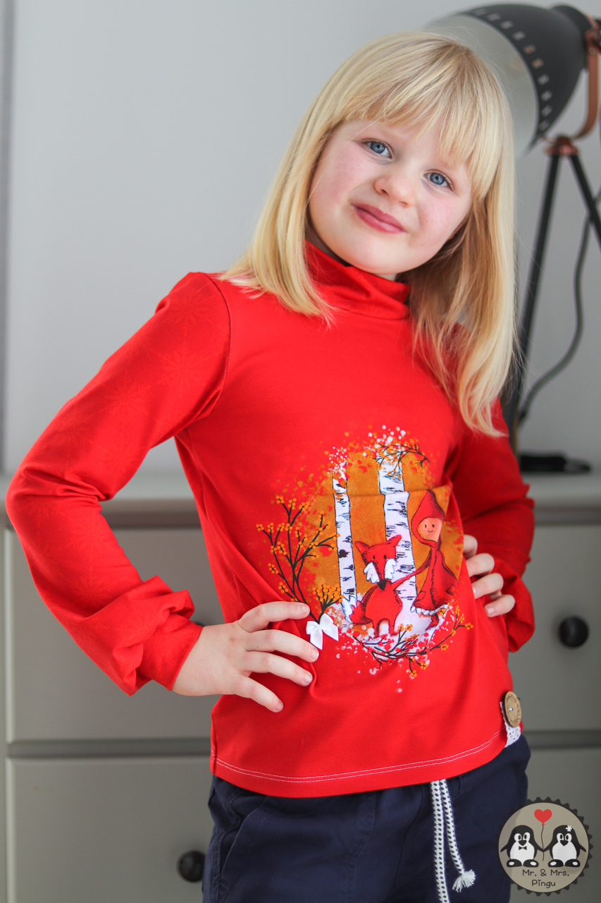 Das Panel ist im Verhältnis 1/3 zu 2/3 aufgeteilt. Auf dem ersten Drittel findet Ihr das zuckersüße, detailreiche Motiv „Rotkäppchen und der liebe Fuchs“ und auf dem zweiten Drittel befinden sich (hauchfein zu erkennen) Schneeflocken im Allover Design. So habt Ihr mit dem Panel alle Möglichkeiten für tolle Outfits. Wie wäre es zum Beispiel mit einem schicken Shirt? Einem Kleid oder einem kuscheligen Hoodie?