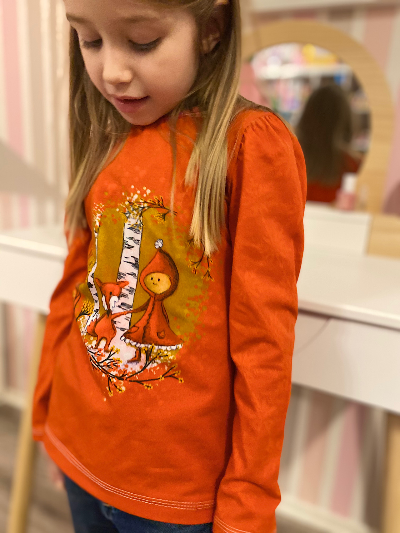 Nicht nur die Geschichte des Rotkäppchens ist märchenhaft, auch das Design aus der Feder von Mietz & Morle – Anne Baier ist es. Wir waren vom ersten Moment an verzaubert und als wir dann den Stoff in den Händen hielten, wussten wir, dass dieser Stoff etwas ganz Besonderes für Euch und uns sein wird.