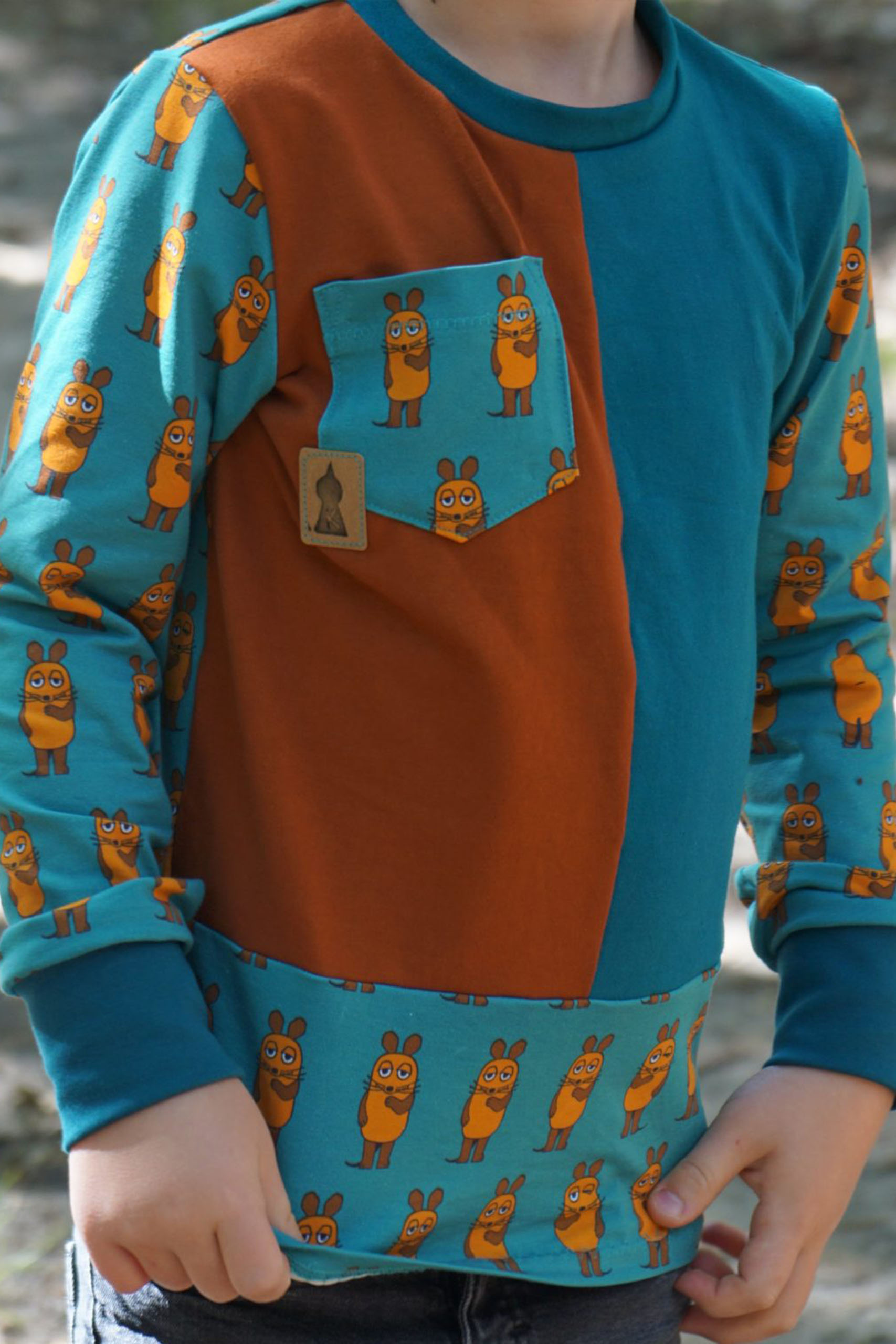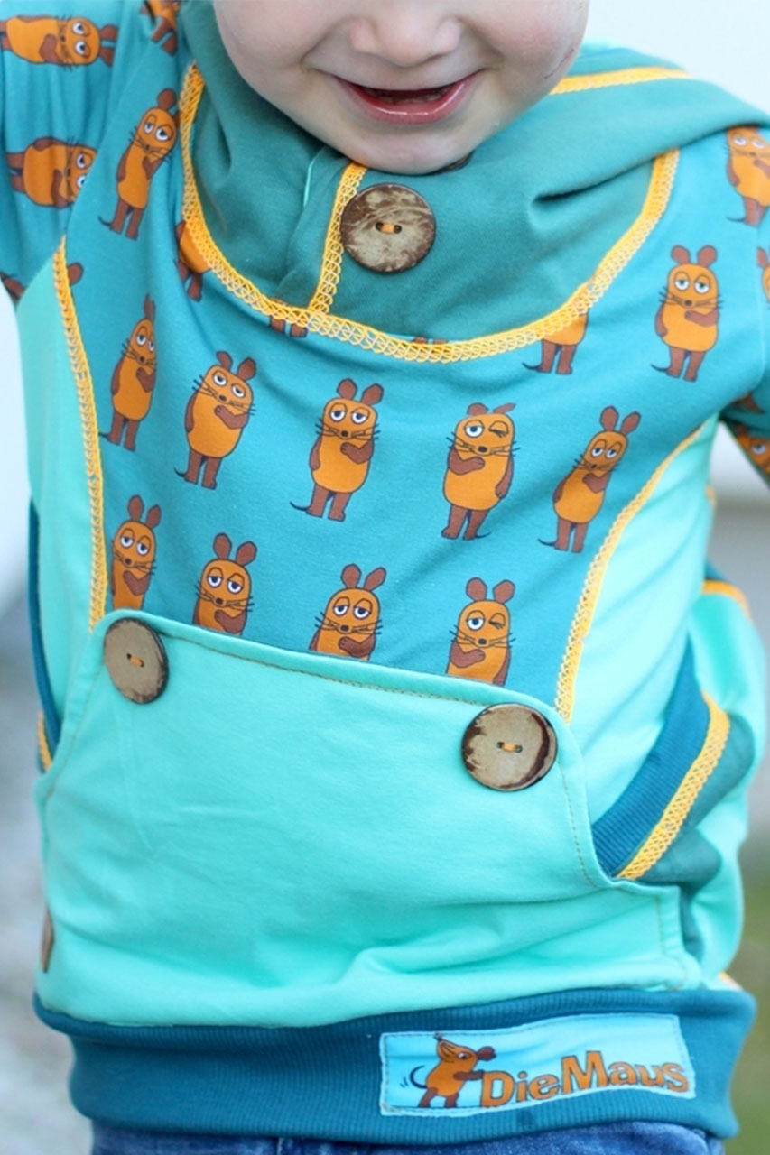 Ihr kennt die Maus Vorne-Hinten schon als niedlichen Allover Stoff auf French Terry. Heute haben wir ihn für Euch in zwei neuen Farben auf Jersey. Genau wie beim French Terry bleiben hier wirklich keine Nähwünsche offen, denn er ist einfach absolut passend für eine Vielzahl an Nähprojekten. Ob Jacke, Kleid, Latzhose, Rock oder kuscheliger Hoodie, jedes Teil wird mit diesem Stoff ein Hingucker sein. Und wer genau hinsieht, entdeckt, dass die Maus sich nicht nur von Vorne zeigt, sondern auch von hinten zu sehen ist. Umgesetzt wurde dieses Design für uns von Ännisews.