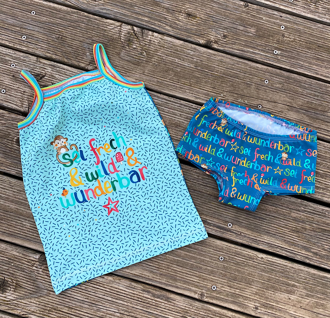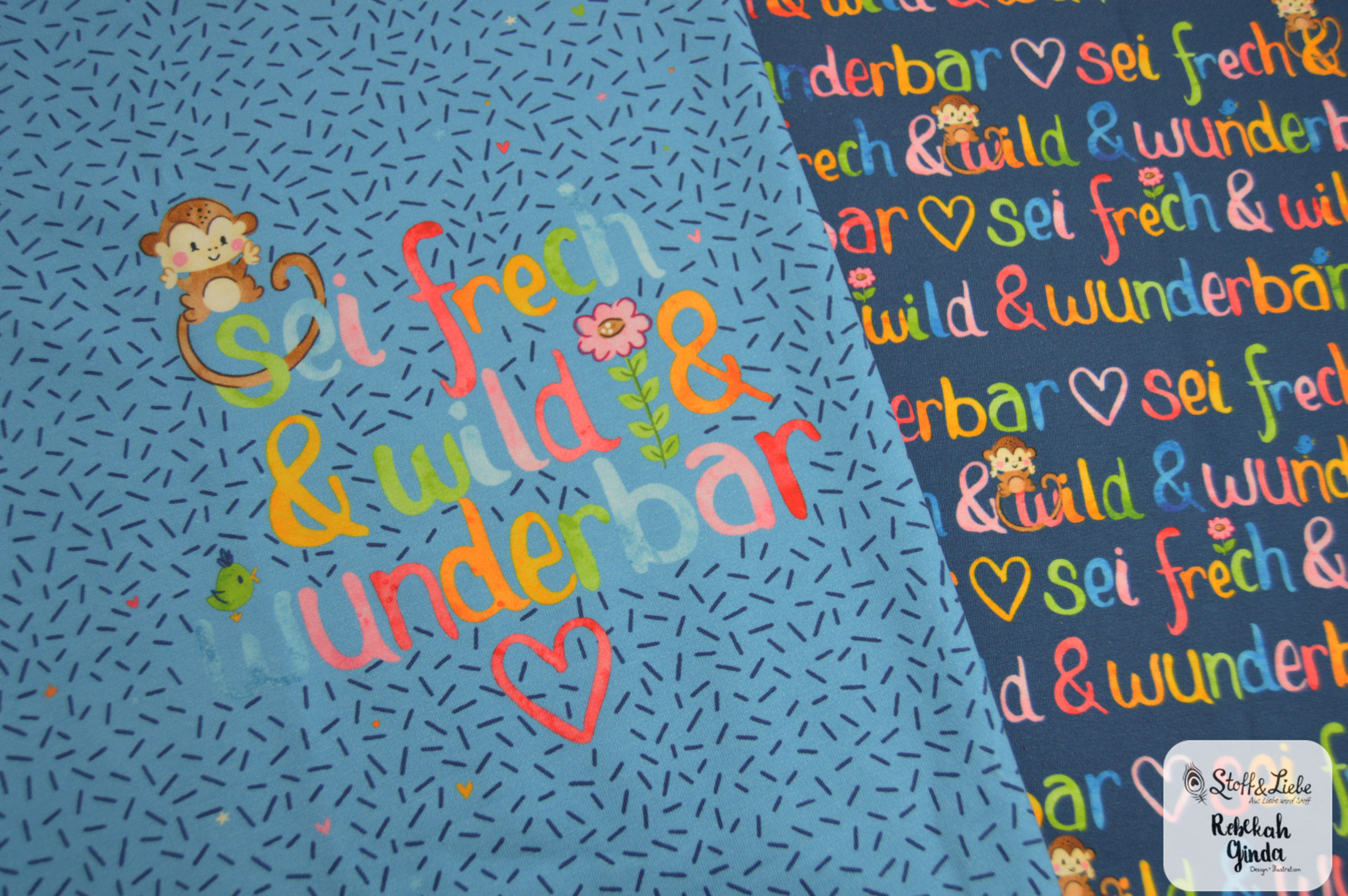Die Panele werdet Ihr auf Jersey in unserer gewohnten Spitzenqualität mit einer Materialzusammensetzung von 95 % Baumwolle und 5 % Elasthan bekommen. Das Design stammt, wie auch die vorherigen „Frech & Wild“ Kollektionen, von Rebekah Ginda.