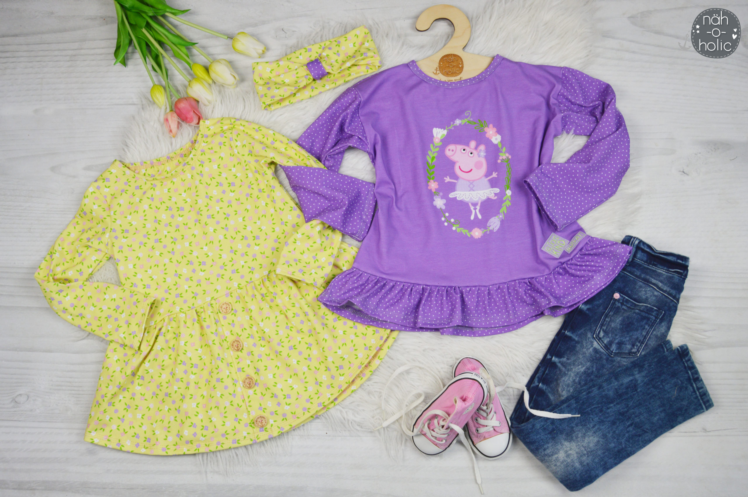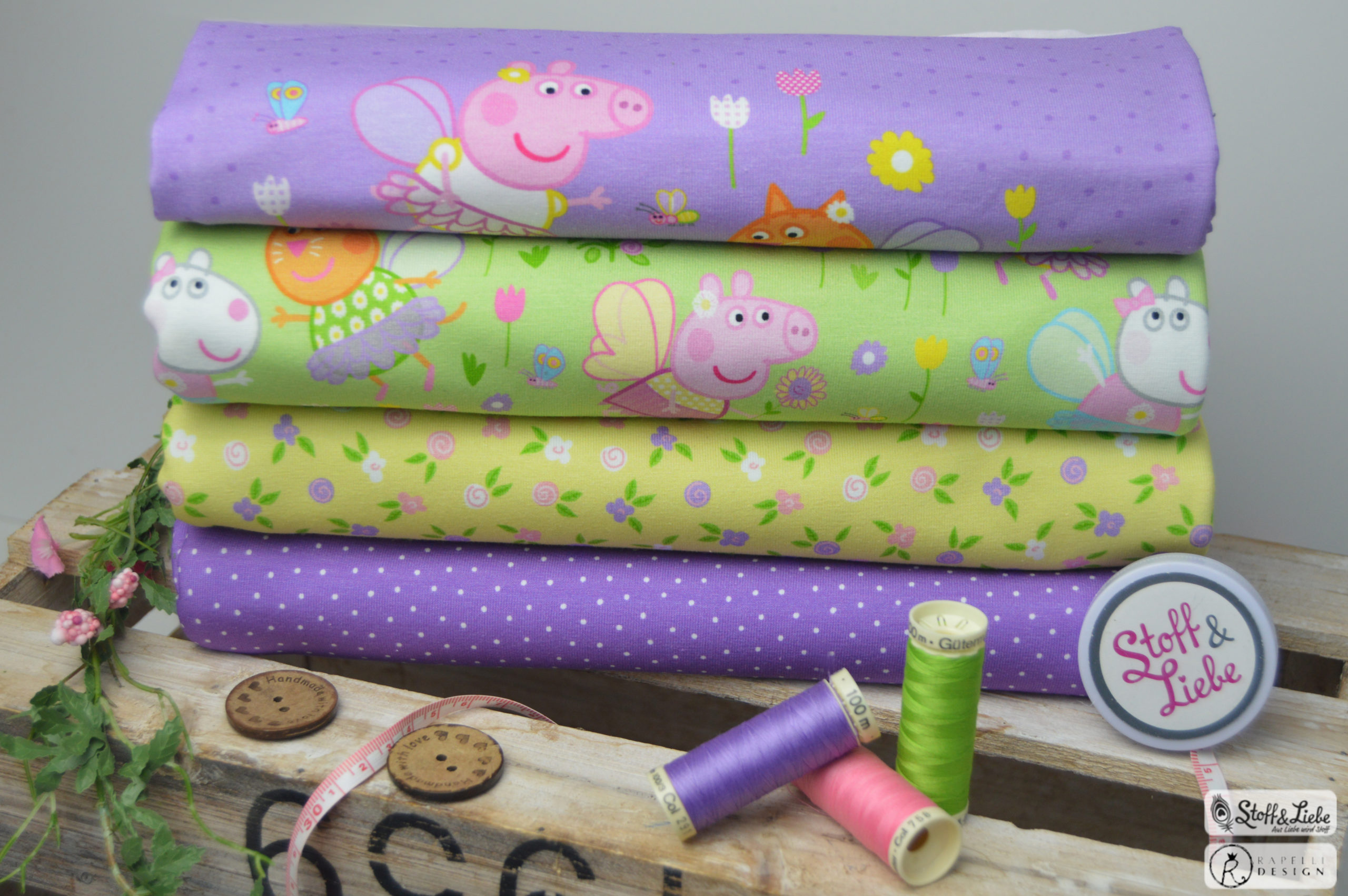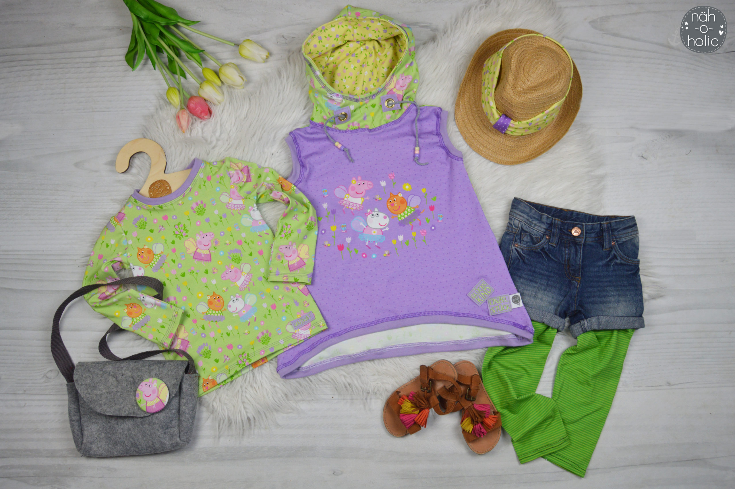 Der Frühling steht in den Startlöchern und auch der Sommer ist nicht mehr weit! Die ersten Sonnenstrahlen haben uns schon an der Nase gekitzelt, langsam fangen Blumen und Bäume an zu blühen, Vögel zwitschern schon in der Frühe, Zeit Sommerteile in frischen Farben zu nähen! Und vor allem Zeit für eine neue Peppa Wutz Kollektion!
