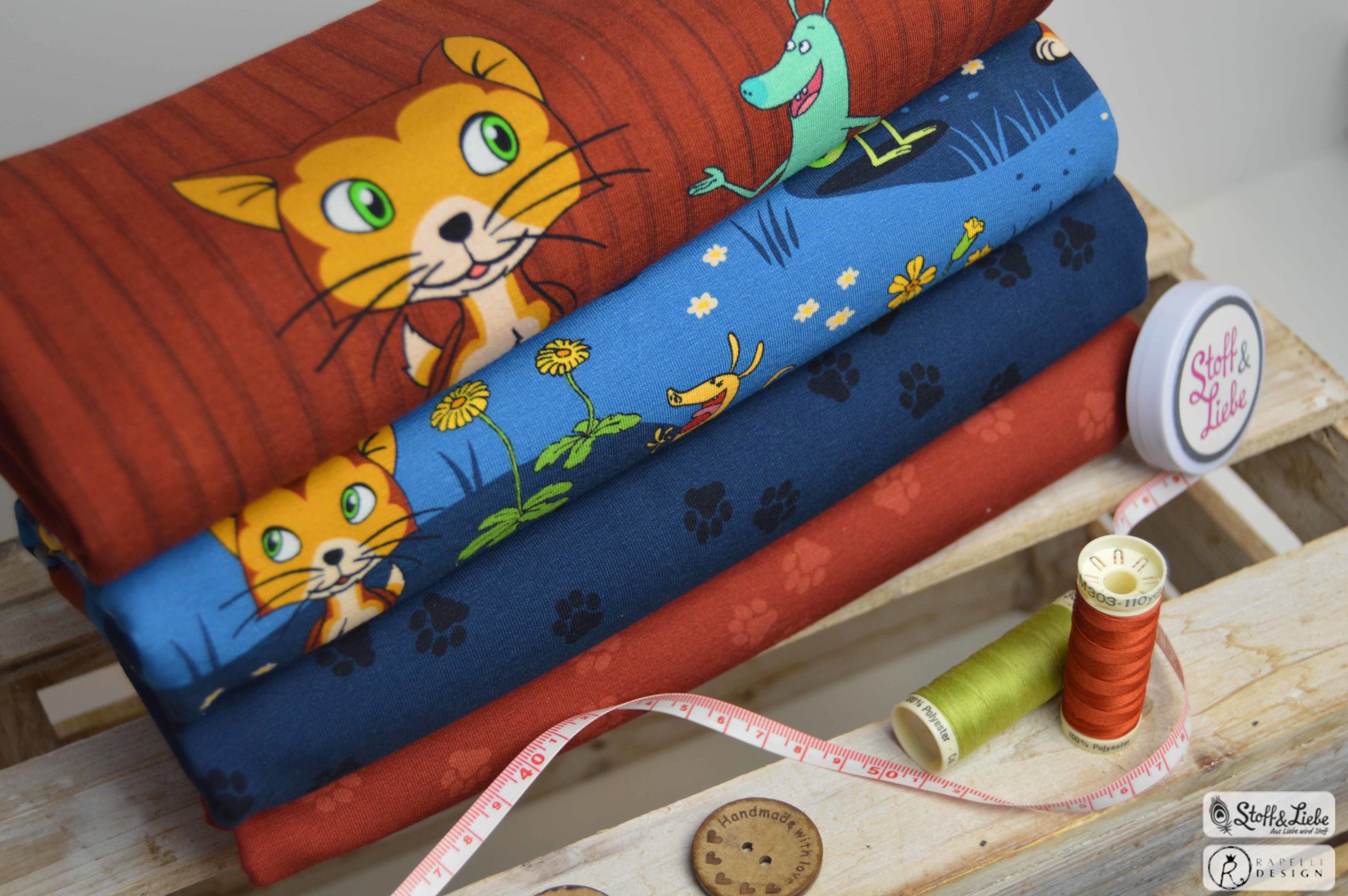 Als Kombistoffe dürfen die Katzentatzen natürlich nicht fehlen. Diese haben wir diesmal für Euch gleich in zwei Farben: Kastanie und Navy.