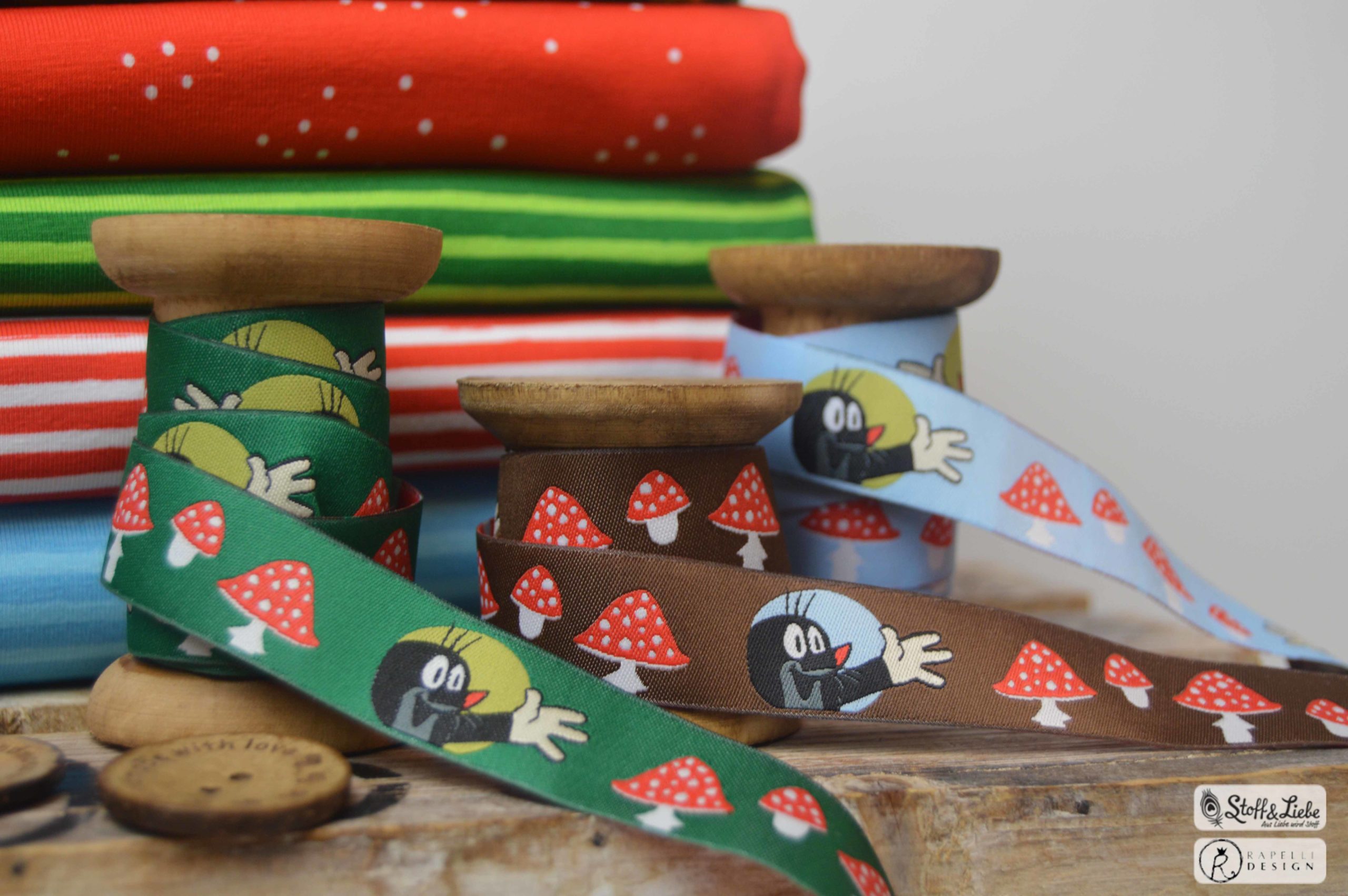 Was darf als Kombistoff nicht fehlen? Ganz genau! Unsere Maccaronies! Diesmal haben wir sie für Euch in drei Farben: Wiesengrün, Himmelblau und Fliegenpilzrot. Eine Farbe schöner als die andere, wir wissen gar nicht, welche unser Favorit ist. Könnt Ihr Euch entscheiden?
