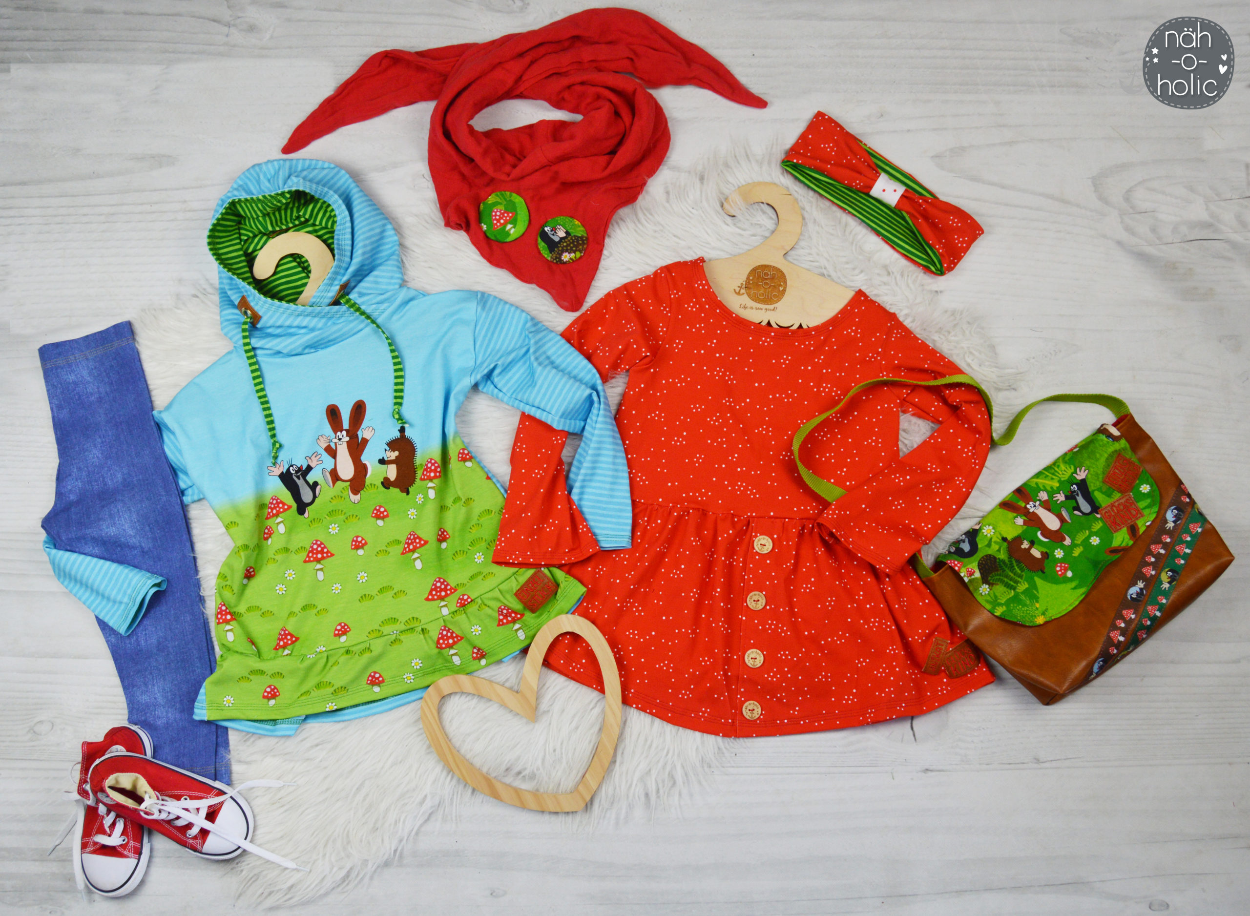 „Halli Galli“ ist eine Kollektion, die keine Wünsche offen lässt. Frische, fröhliche Farben und süsse Motive. So wie wir den Maulwurf und seine Freunde lieben! Alle Stoffe lassen sich ganz wunderbar miteinander kombinieren. Eurer Kreativität sind keine Grenzen gesetzt. Habt Ihr schon Ideen, wie und was Ihr kombinieren werden? Oder vernäht Ihr die Stoffe lieber einzeln?
