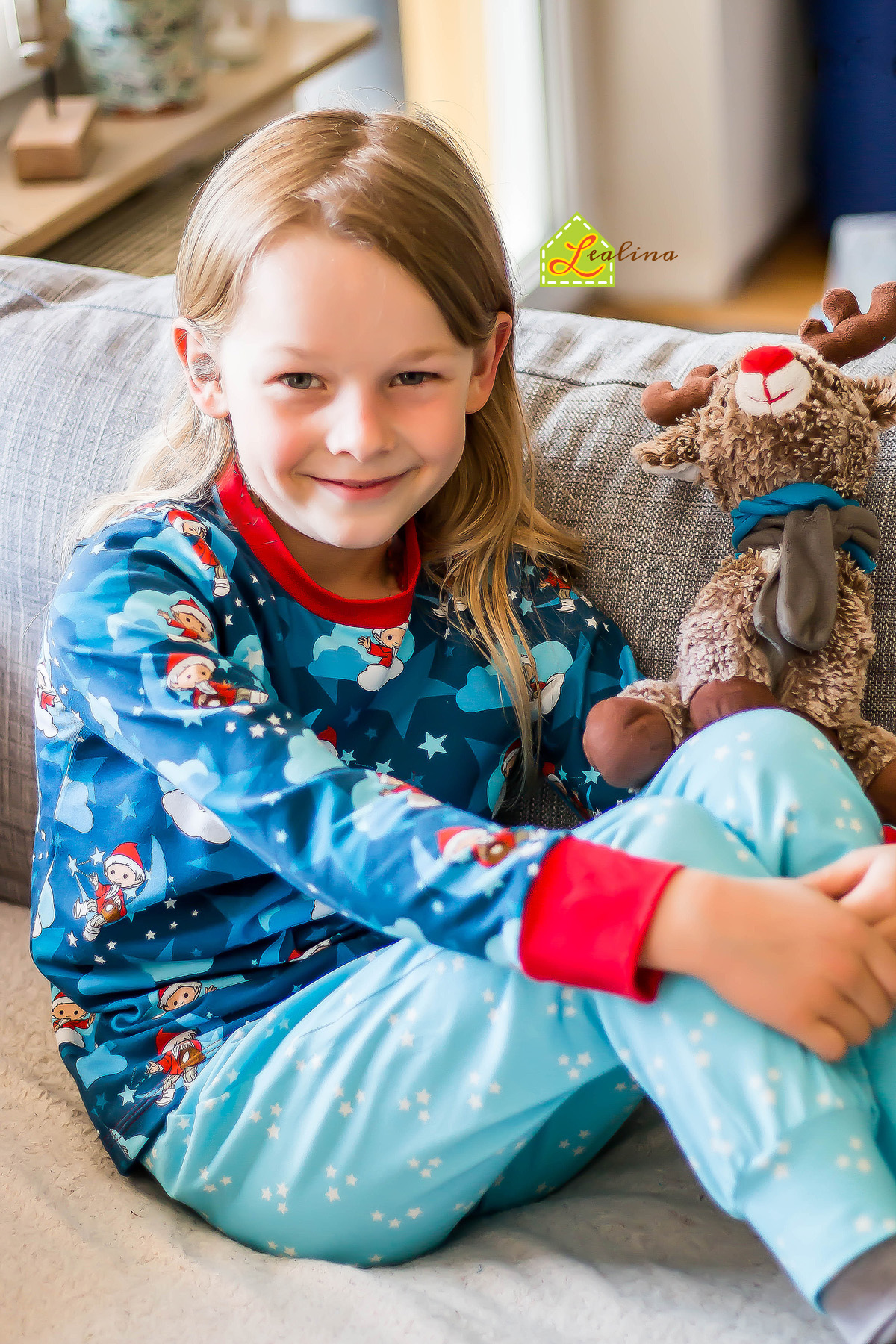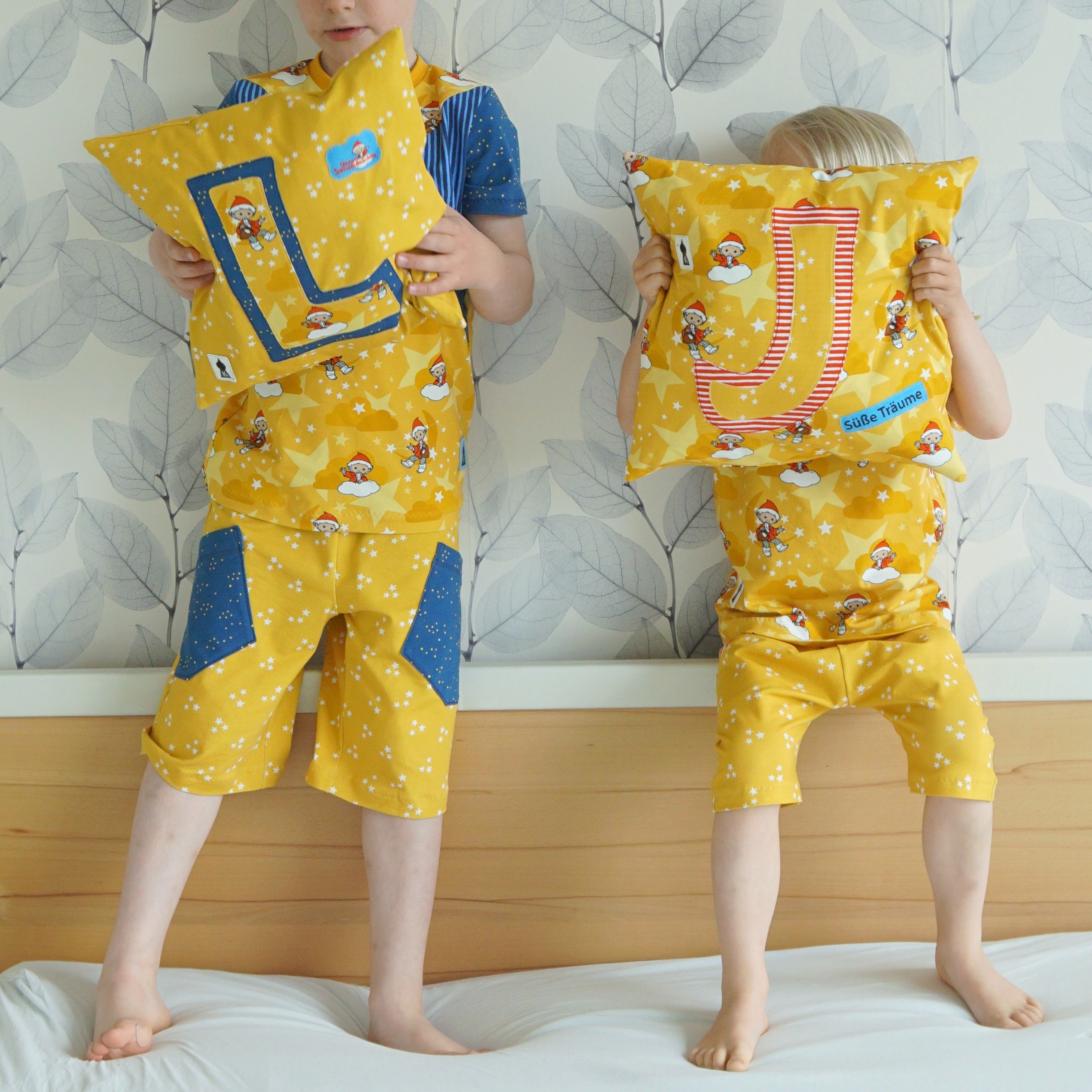 der Stoff ist wunderschön. Und die Farben sind mega und gefallen uns alle sehr gut. Da kann man sich nicht wirklich entscheiden. Aber da gelb die Lieblingsfarbe ist, gibt es bei uns neue Schlaf Outfits in gelb.