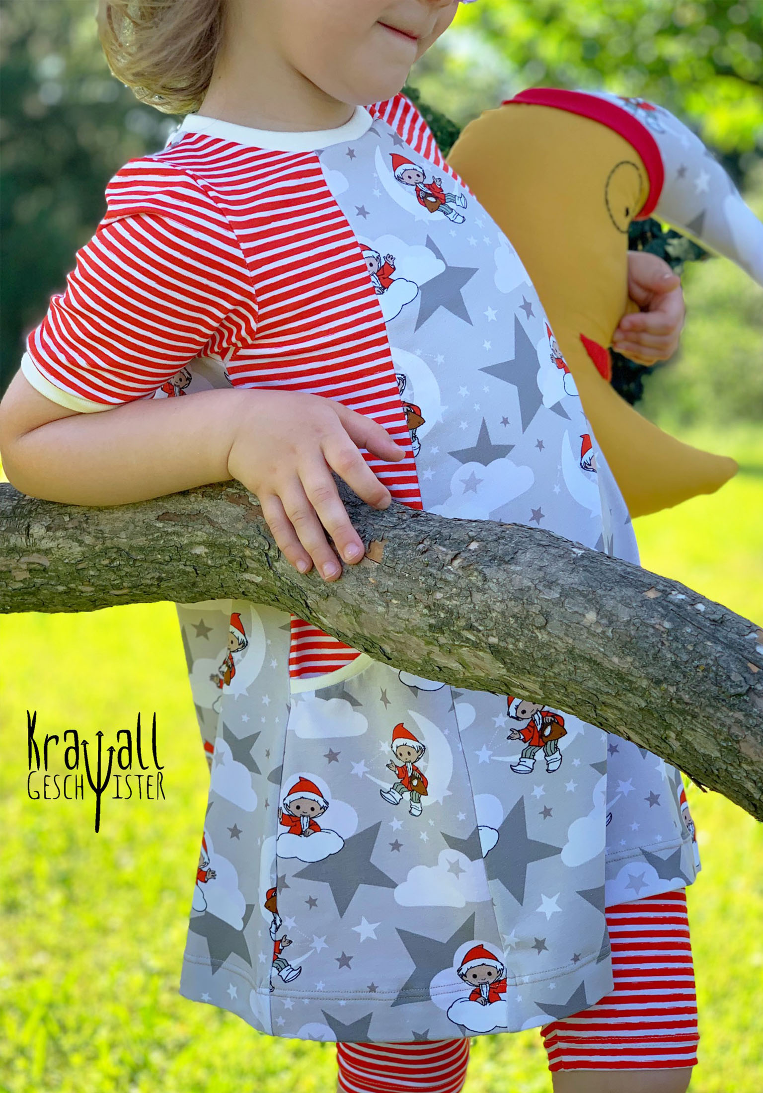 Wie wir oben schon erwähnt haben, lassen sich aus den Sandmännchen nicht nur supersüße Schlafoutfits nähen. Vor allem auch die Sterne und Maccaronies sind bestens für Alltagsoutfits geeignet. Stöbert doch mal durch unsere Designbeispiele. Unser Kreativteam hat wieder die Nadeln glühen lassen und jede Menge tolle Stücke für Euch vorbereitet.