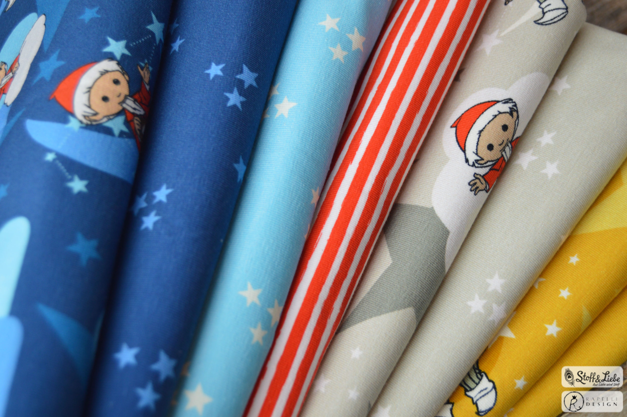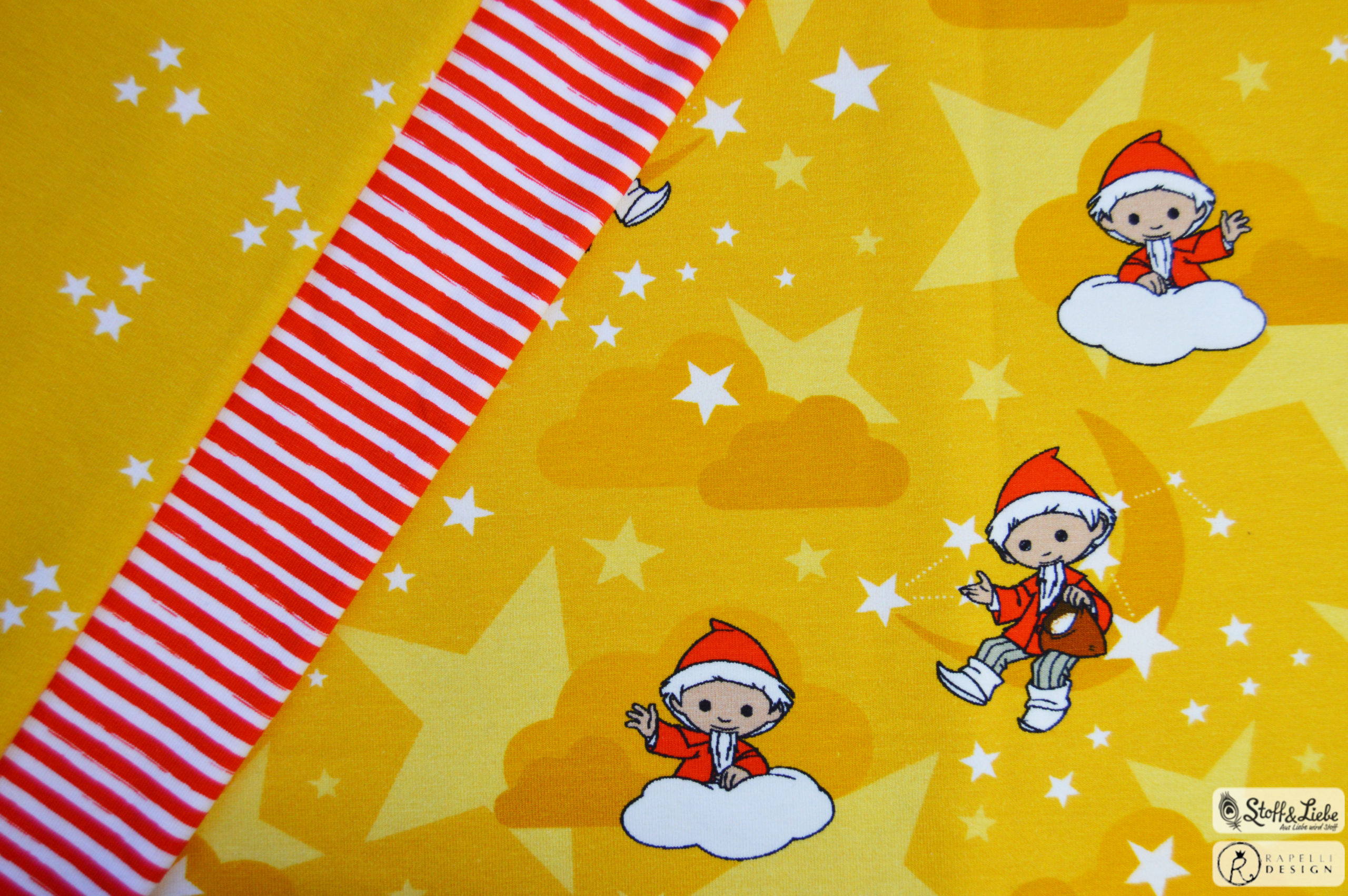 Es war unmöglich, uns für nur eine Farbstellung zu entscheiden und so haben wir heute gleich mehrere Farben für Euch. Die Kollektion „Unser Sandmännchen – Süße Träume“ aus der Feder von Rapelli Design hält drei Hauptstoffe und ganze fünf Kombistoffe für Euch bereit. Alle Stoffe erscheinen auf Jersey und haben eine Materialzusammensetzung von 95 % Baumwolle und 5 % Elasthan. Auch wenn es farblich passend zu jedem Hauptstoff Kombistoffe gibt, könnt Ihr dennoch alle Stoffe nach Herzenslust kombinieren. Ganz nach Geschmack könnt Ihr so Euer ganz persönliches Traumoutfit kreieren. Wir sind gespannt für welche Farbkombinationen Ihr Euch entscheidet. Nun wollen wir Euch aber nicht länger auf die Folter spannen und Euch unsere neuen Stoffe vorstellen.