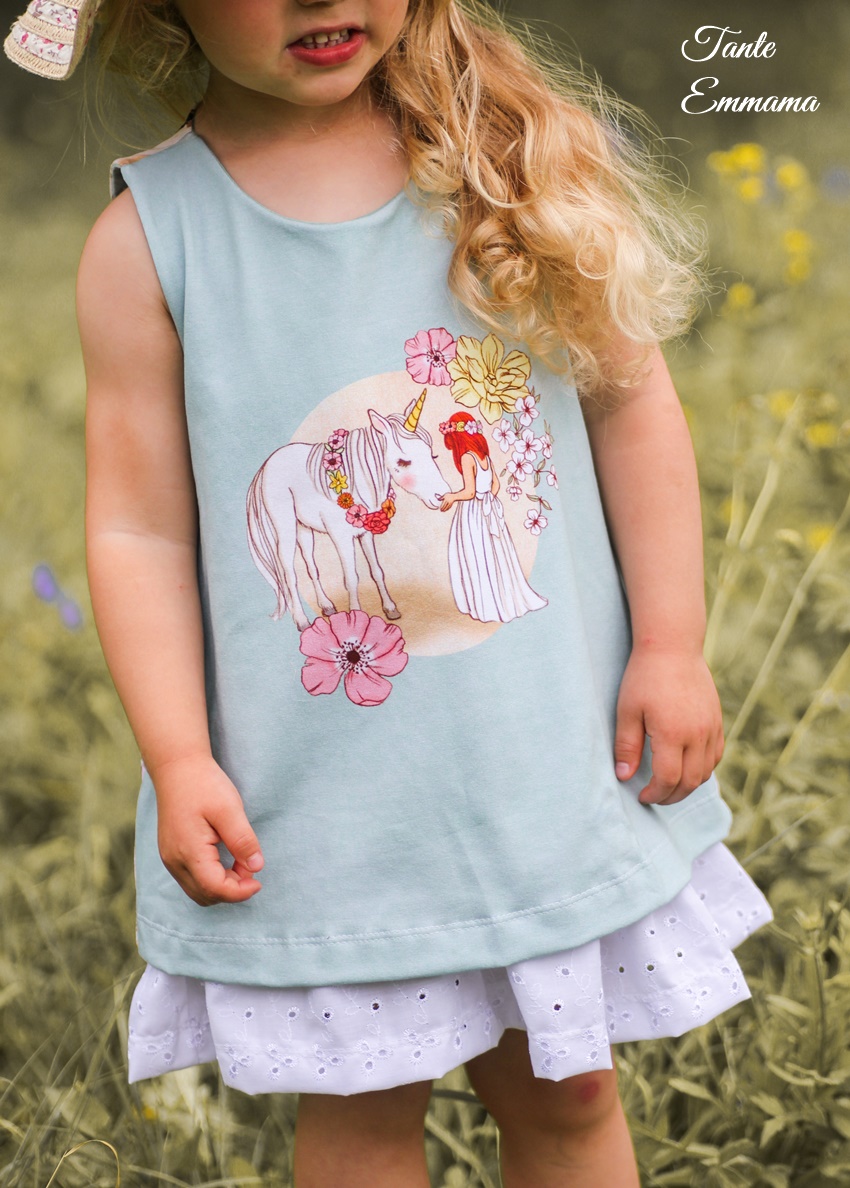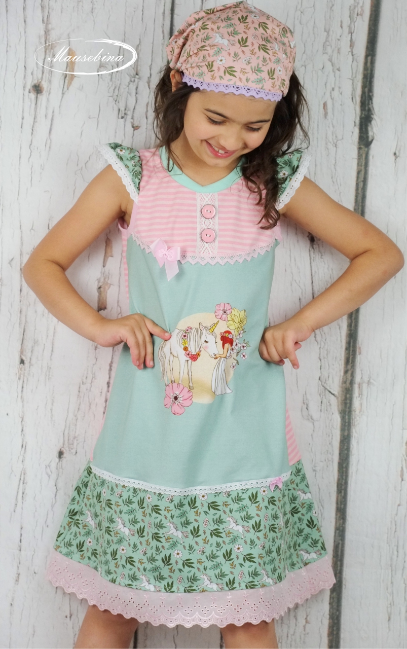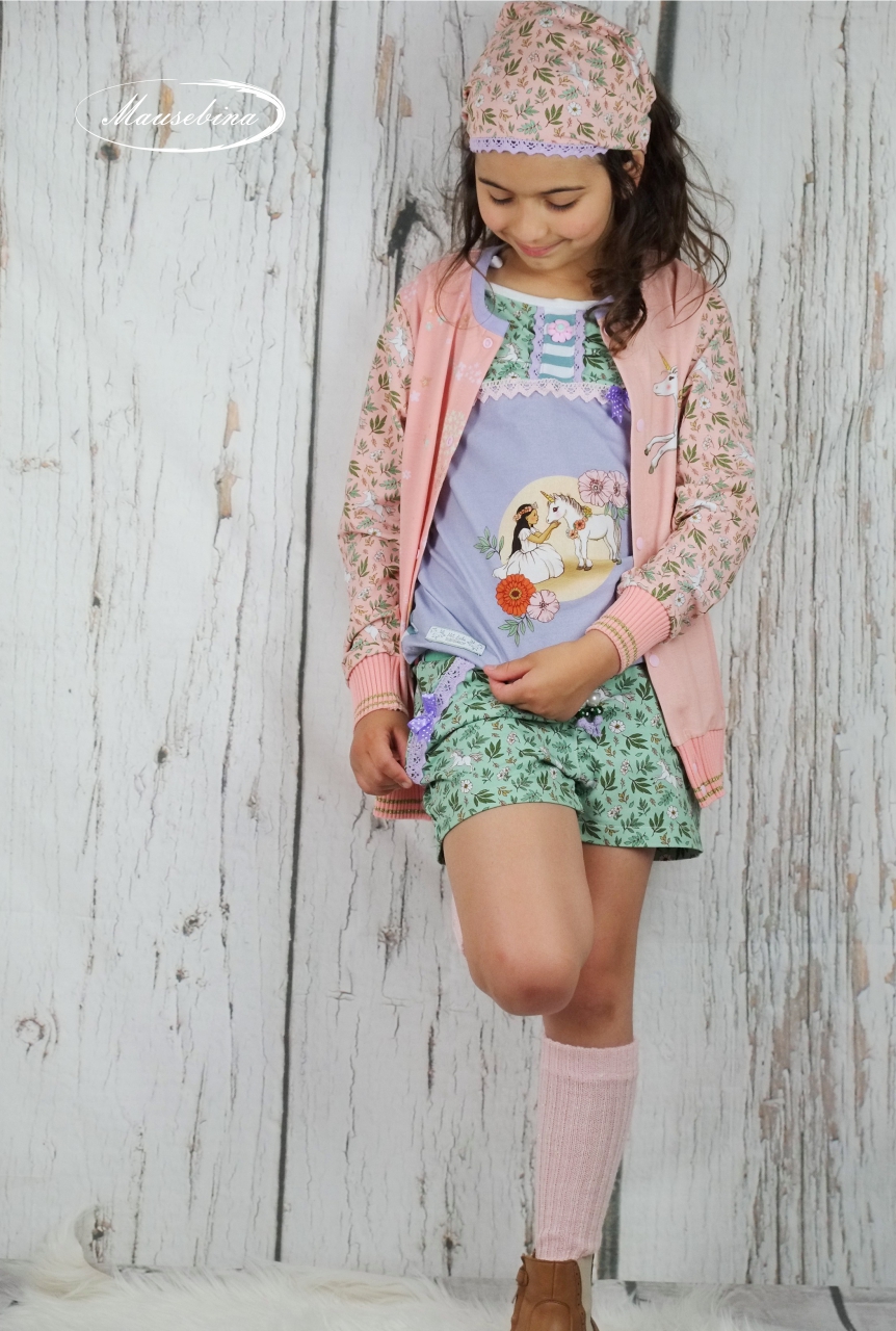 Ein Stoff für Groß und Klein. Damit lassen sich allerlei Outfits nähen und das nicht nur in Kombination mit dem Panel. Wild Unicorn ist solo vernäht einfach ein Traum. Kleider, Shirts, Röcke, Hoodies, Hosen und vieles mehr werden zum absoluten Hingucker.