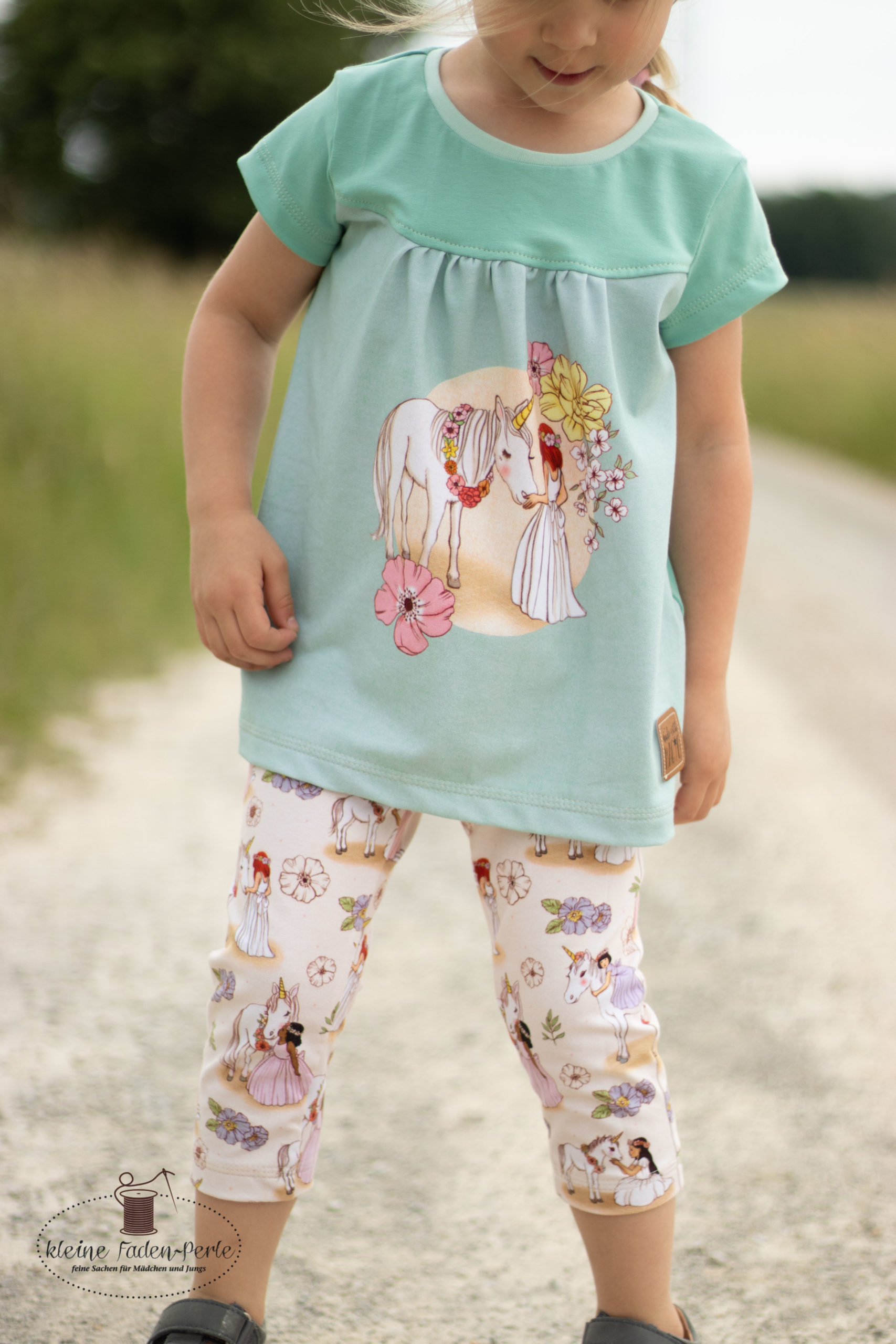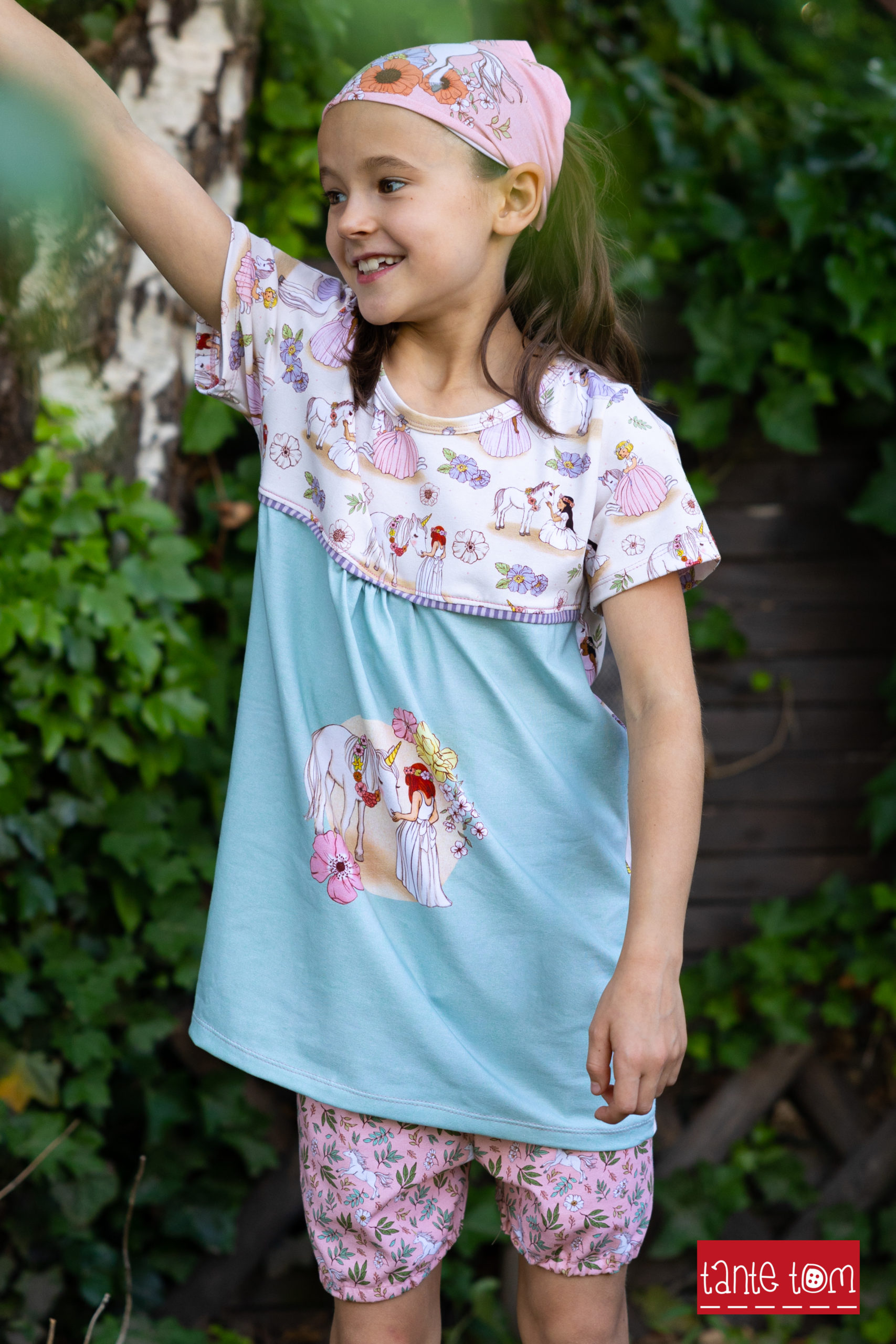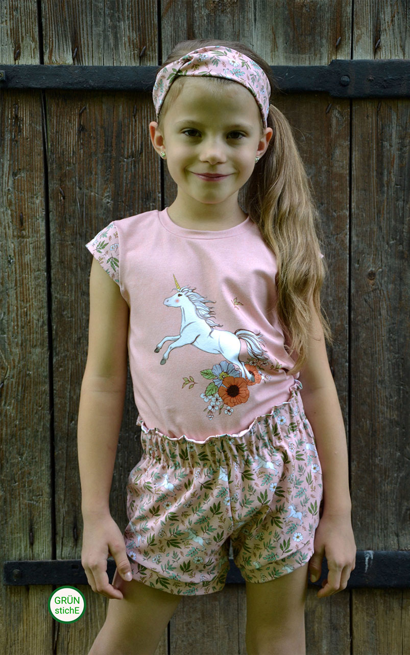 Ein Stoff für Groß und Klein. Damit lassen sich allerlei Outfits nähen und das nicht nur in Kombination mit dem Panel. Wild Unicorn ist solo vernäht einfach ein Traum. Kleider, Shirts, Röcke, Hoodies, Hosen und vieles mehr werden zum absoluten Hingucker.