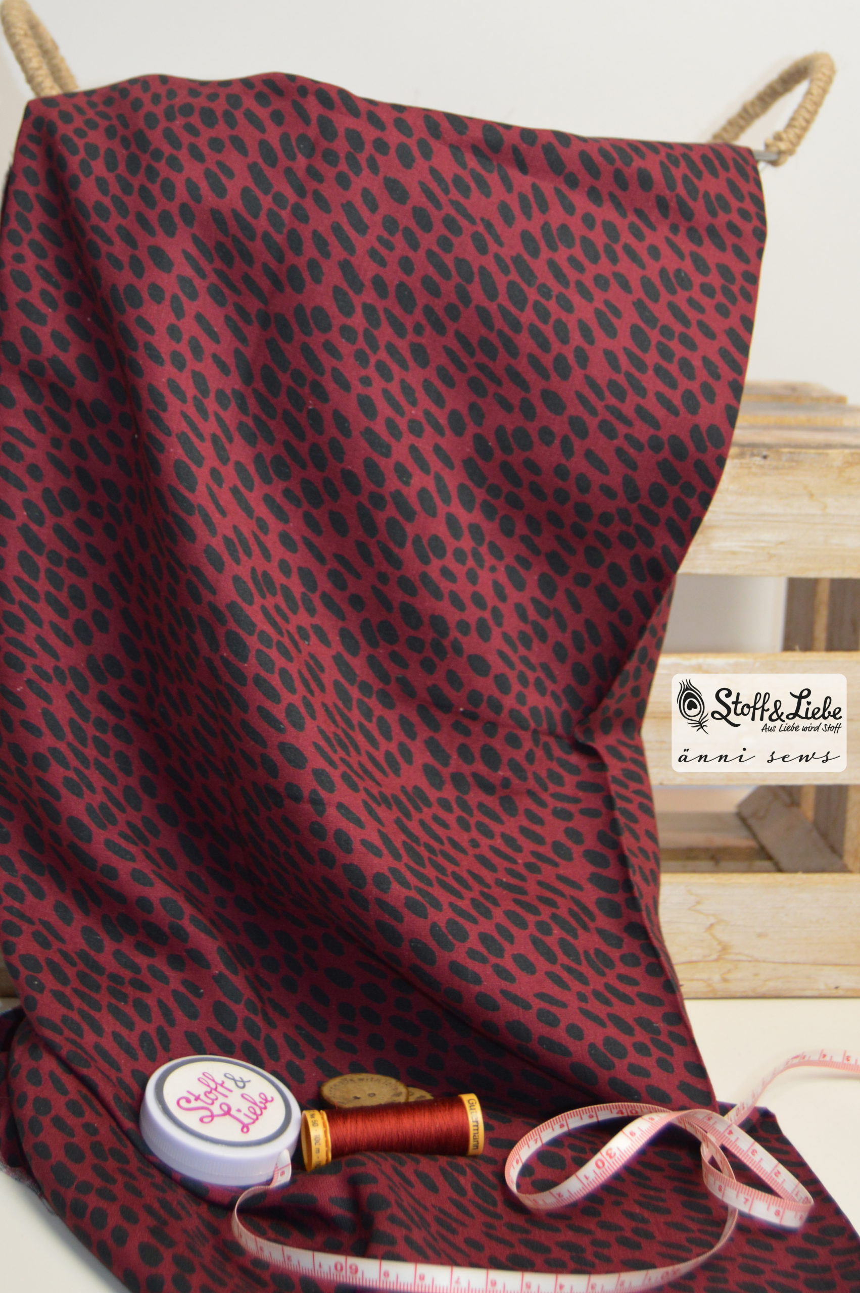Wir haben „Lea“ für Euch in zwei Farben. Einmal in diesem warmen Weinrot mit schwarzen „Flecken“.