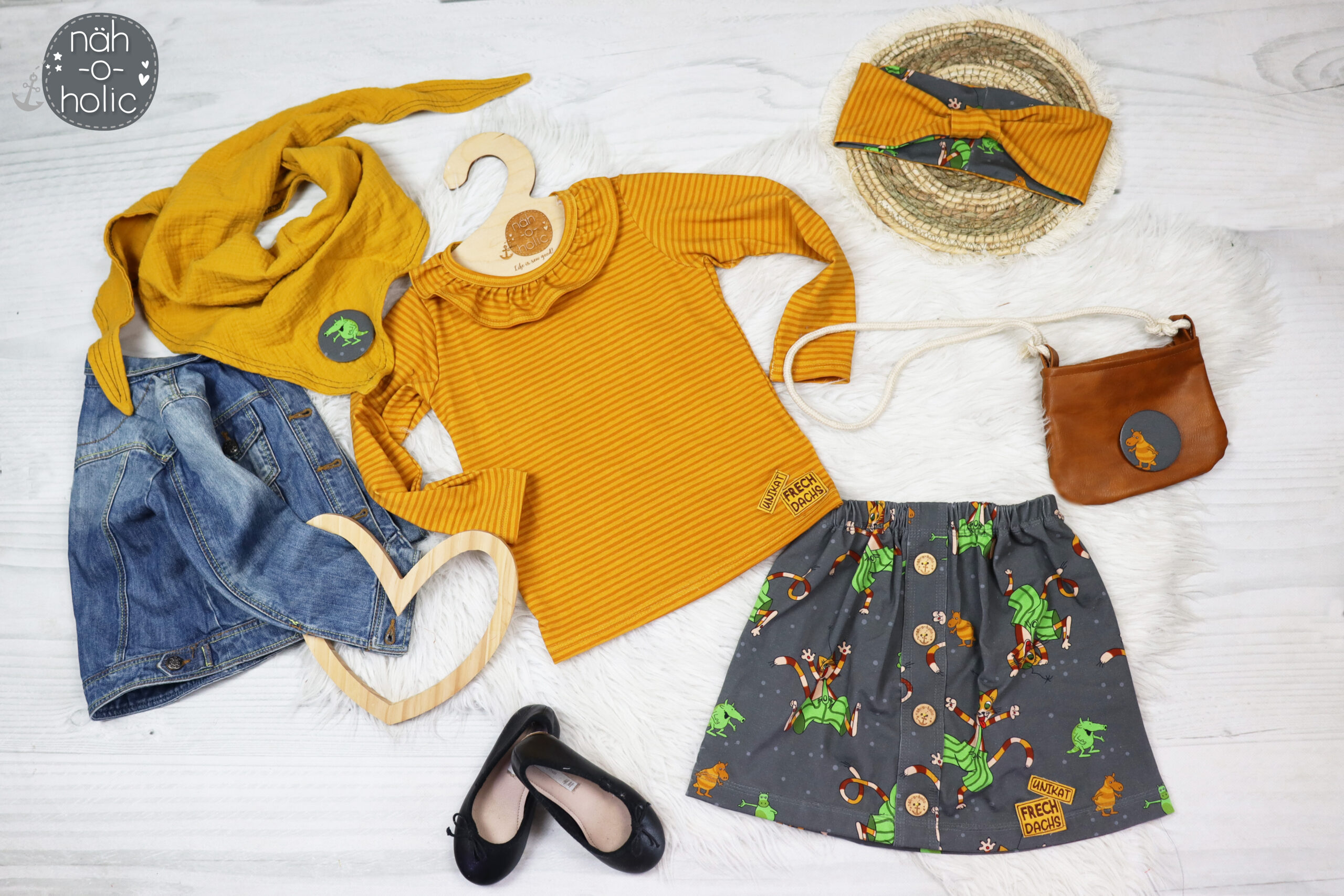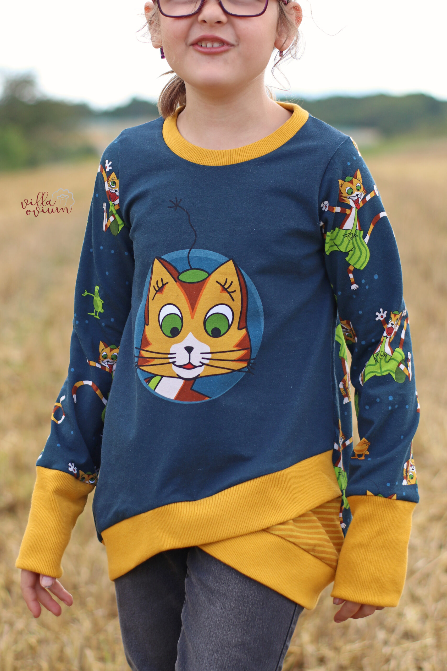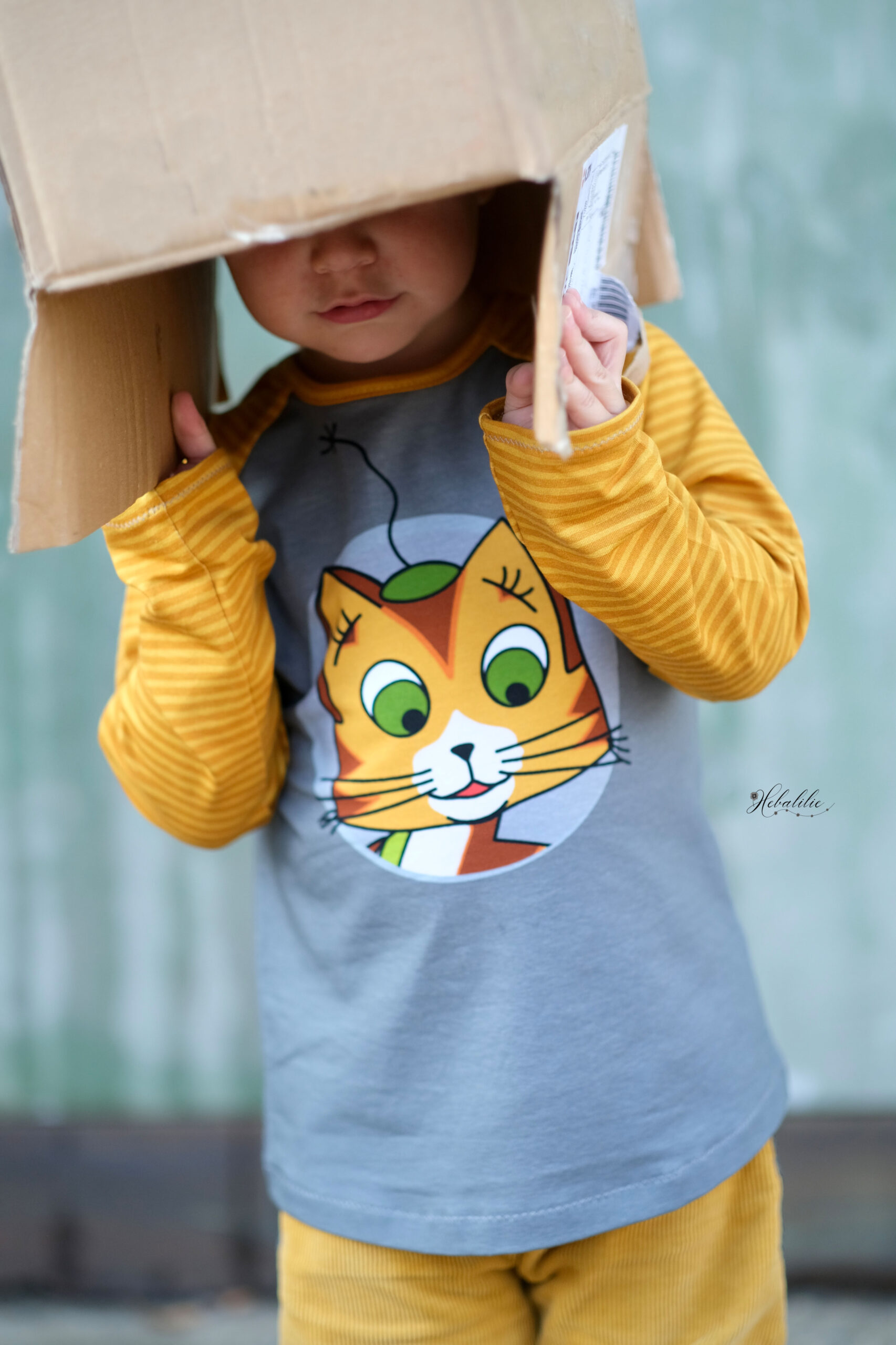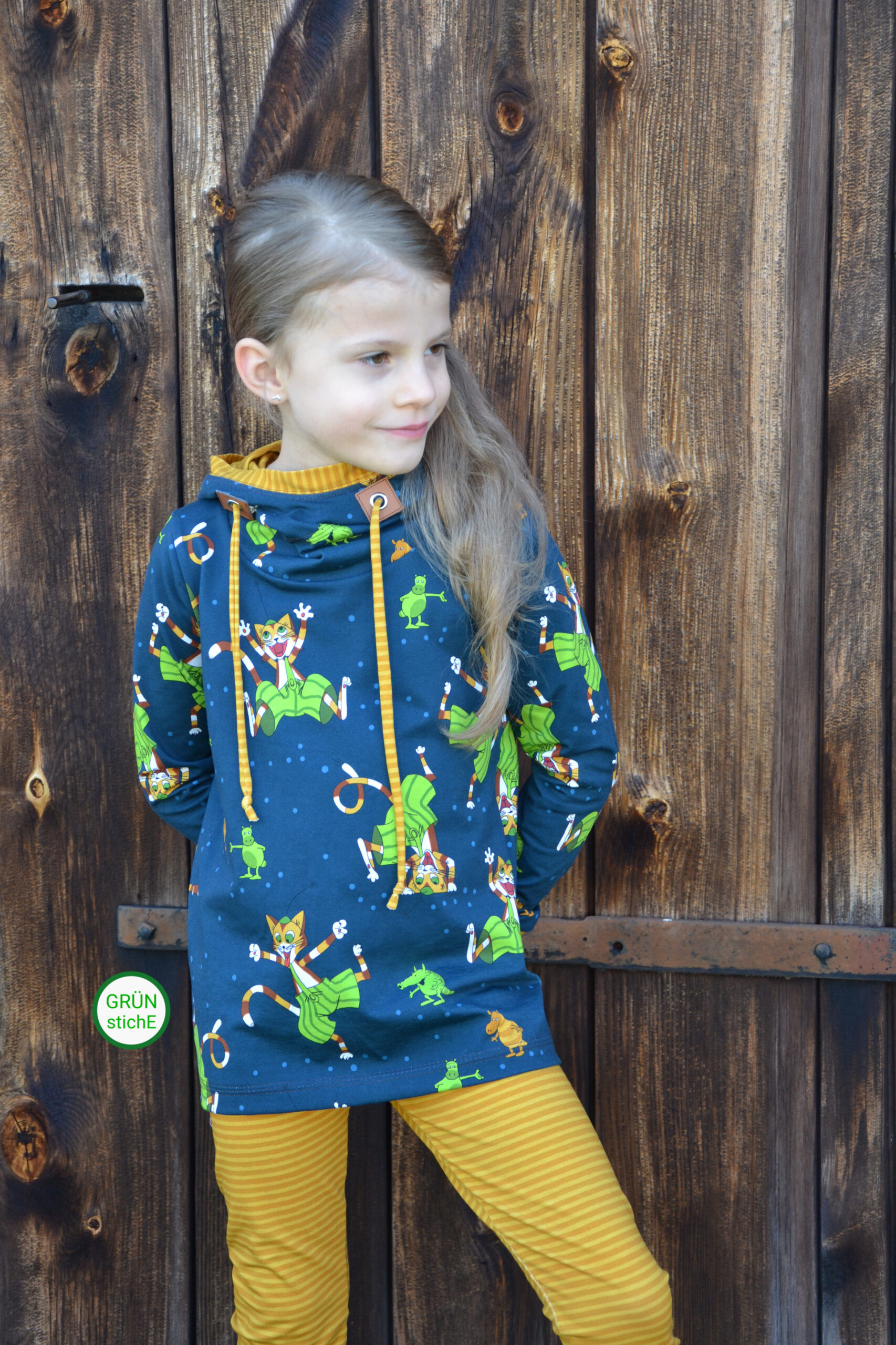 Diesmal haben wir als Kombistoff wieder unsere Maccaronies für Euch und zwar in der Farbe Honig, die perfekt zum kleinen, frechen Kater passt.