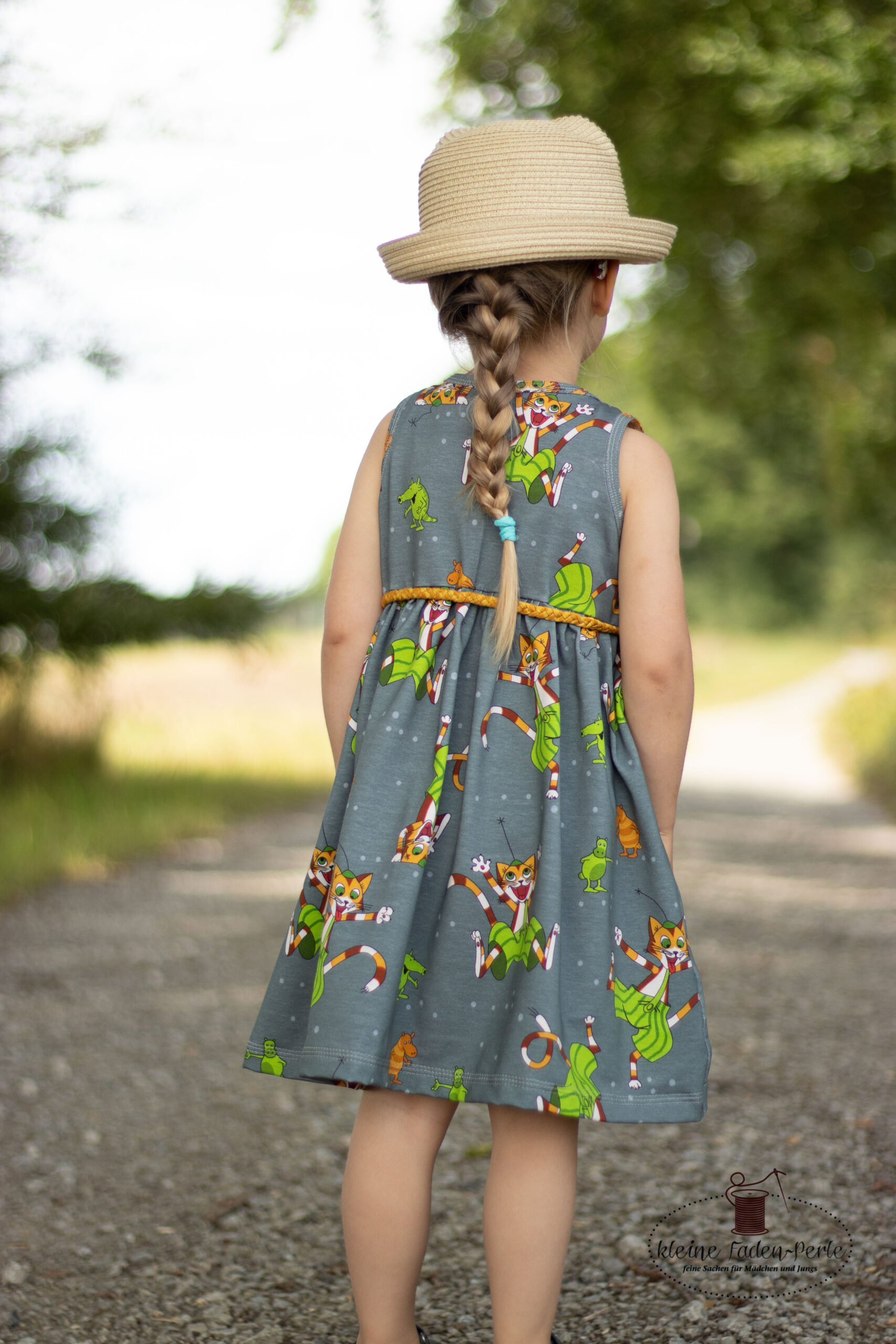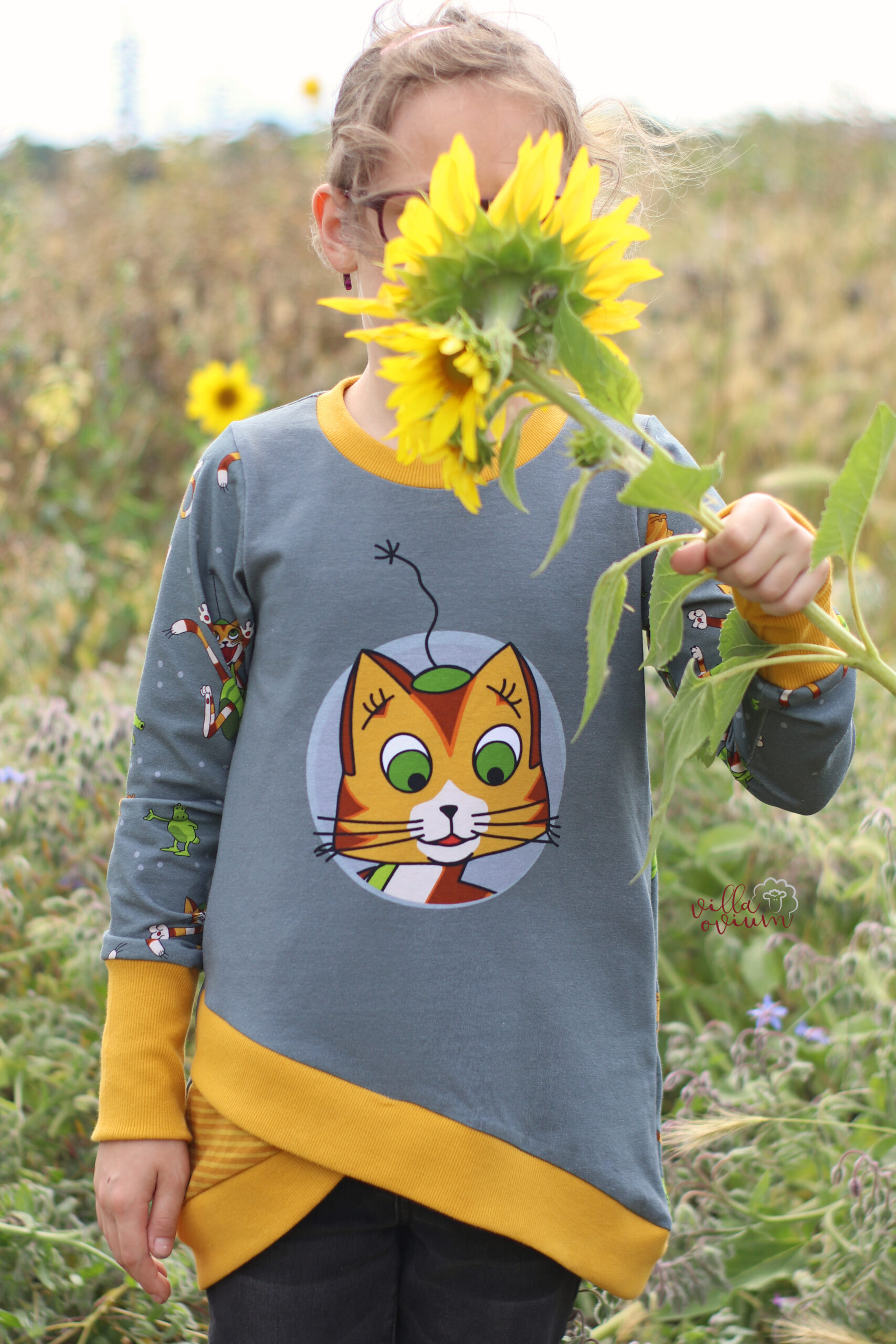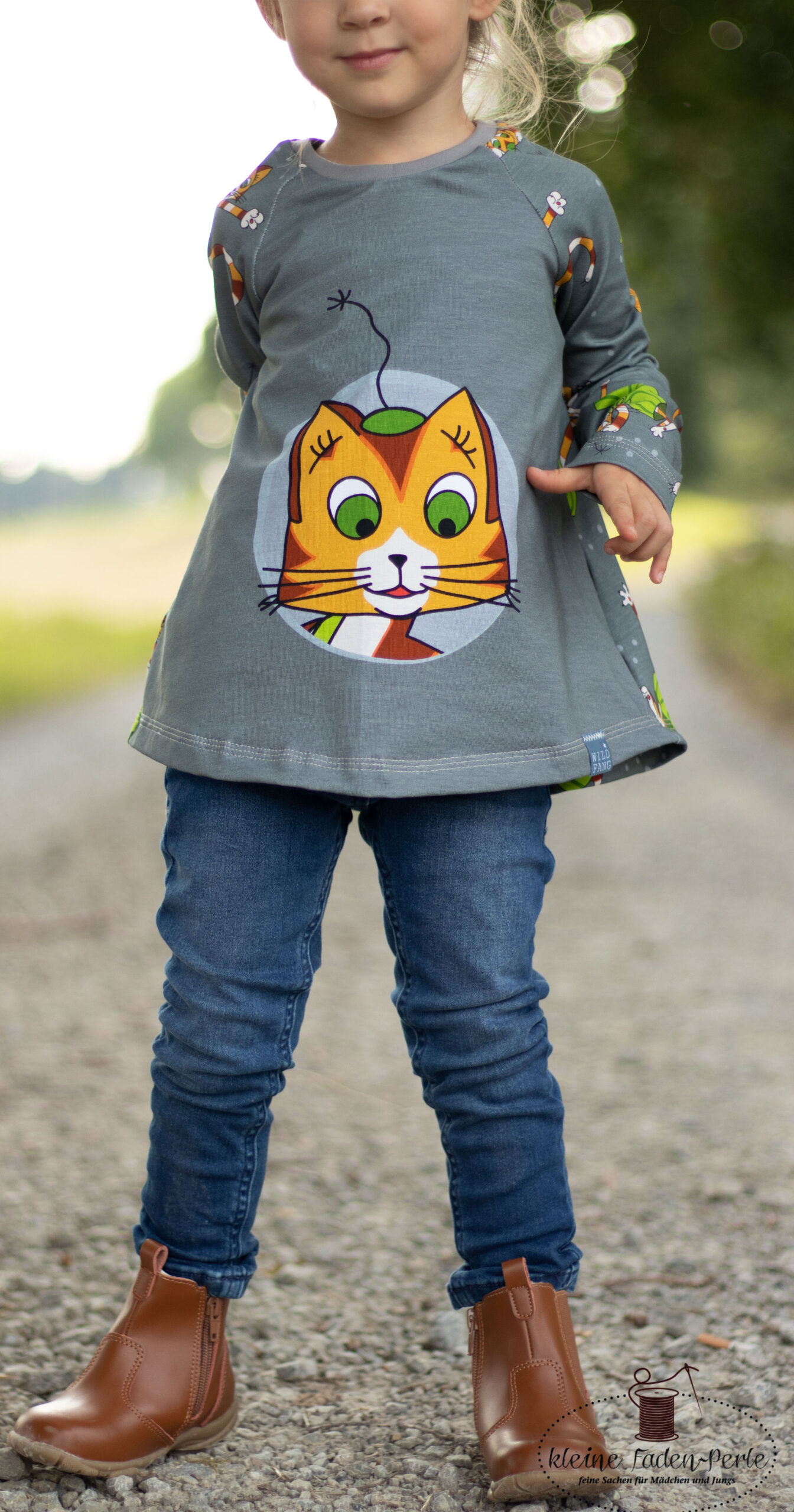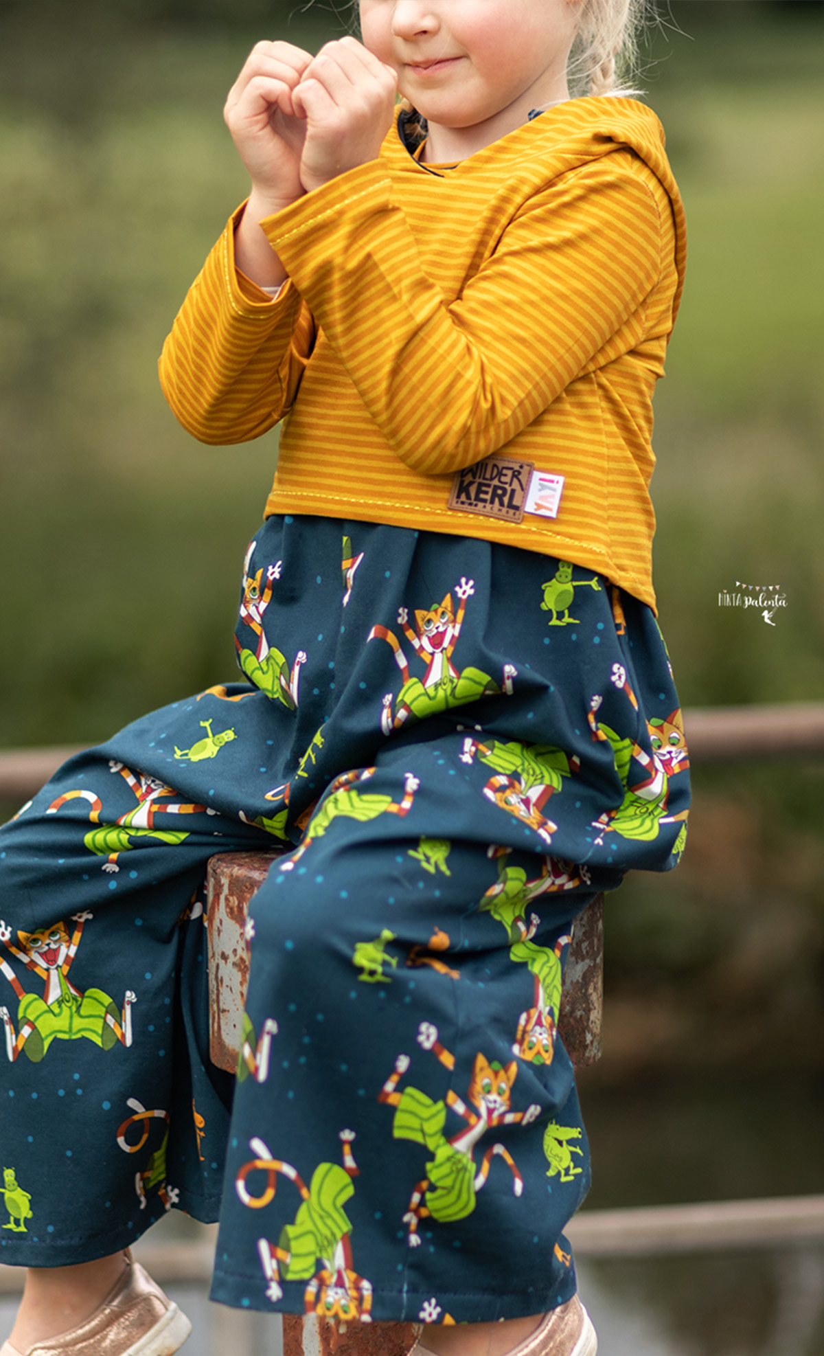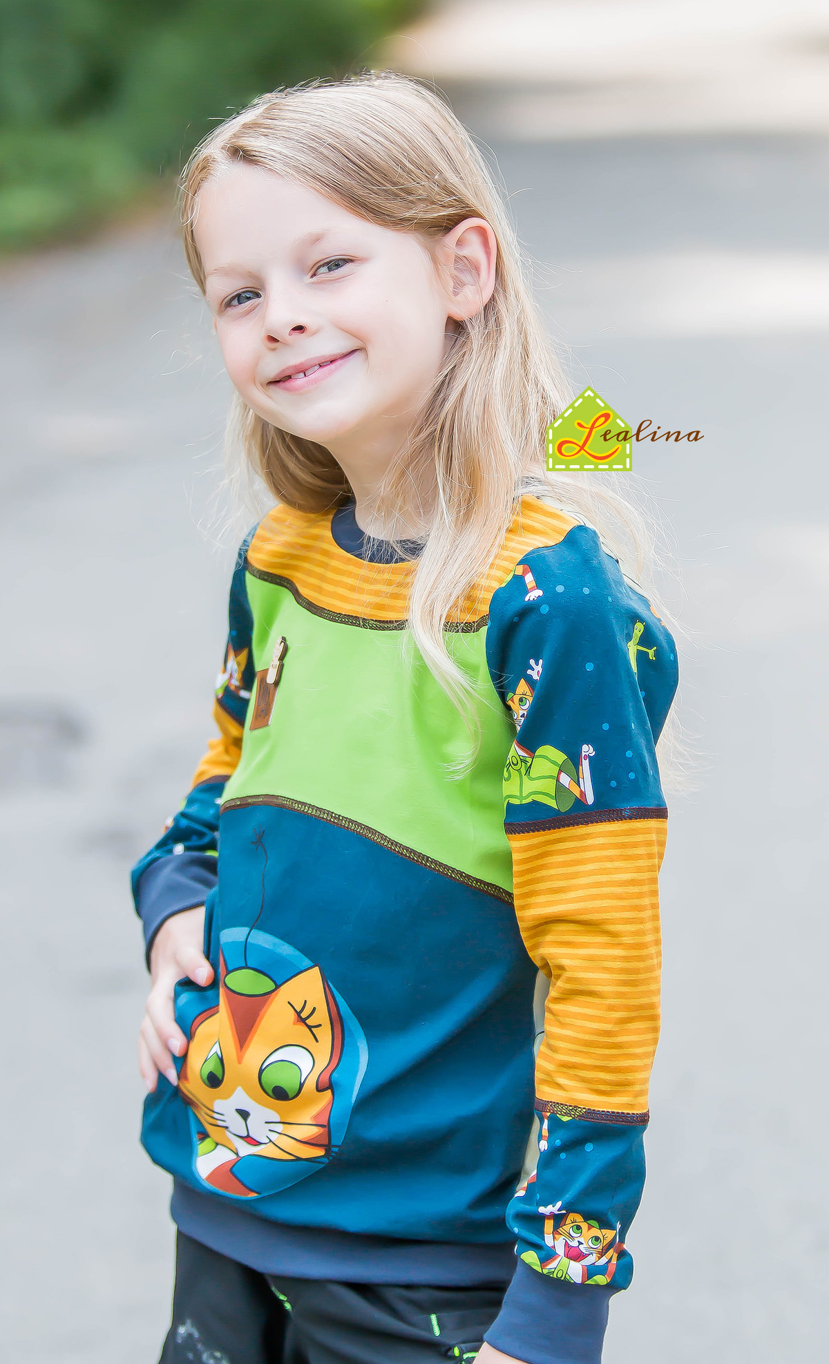 Diesmal haben wir als Kombistoff wieder unsere Maccaronies für Euch und zwar in der Farbe Honig, die perfekt zum kleinen, frechen Kater passt.
