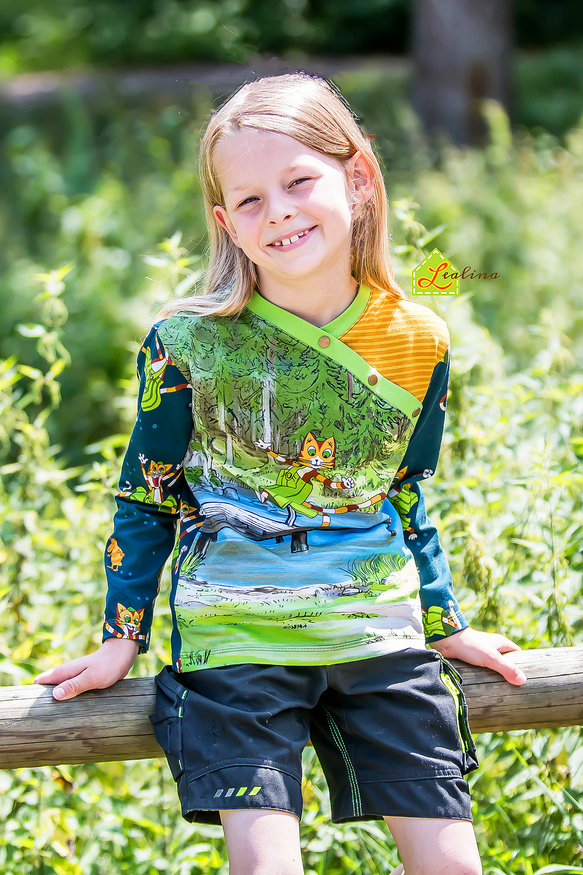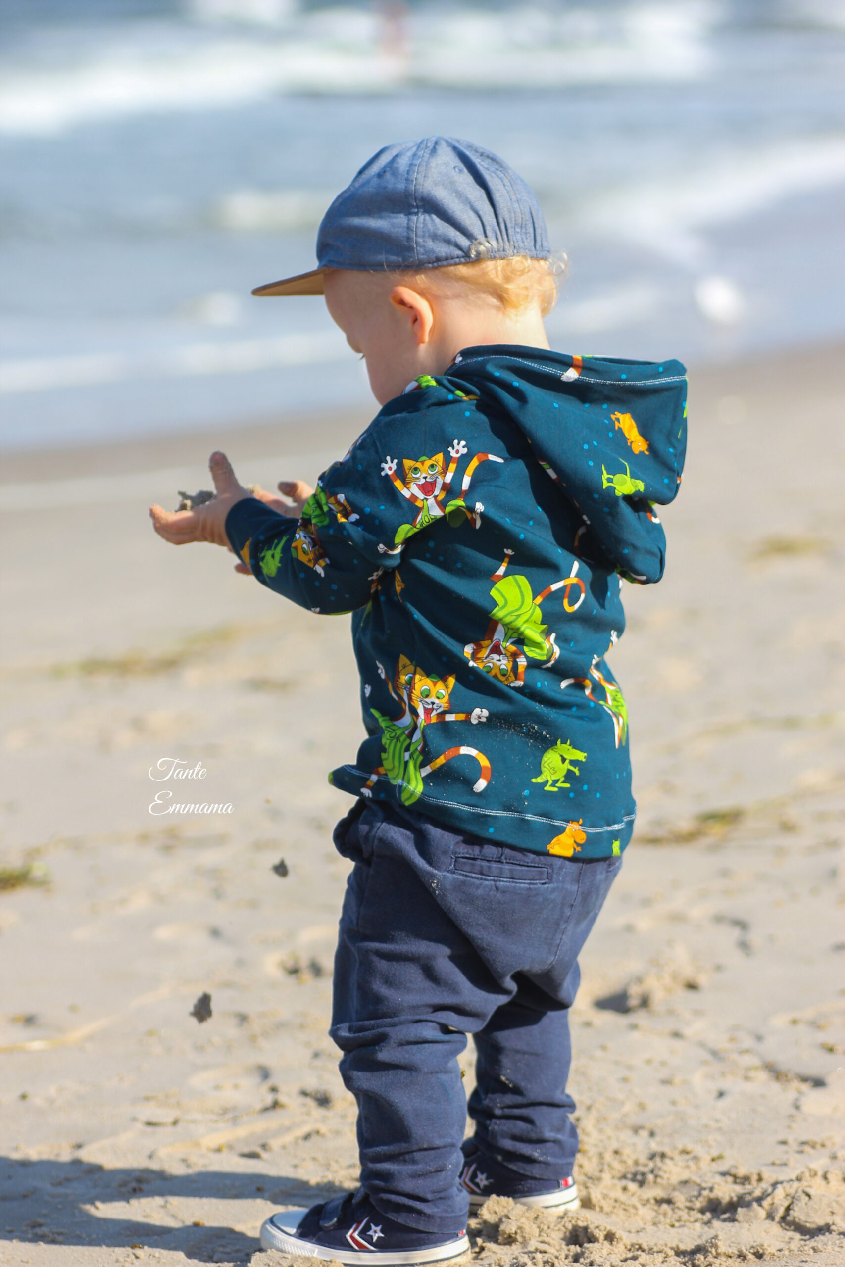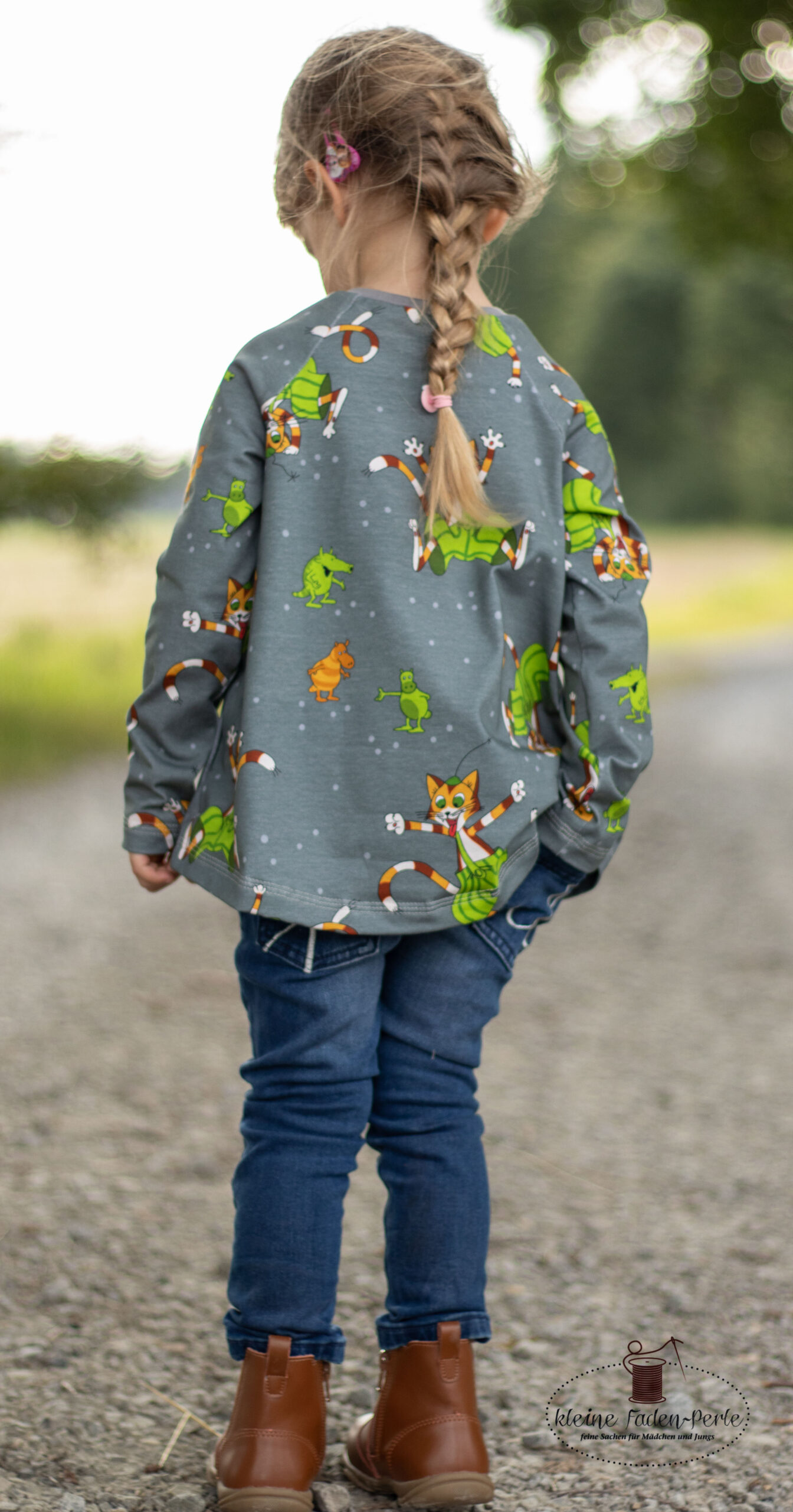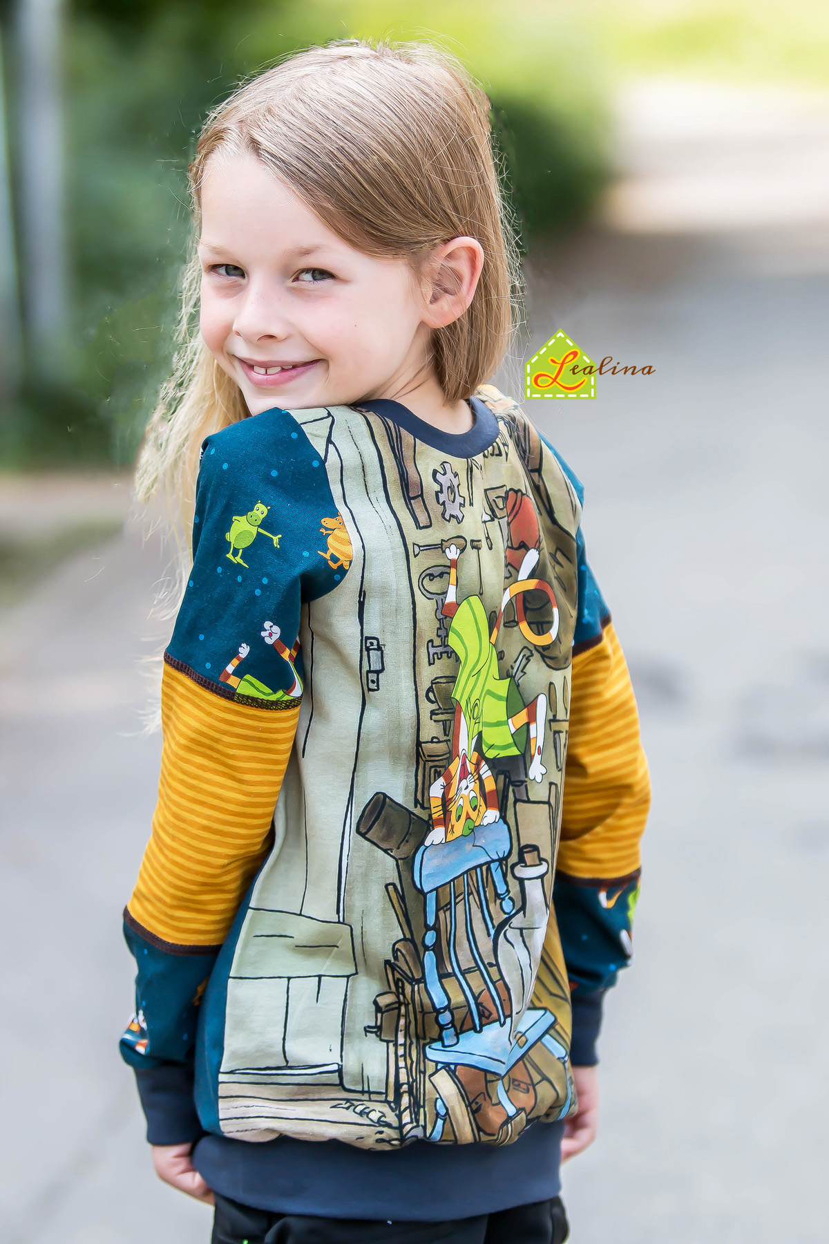 Diesmal haben wir als Kombistoff wieder unsere Maccaronies für Euch und zwar in der Farbe Honig, die perfekt zum kleinen, frechen Kater passt.