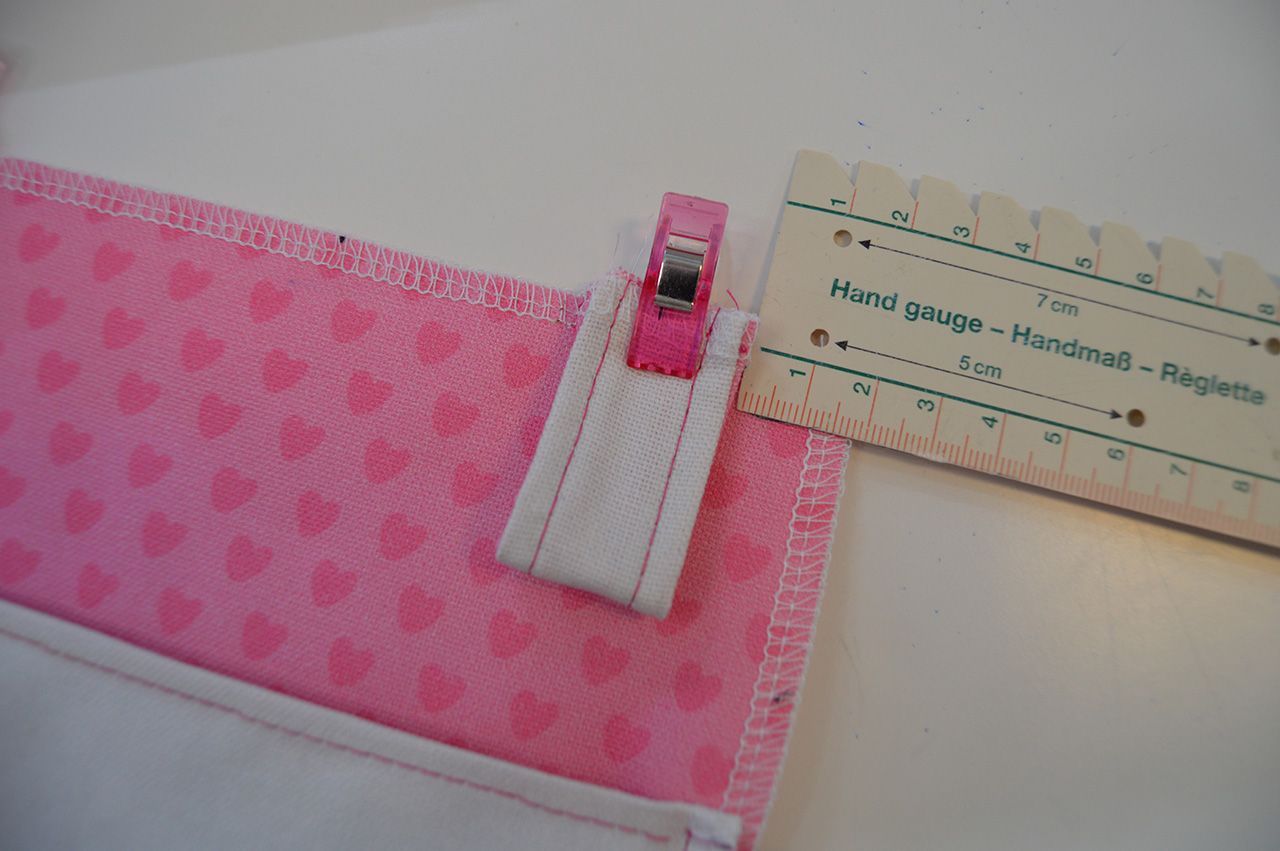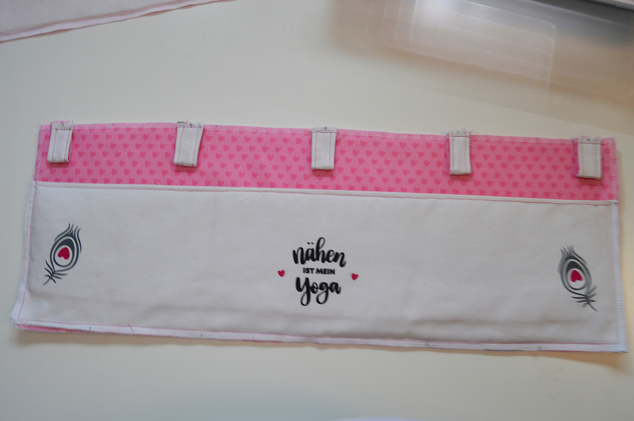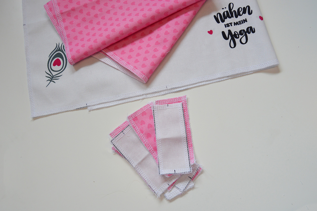 Anschließend näht Ihr bei allen fünf Aufhängungen jeweils die langen Seiten zusammen.