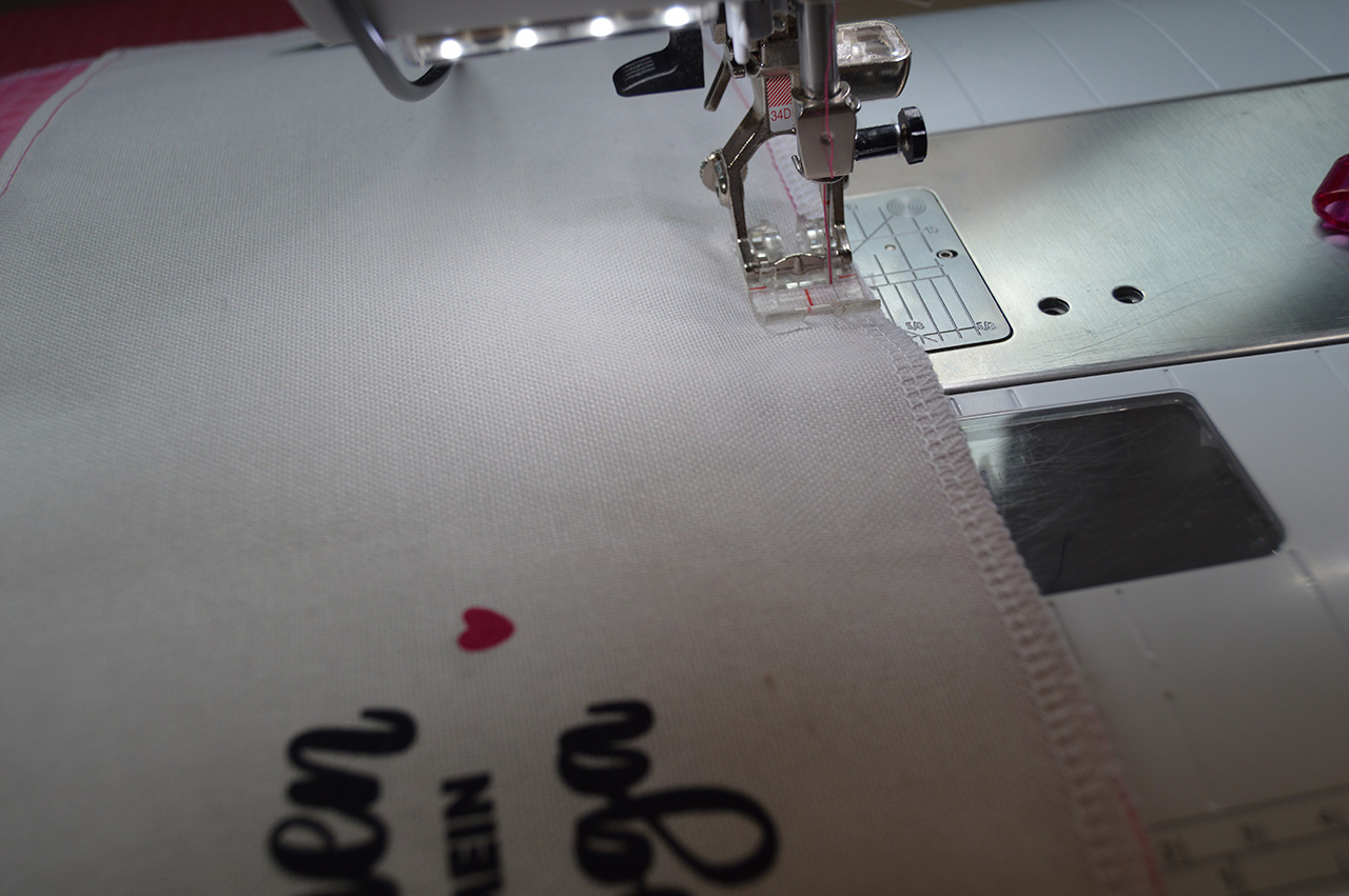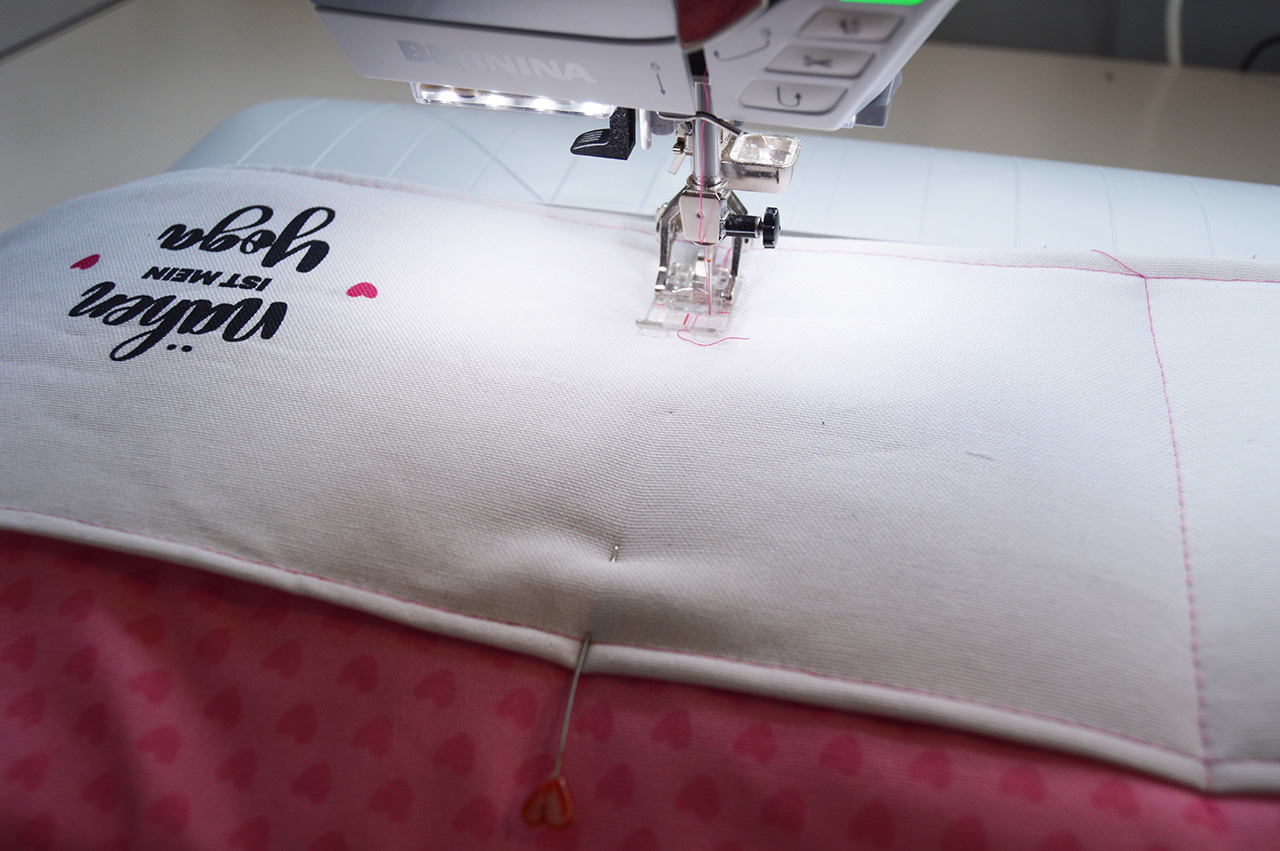 Anschließend steckt oder klammert Ihr Euch die Wendeöffnung zu und steppt Euer Utensilo einmal rundherum ab.