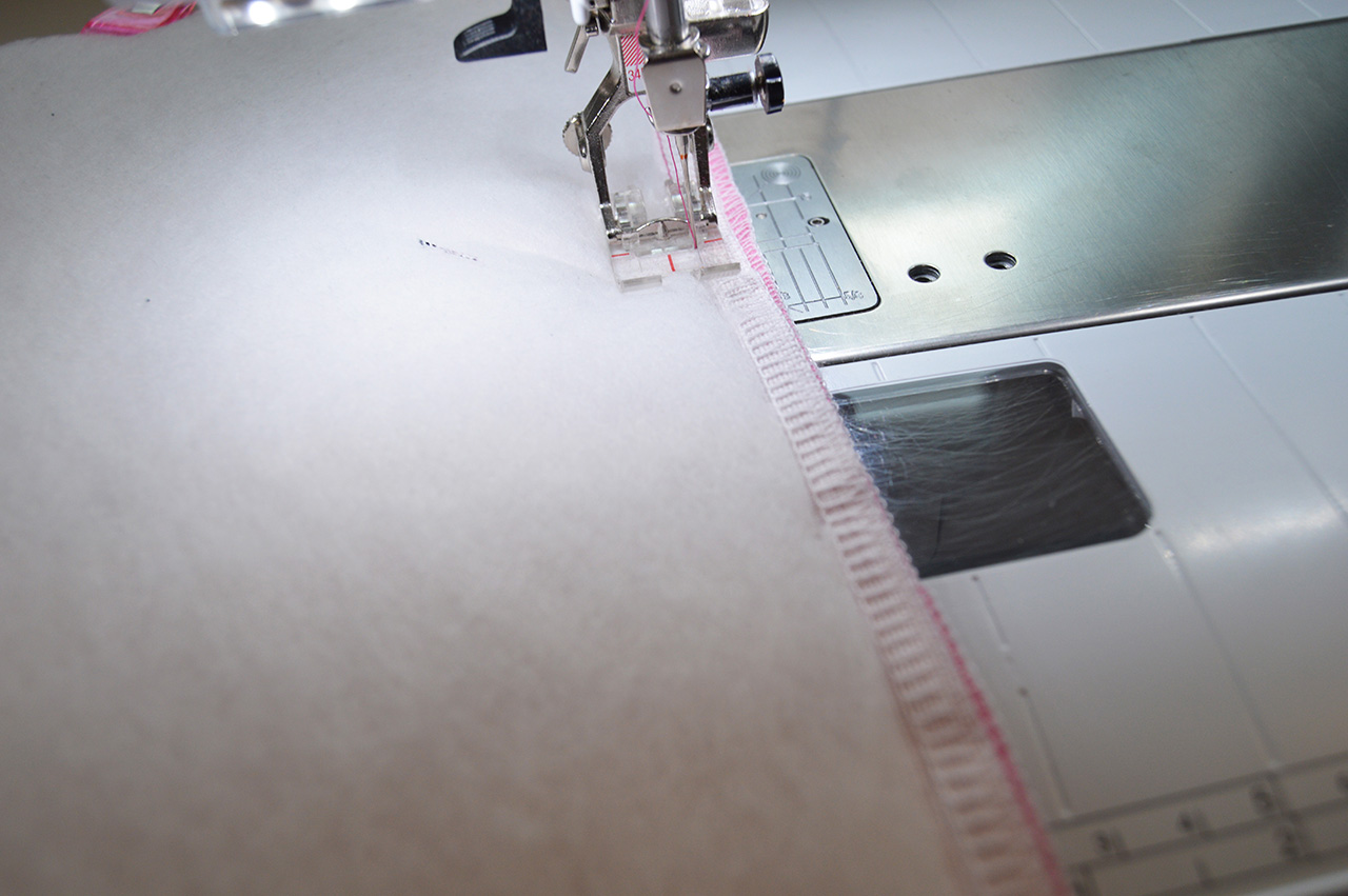 Als ersten Schritt versäubern wir alle unsere Teile, bis auf das Vlies, an allen Kanten.