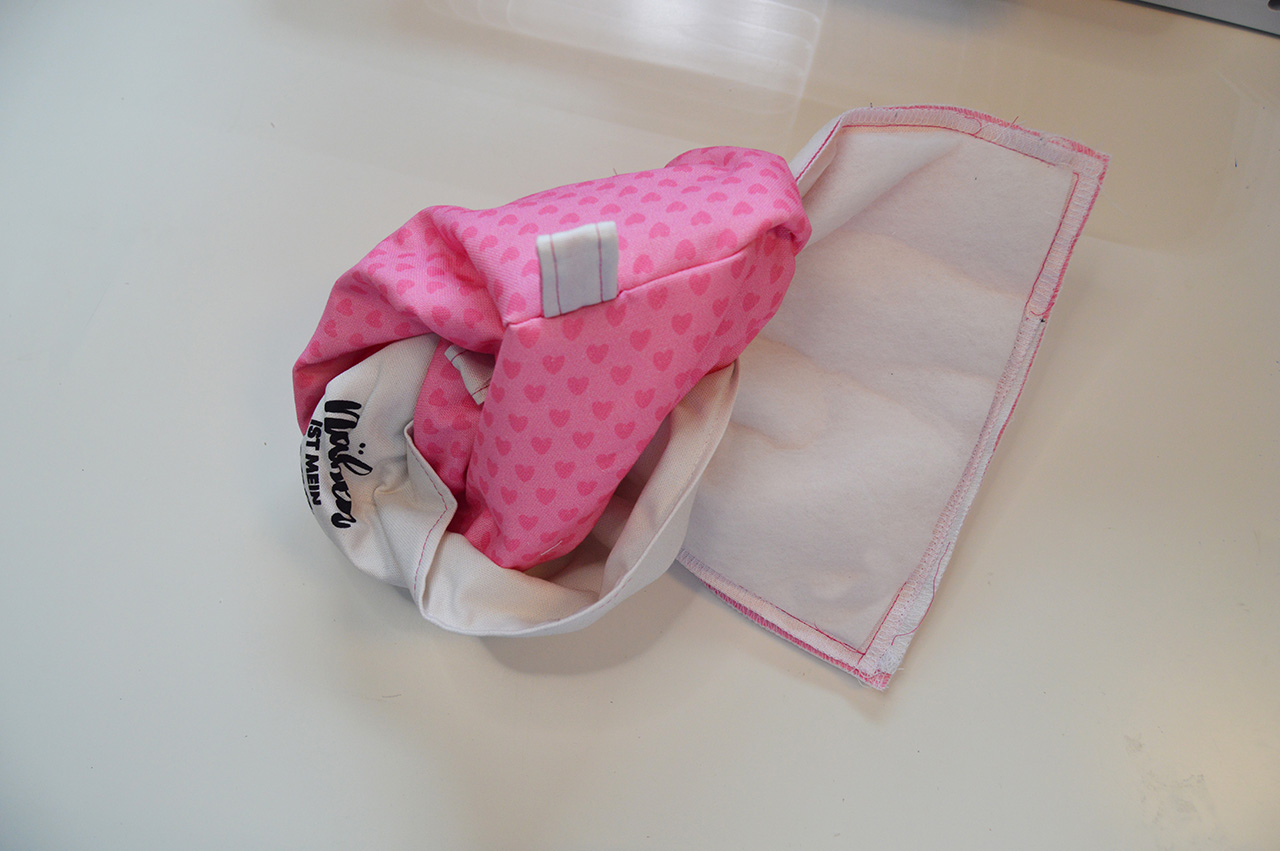 Wenn Ihr einmal rundherum genäht habt, wendet Eure Nähstück und formt es gut aus. Kontrolliert noch einmal, ob Ihr alle Lagen mitgefasst habt. Bügelt Euer Teil jetzt gut aus.