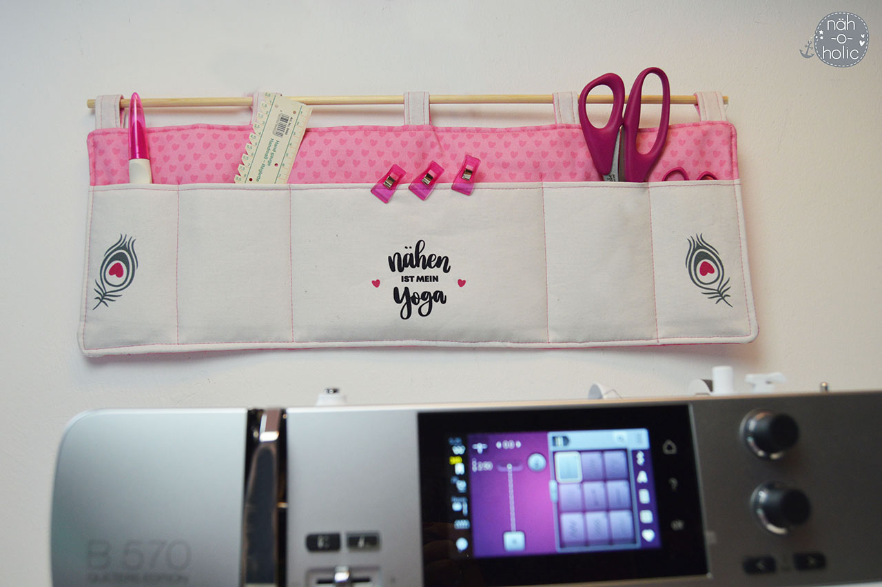 Nun könnt Ihr Euer Utensilo auf einen Holzstab oder der Aufhängung Eurer Wahl auffädeln und an Eurem Wunschort platzieren.