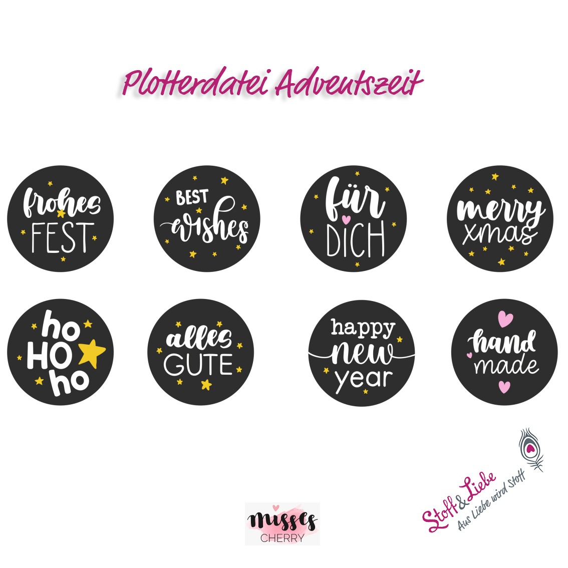 Außer den Zahlen haben wir auch noch passende Weihnachtssprüche für Euch. Sie lassen sich prima mit den Zahlen kombinieren oder eben einzeln vielfältig verwenden. Ob auf Stoff, Papier oder Glas, als Highlight oder kleinen Zusatz eines Projektes, diese Dateien verleihen Euren Werken den letzten Schliff.