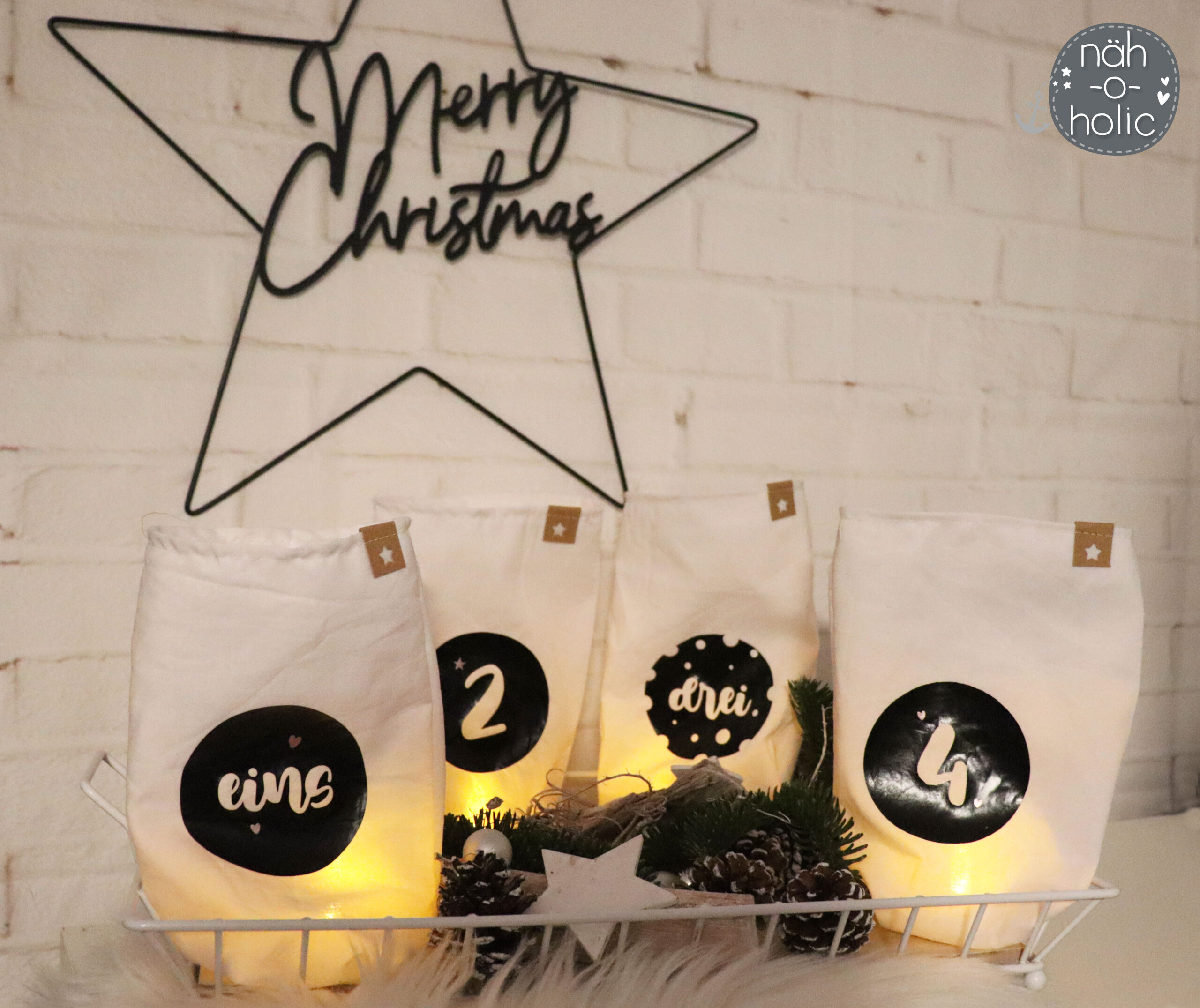 Und weil Weihnachten ja bekanntlich die Zeit des Schenkens ist, schenken wir Euch heute auch eine Kleinigkeit. Und zwar aus der Adventkalenderzahlen Datei, die ersten vier Zahlen. Damit könnt Ihr zum Beispiel Lichterbeutel für jeden Adventssonntag machen. Das Schnittmuster für die Lichterbeutel findet Ihr hier: Klick!