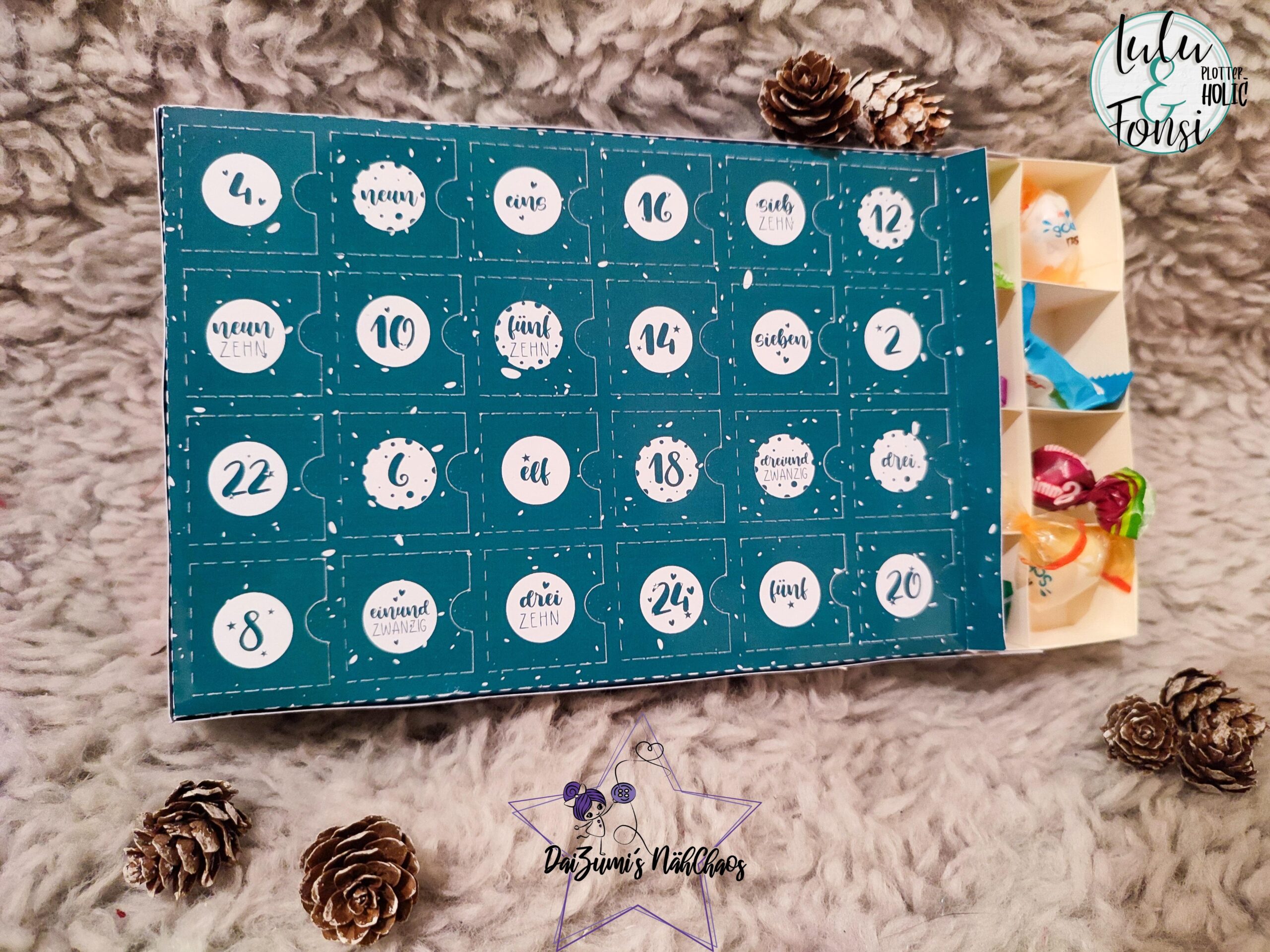 Mit der Datei könnt Ihr nicht nur prima Adventskalender pimpen, sondern auch viele andere Dinge wie z.B. Geschenkebeutel, Kränze, Serviettenringe und vieles mehr. Unser Kreativteam hat die Plotter glühen lassen und jede Menge Inspirationen für Euch bereit gestellt. Aber bevor wir Euch die tollen Designbeispiele zeigen, stellen wir Euch erstmal die Dateien vor.