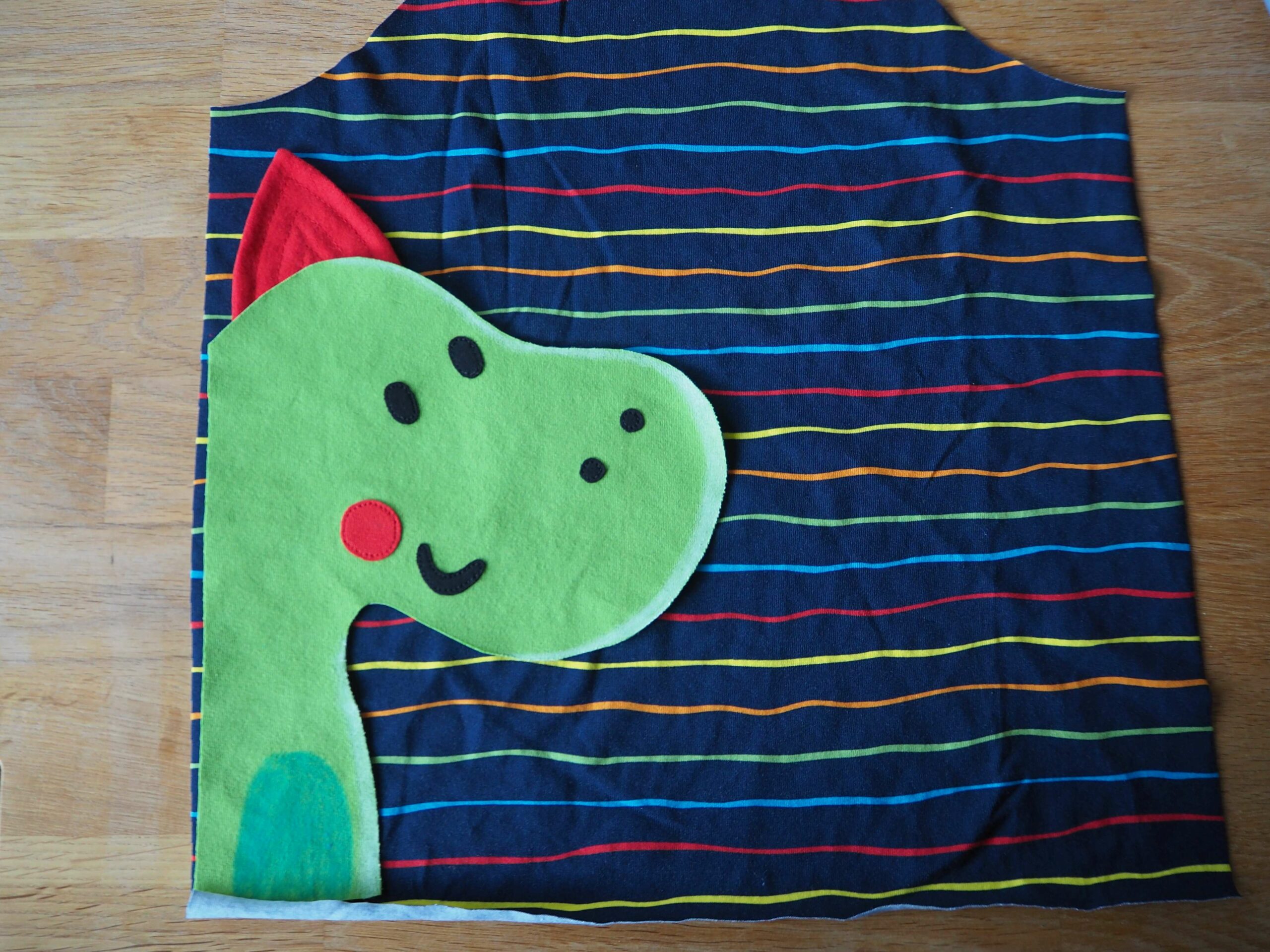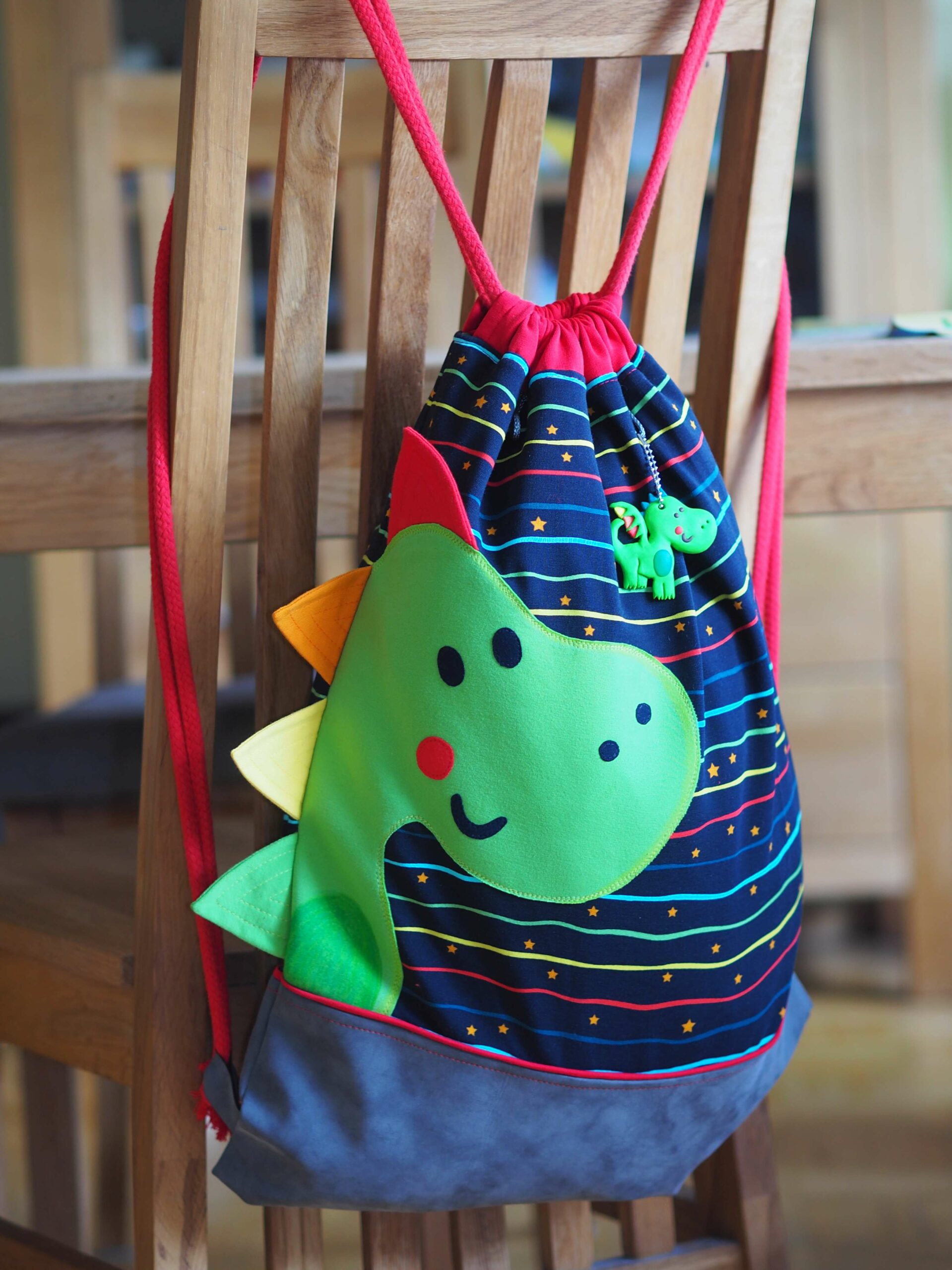 Als mein Mittlerer neulich einen neuen Beutel für den Kindergarten brauchte, war der Wunsch natürlich auch wieder: Drachenland. Alles was ich noch an Drachenland da hatte, war mir dafür zu klein, also schnell bei Stoff & Liebe nachgefragt, ob ich mir eine Applikation selber basteln darf.
