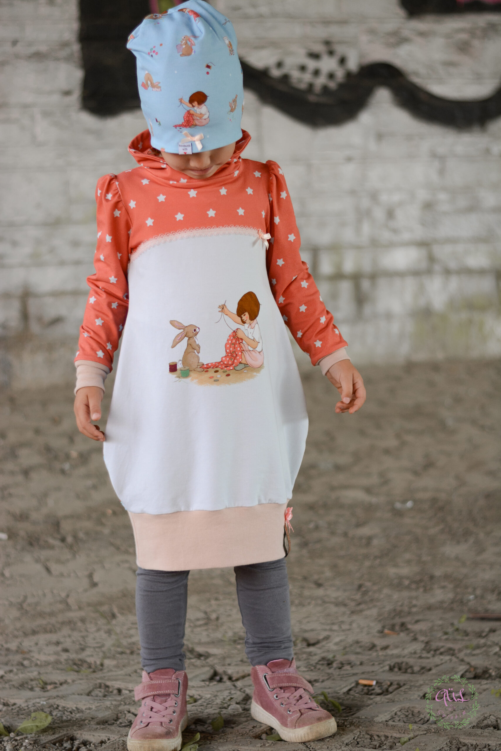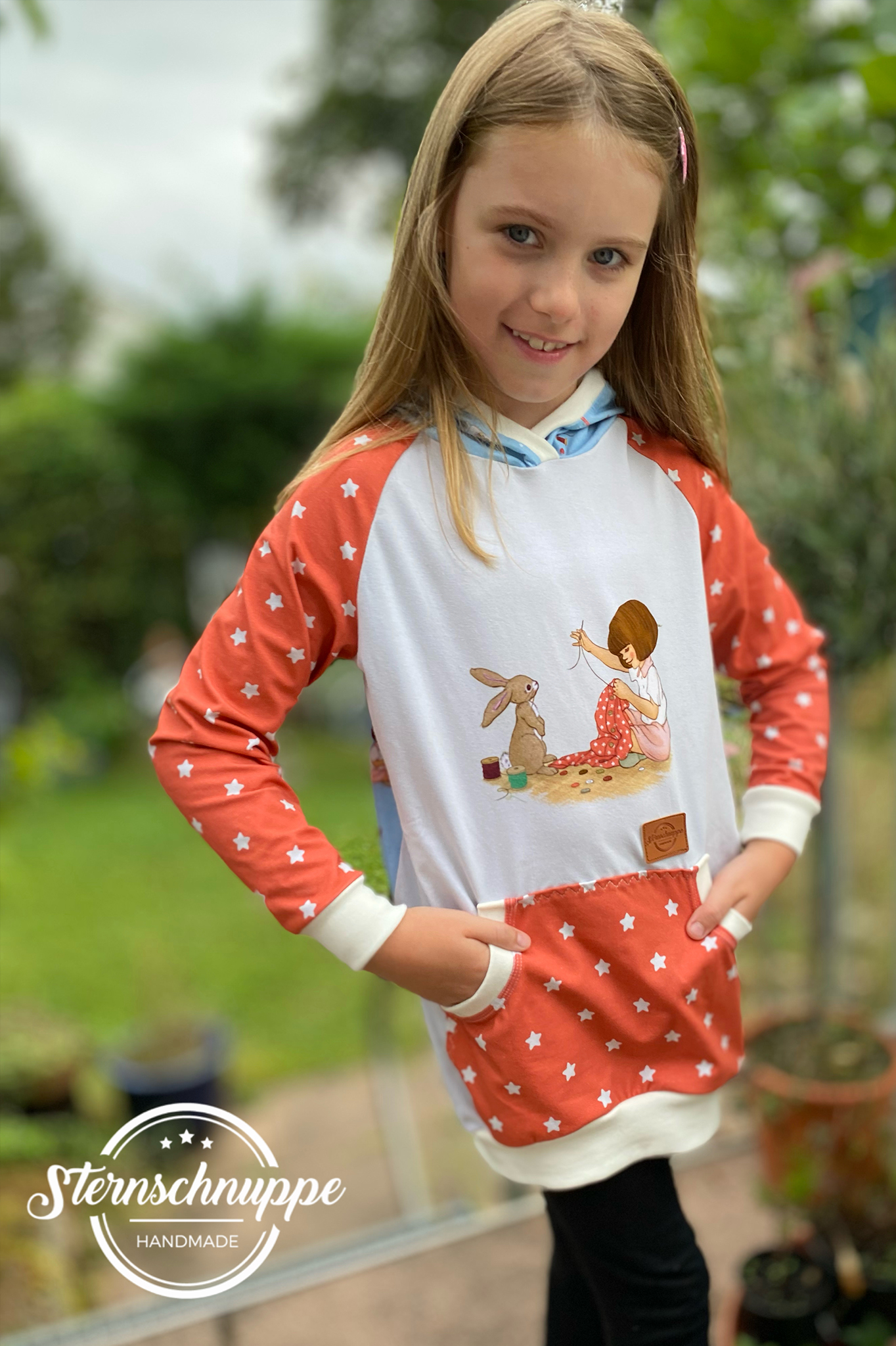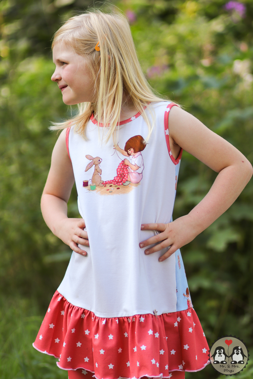Dazu haben wir für Euch einen passenden Kombistoff und zwar die „Little Stars“. Diesen Kombistoff haben wir nicht ohne Grund ausgesucht, denn wie oben schon erwähnt, ist es genau der Stoff, den Belle vernäht.