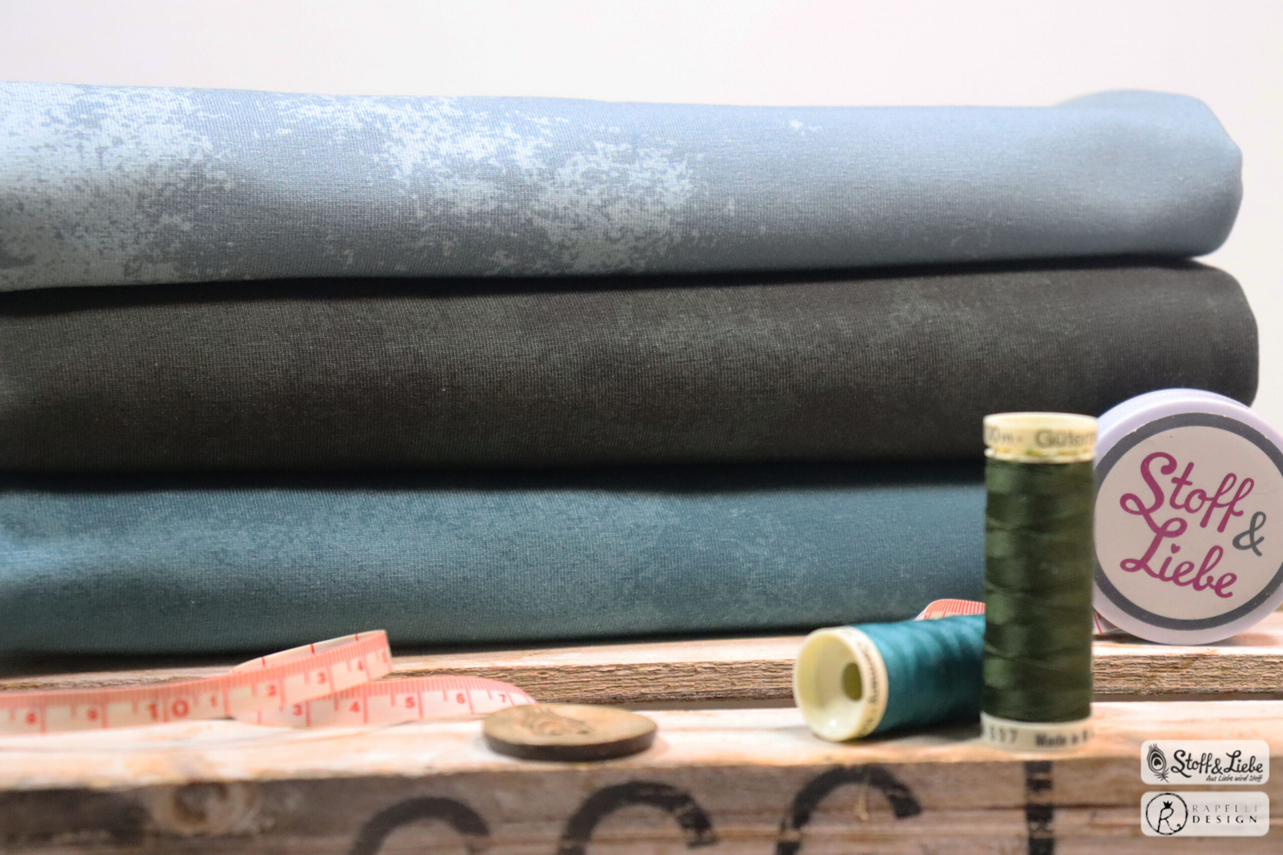 Die Stoffe erhaltet Ihr auf Jersey in unserer gewohnten Spitzenqualität. Die Materialzusammensetzung beträgt 95 % Baumwolle und 5 % Elasthan. Dieses Design wurde von Rapelli Design für uns umgesetzt.