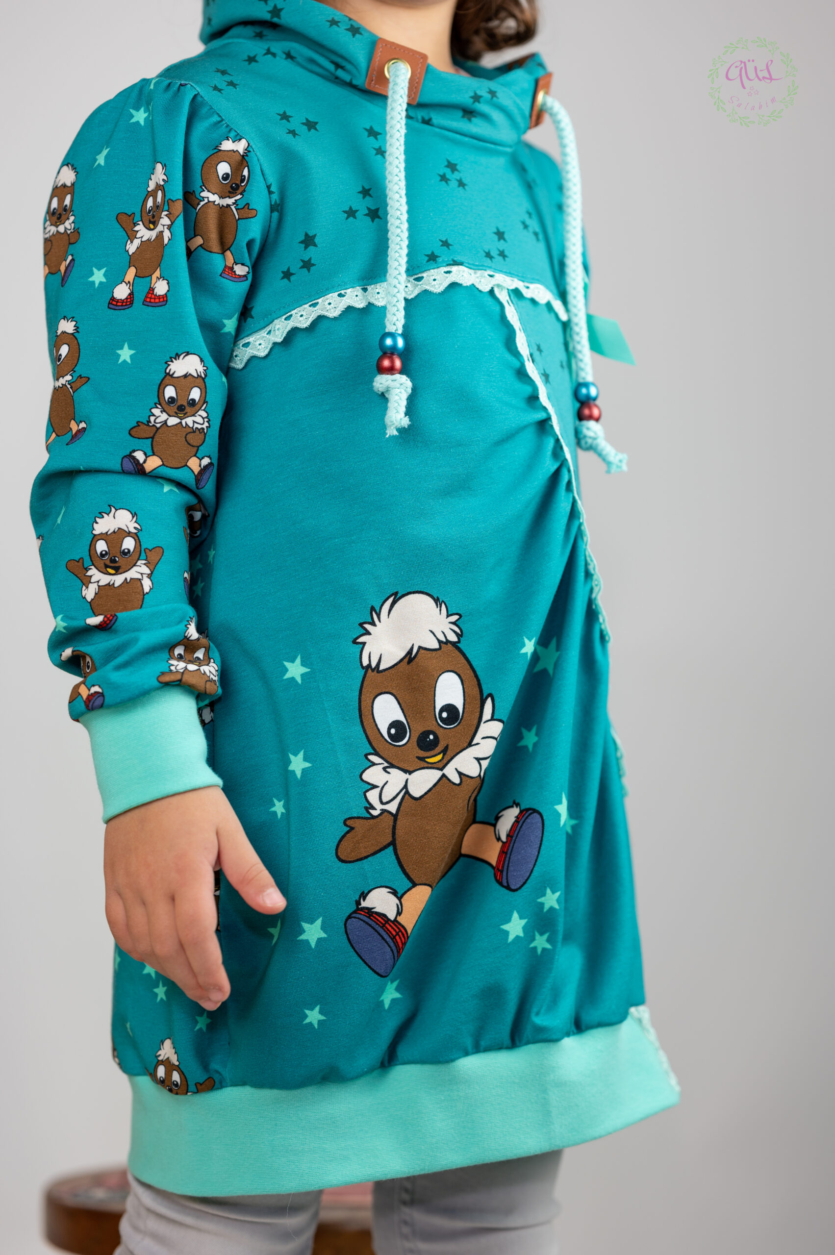 Den Pittiplatsch Allover haben wir für Euch in drei Farben: Altrosa, Petrol und Grün. Die Motive haben eine Höhe von. ca. 7 cm und sind somit für Nähprojekte in allen Größen gleichermaßen gut vernähbar. Der Allover lässt sich nicht nur prima zum Panel kombinieren, er ist auch solo vernäht ein echter Hingucker.