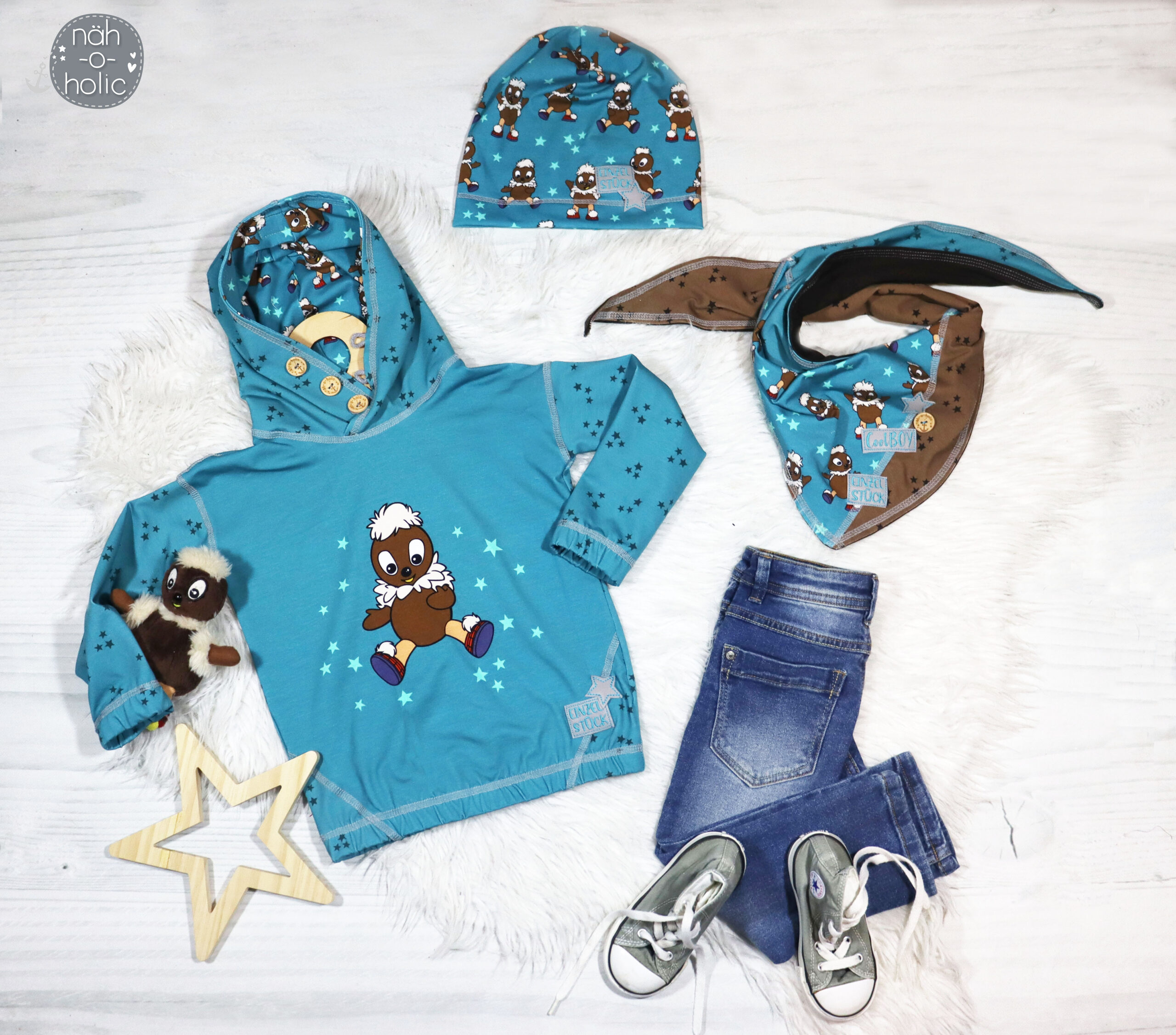 Unsere Kollektion besteht aus einem Panel, drei Haupt- sowie drei Kombistoffen. Die Stoffe erhaltet Ihr auf Jersey in unserer gewohnten Spitzenqualität. Die Materialzusammensetzung beträgt 95 % Baumwolle und 5 % Elasthan. Dieses Design wurde von Rapelli Design für uns umgesetzt.