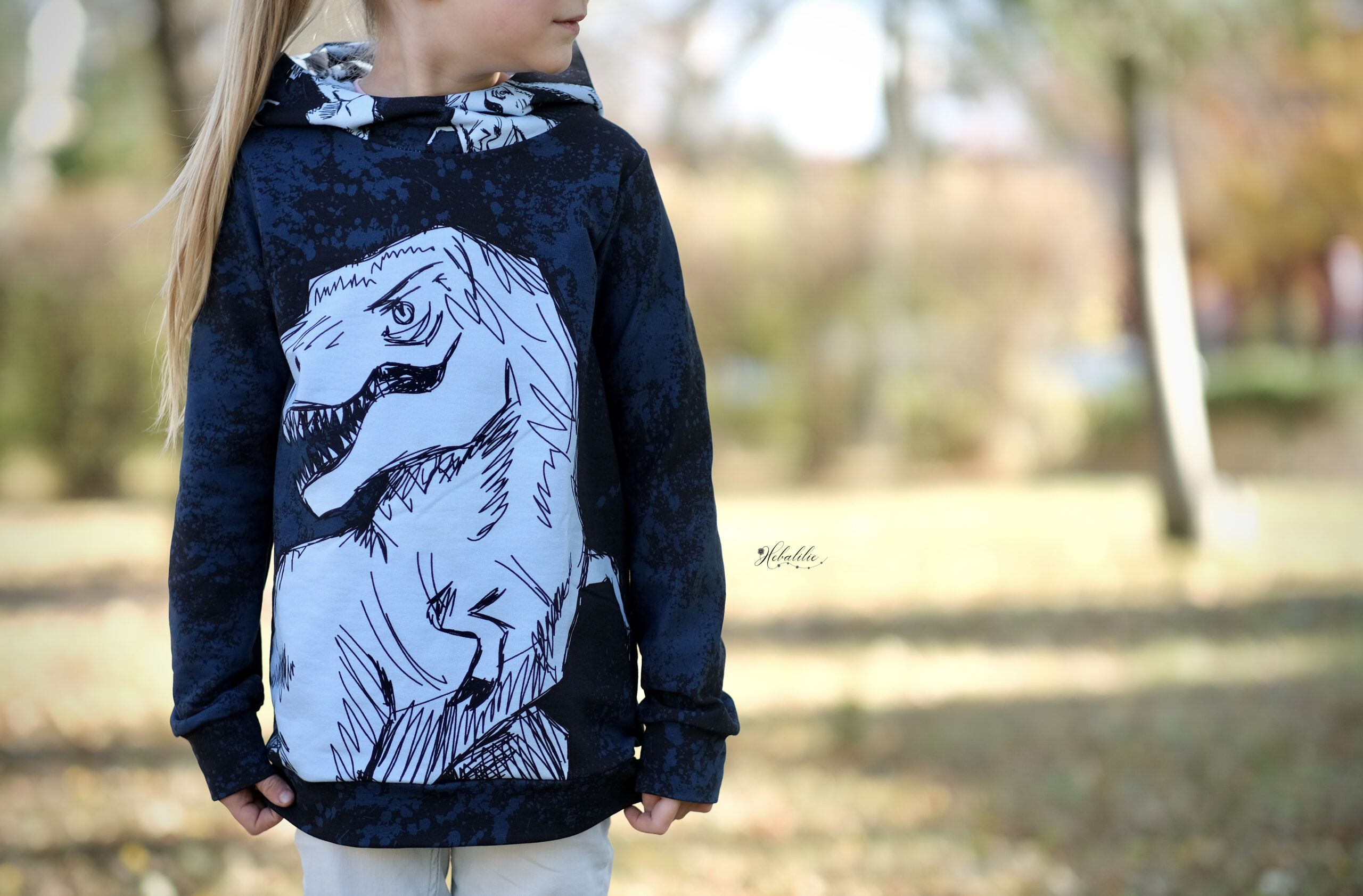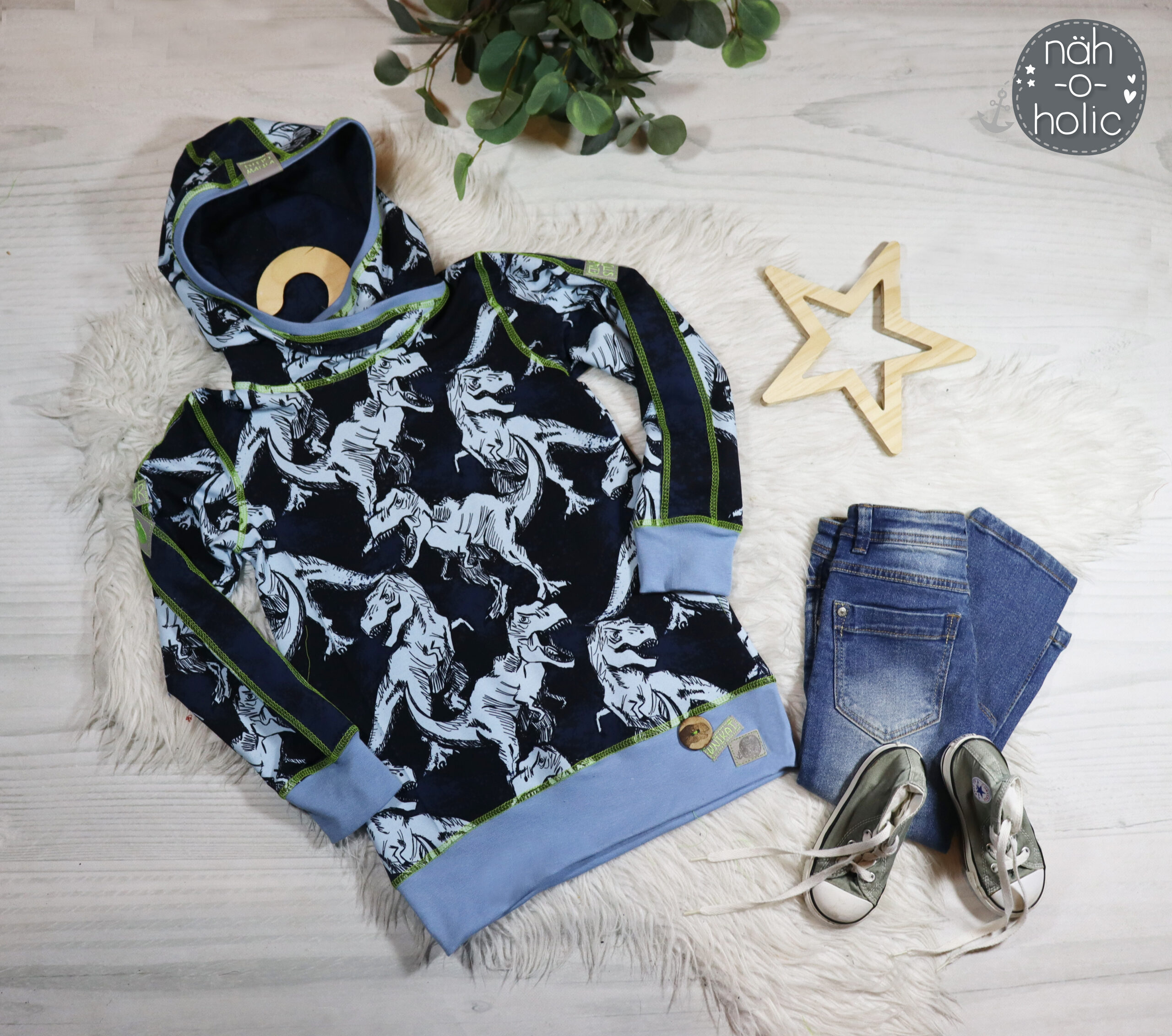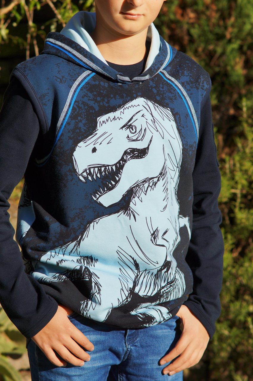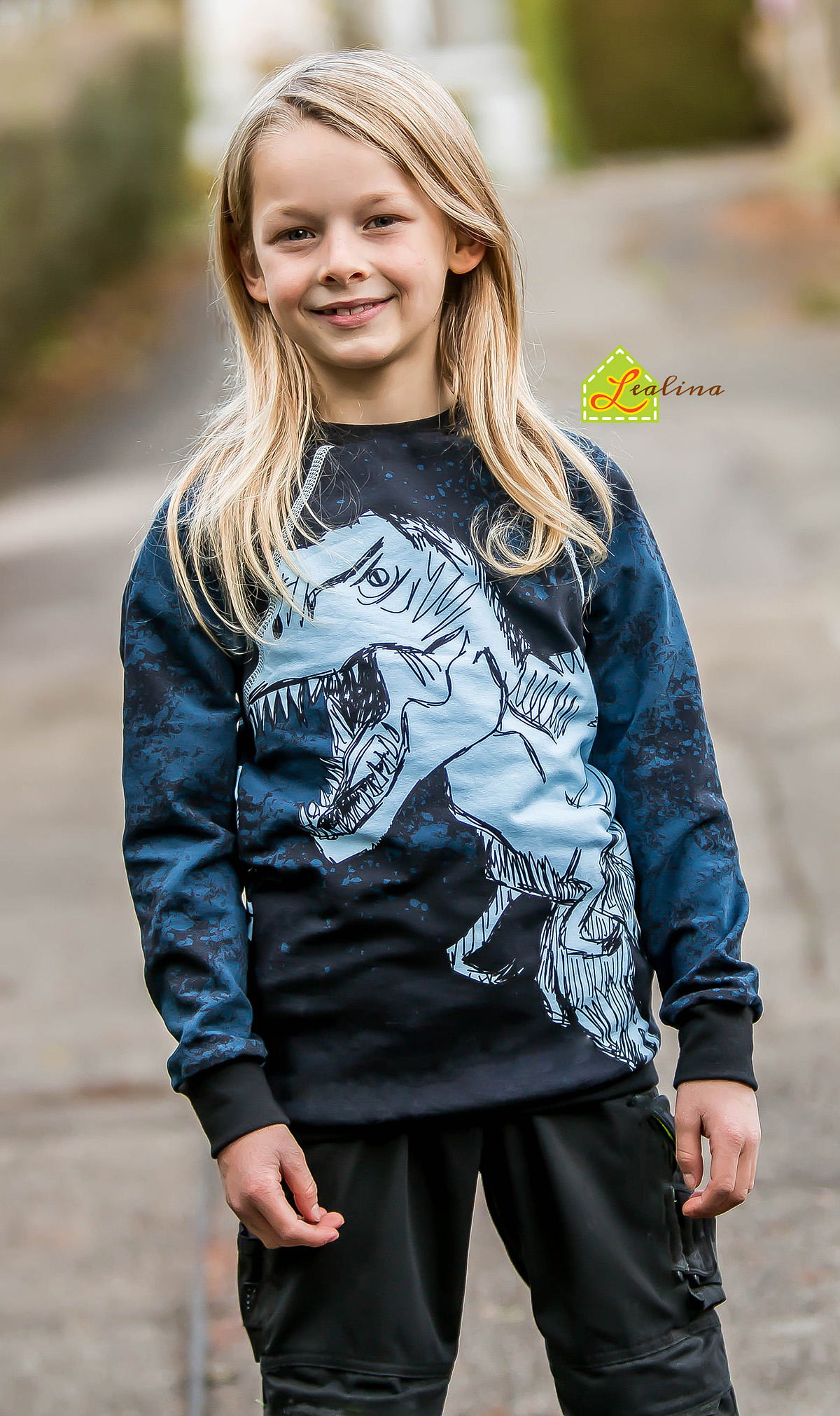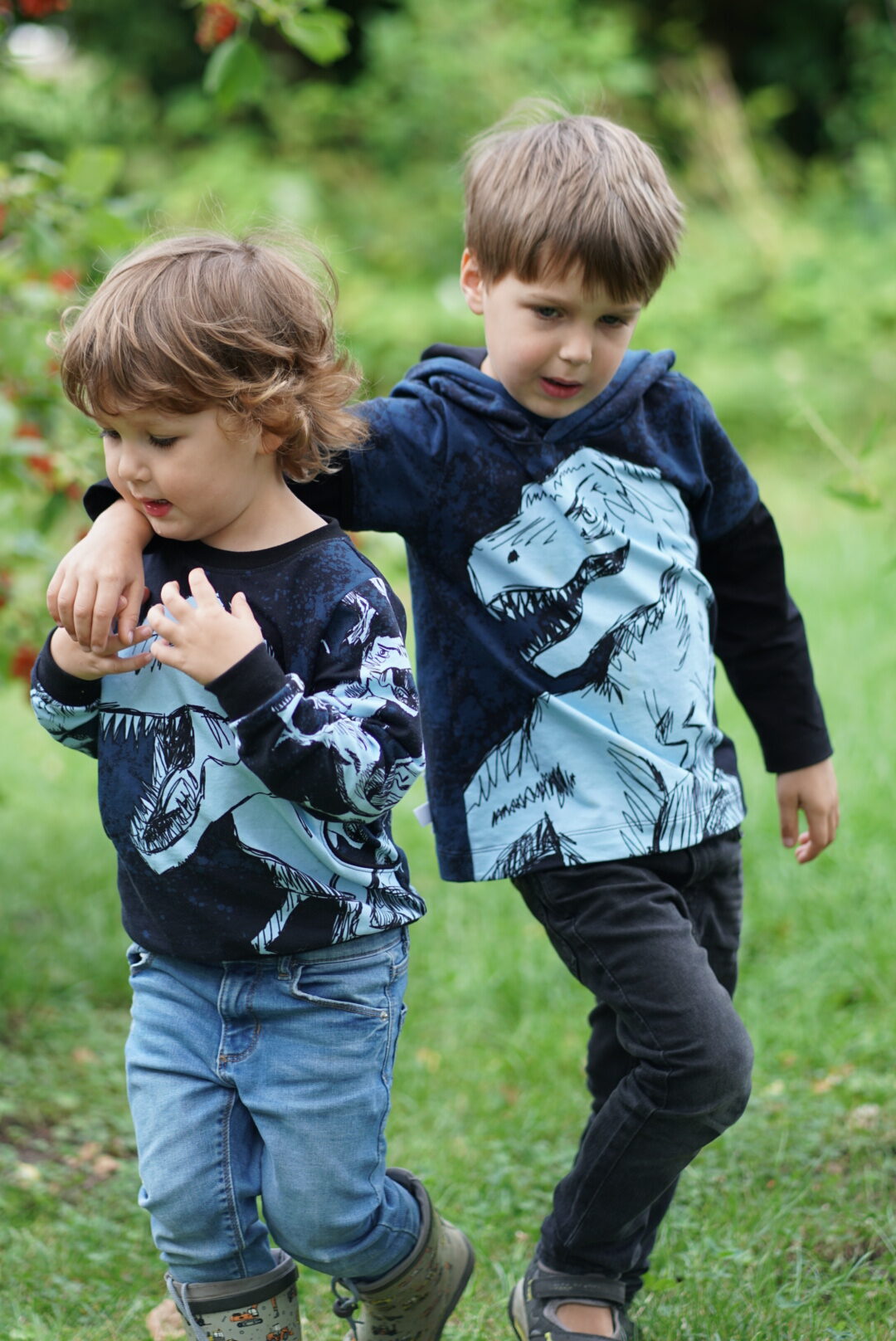 Außerdem gehört zu dieser Kollektion ein Allover. Auch hier findet Ihr die Dinos, wie beim Panel in einem Hellblau auf dem Used-Look Untergrund. Der perfekte Stoff für alle Dinoliebhaber, die es etwas cooler mögen. Ob Ihr ihn zum Panel kombiniert oder solo vernäht, der Stoff ist in jedem Fall ein Hingucker und lässt sich genauso wie das Panel prima kombinieren. Egal ob lässig oder etwas schicker, lasst Eurer Kreativität freien Lauf und näht Eure neuen Lieblingsteile ganz in Eurem Stile.