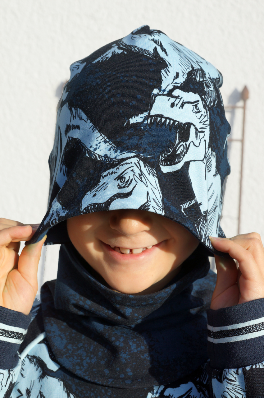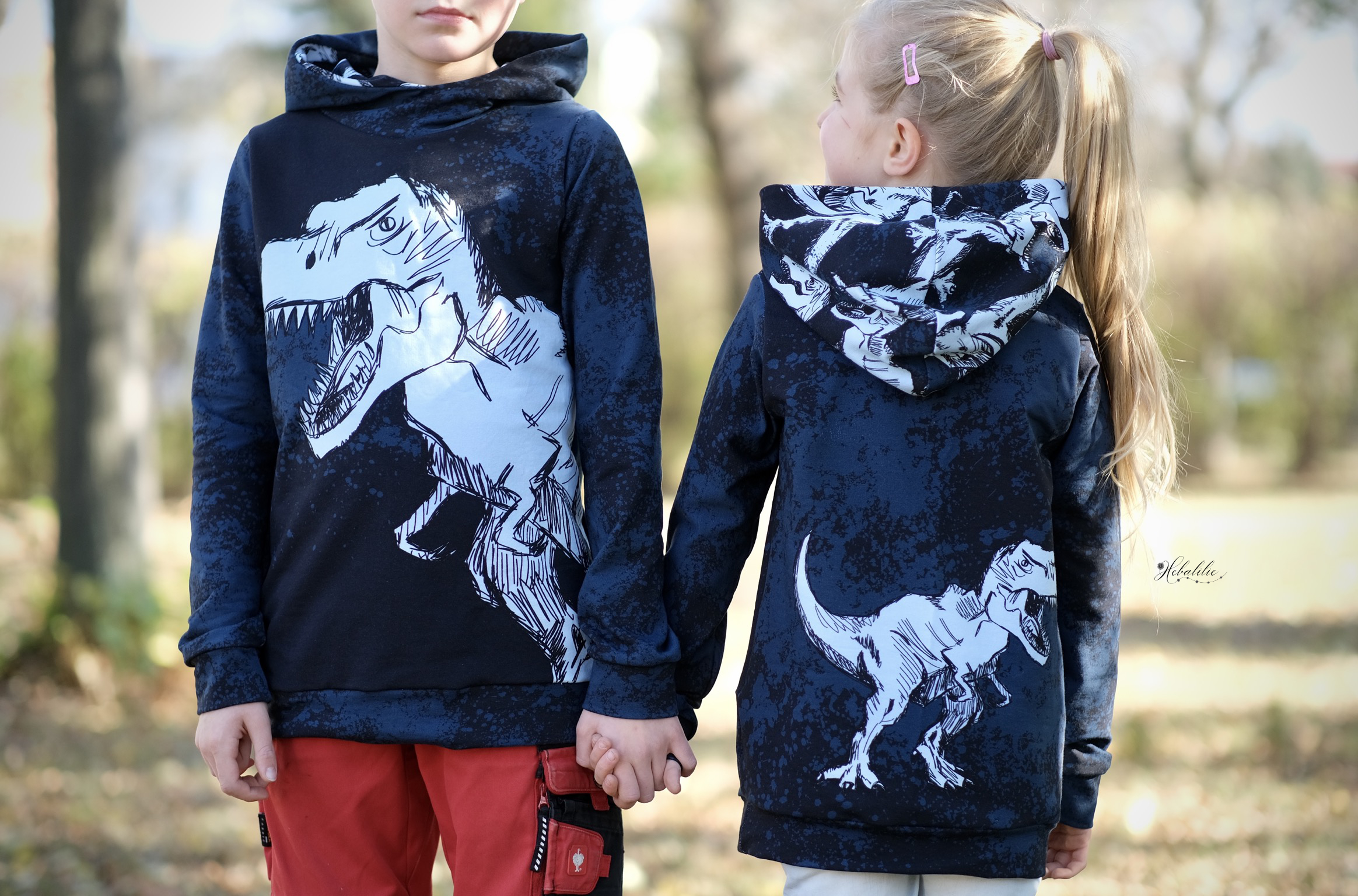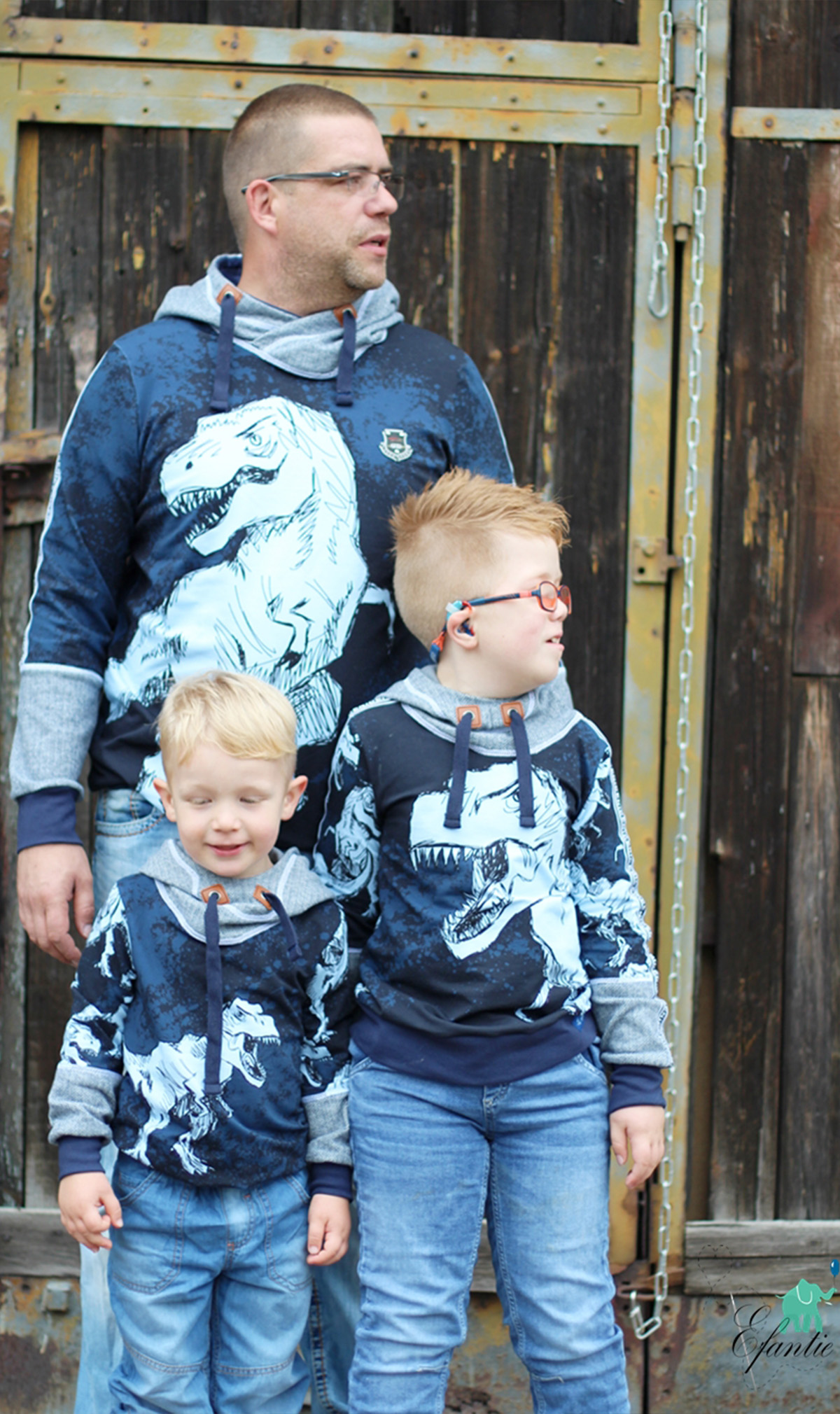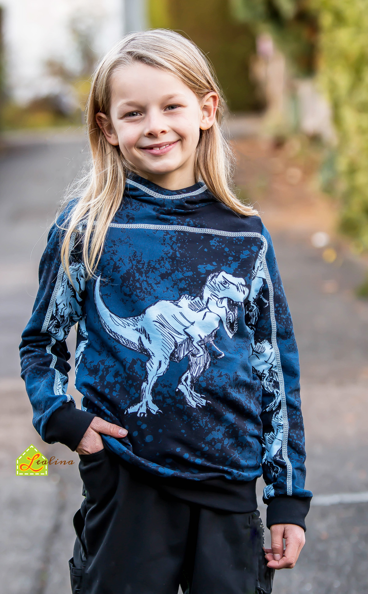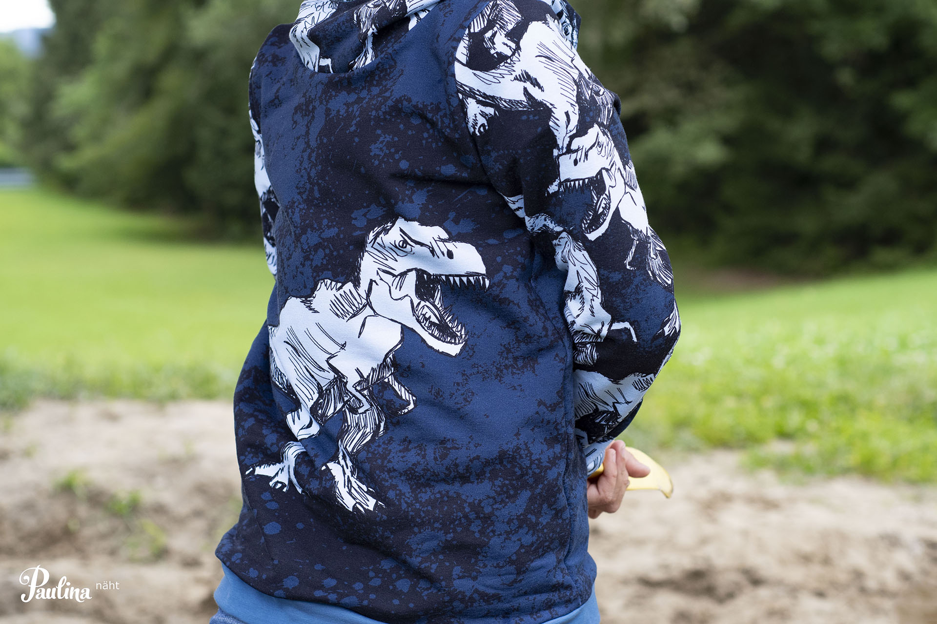 Außerdem gehört zu dieser Kollektion ein Allover. Auch hier findet Ihr die Dinos, wie beim Panel in einem Hellblau auf dem Used-Look Untergrund. Der perfekte Stoff für alle Dinoliebhaber, die es etwas cooler mögen. Ob Ihr ihn zum Panel kombiniert oder solo vernäht, der Stoff ist in jedem Fall ein Hingucker und lässt sich genauso wie das Panel prima kombinieren. Egal ob lässig oder etwas schicker, lasst Eurer Kreativität freien Lauf und näht Eure neuen Lieblingsteile ganz in Eurem Stile.
