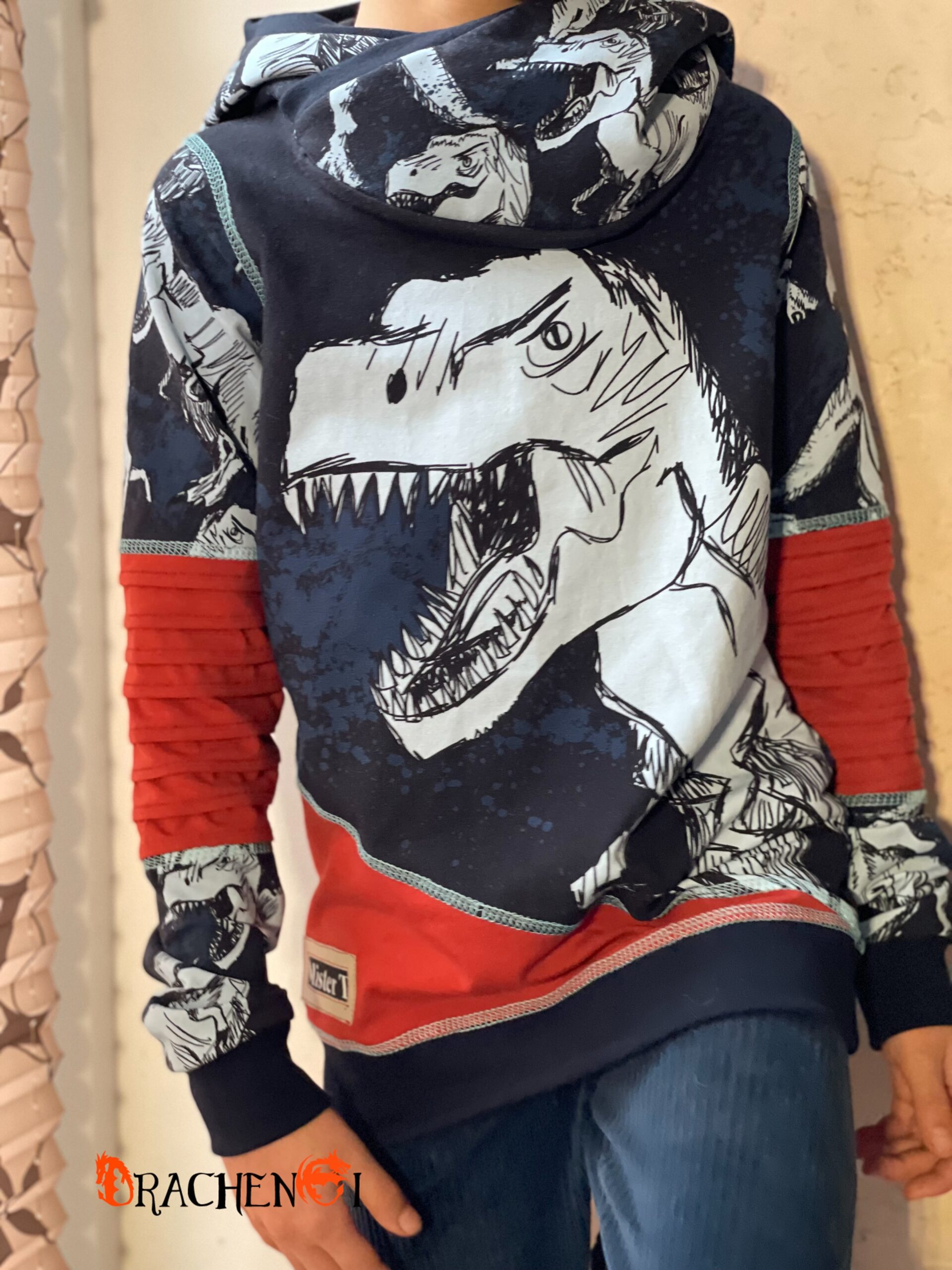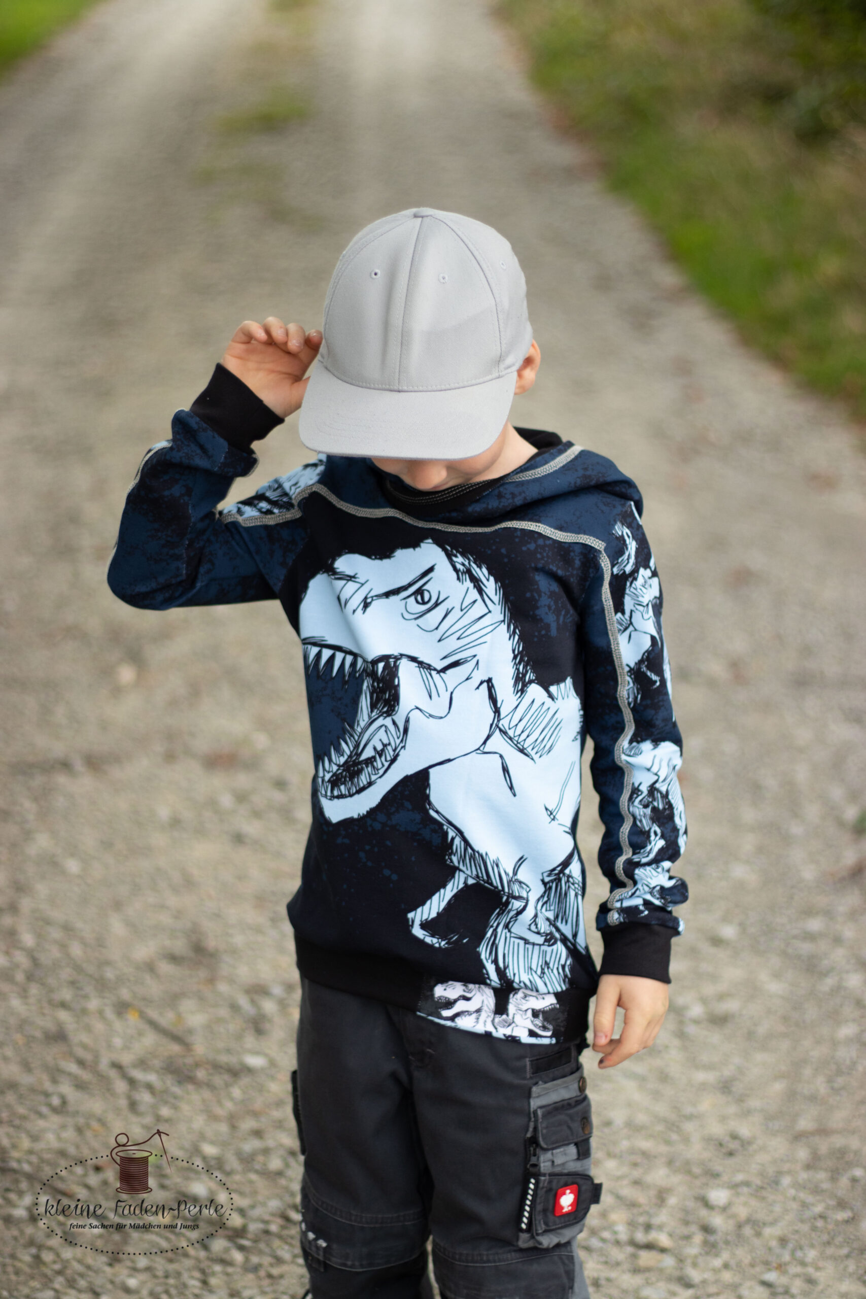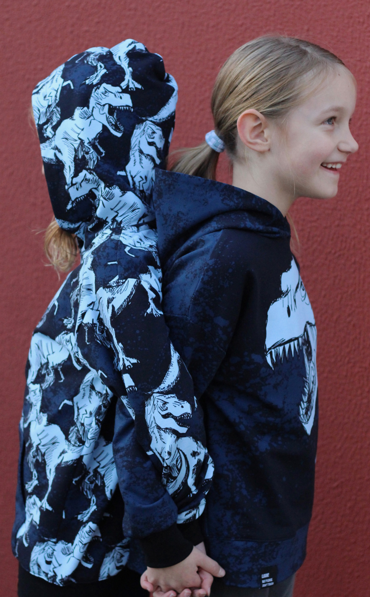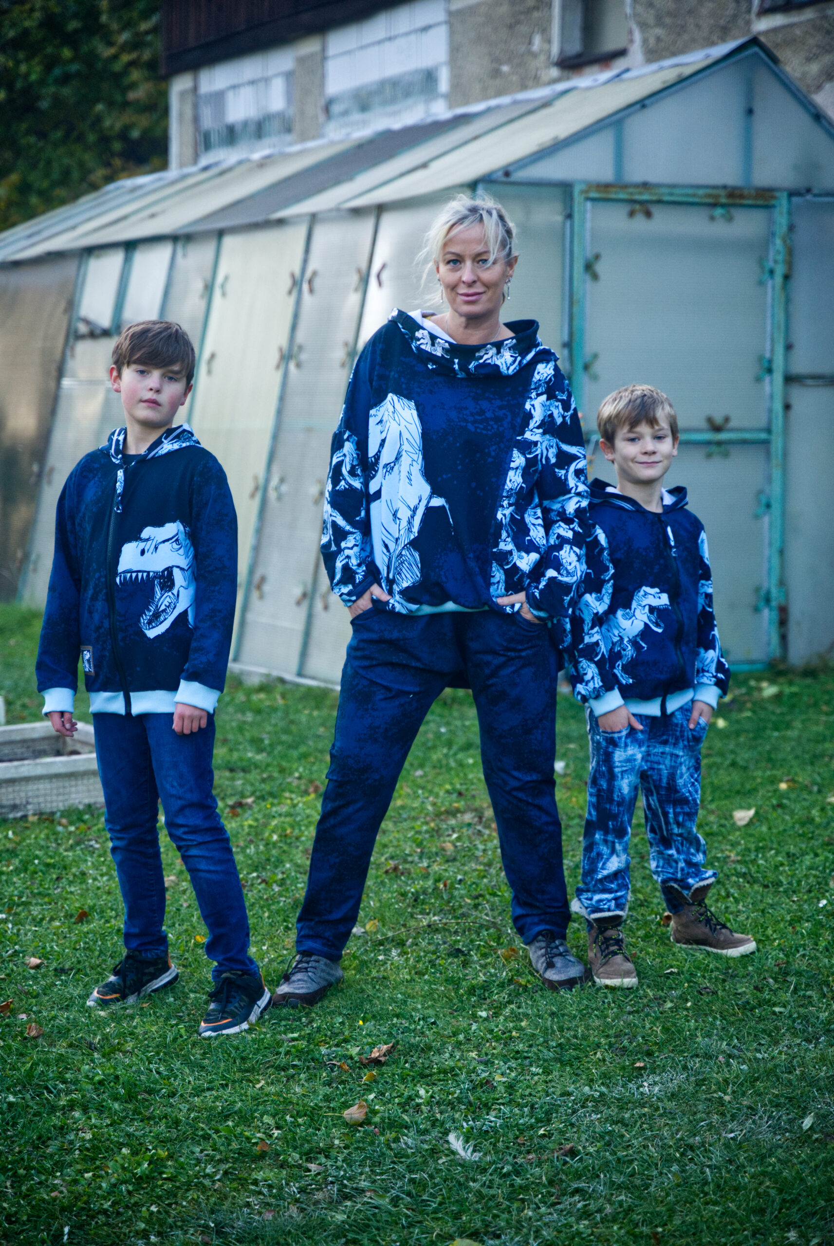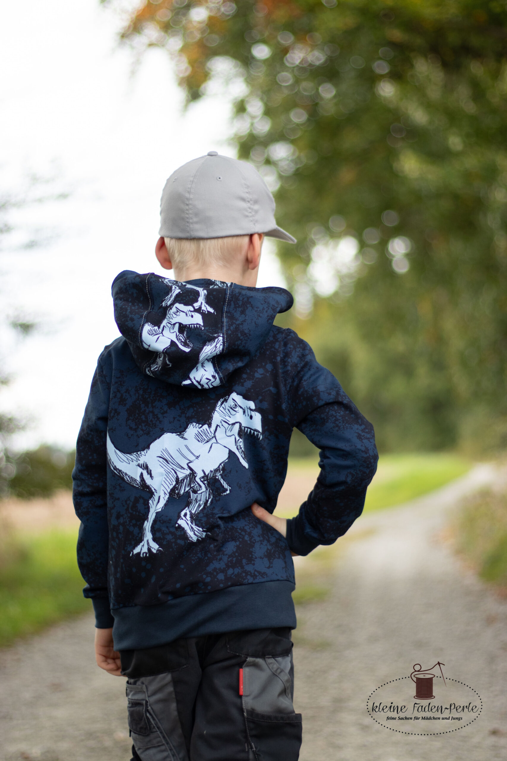 Außerdem gehört zu dieser Kollektion ein Allover. Auch hier findet Ihr die Dinos, wie beim Panel in einem Hellblau auf dem Used-Look Untergrund. Der perfekte Stoff für alle Dinoliebhaber, die es etwas cooler mögen. Ob Ihr ihn zum Panel kombiniert oder solo vernäht, der Stoff ist in jedem Fall ein Hingucker und lässt sich genauso wie das Panel prima kombinieren. Egal ob lässig oder etwas schicker, lasst Eurer Kreativität freien Lauf und näht Eure neuen Lieblingsteile ganz in Eurem Stile.
