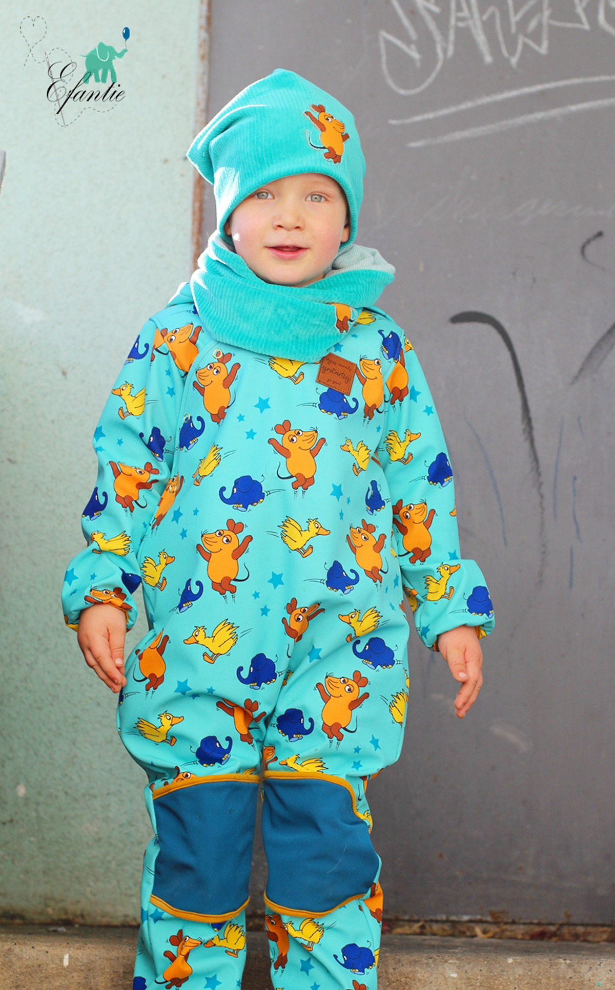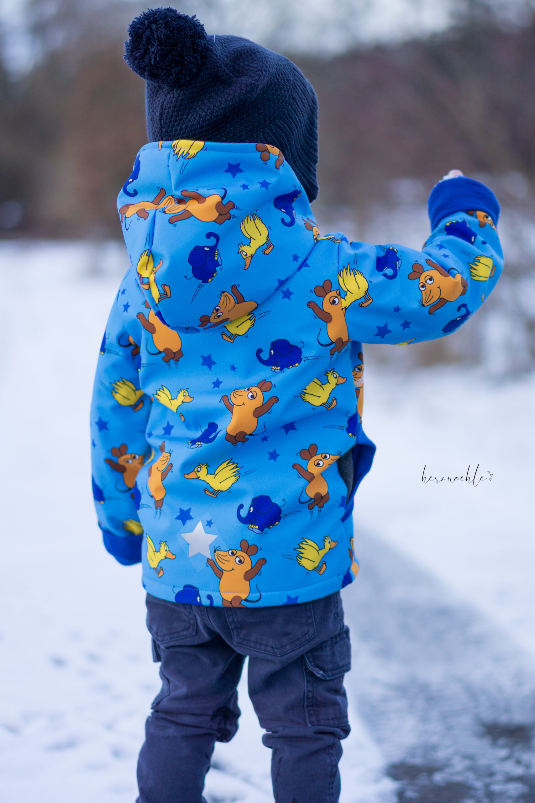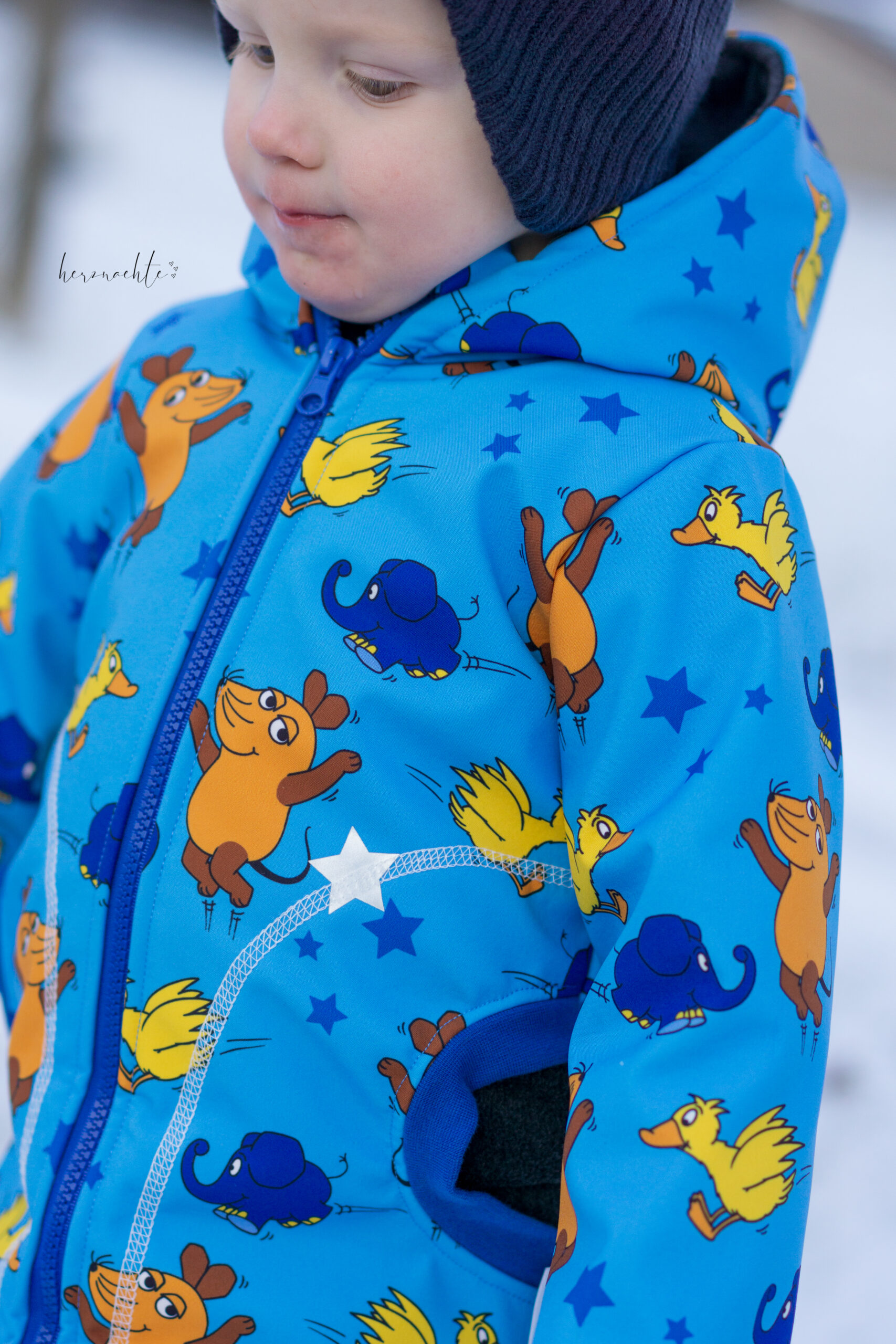 Dadurch bringt Softshell ganz fantastische Eigenschaften mit sich. Beispielsweise ist dieses Material absolut winddicht, wasserabweisend und zudem noch atmungsaktiv. Ein Allroundtalent für alle Pfützenspringer, Matschbuddler und Walderoberer. Wenn Du mehr über Softshell erfahren möchtest oder noch den ein oder anderen Tipp zum Vernähen brauchst, können wir Dir unseren Blogbeitrag „Sew easy Softshell“ ans Herz legen.