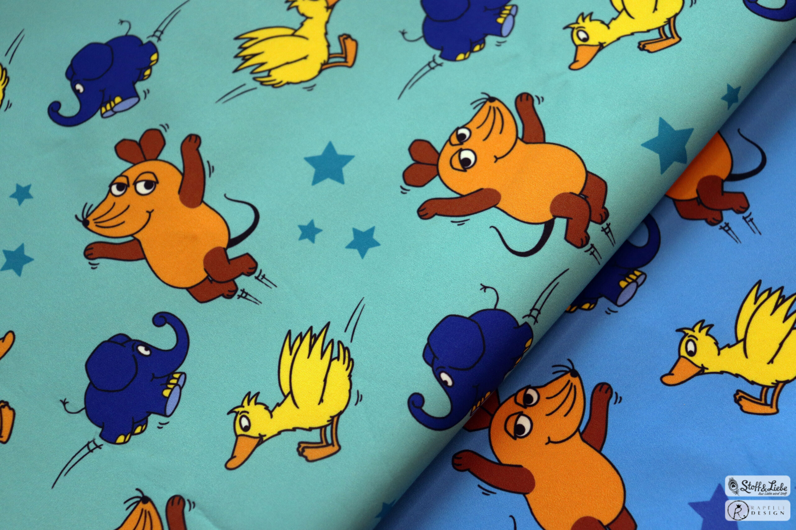 Und jetzt sind die Maus, der Elefant und die Ente an der Reihe! Durch die fröhlich, frischen Farben ein absoluter Gute-Laune-Stoff.