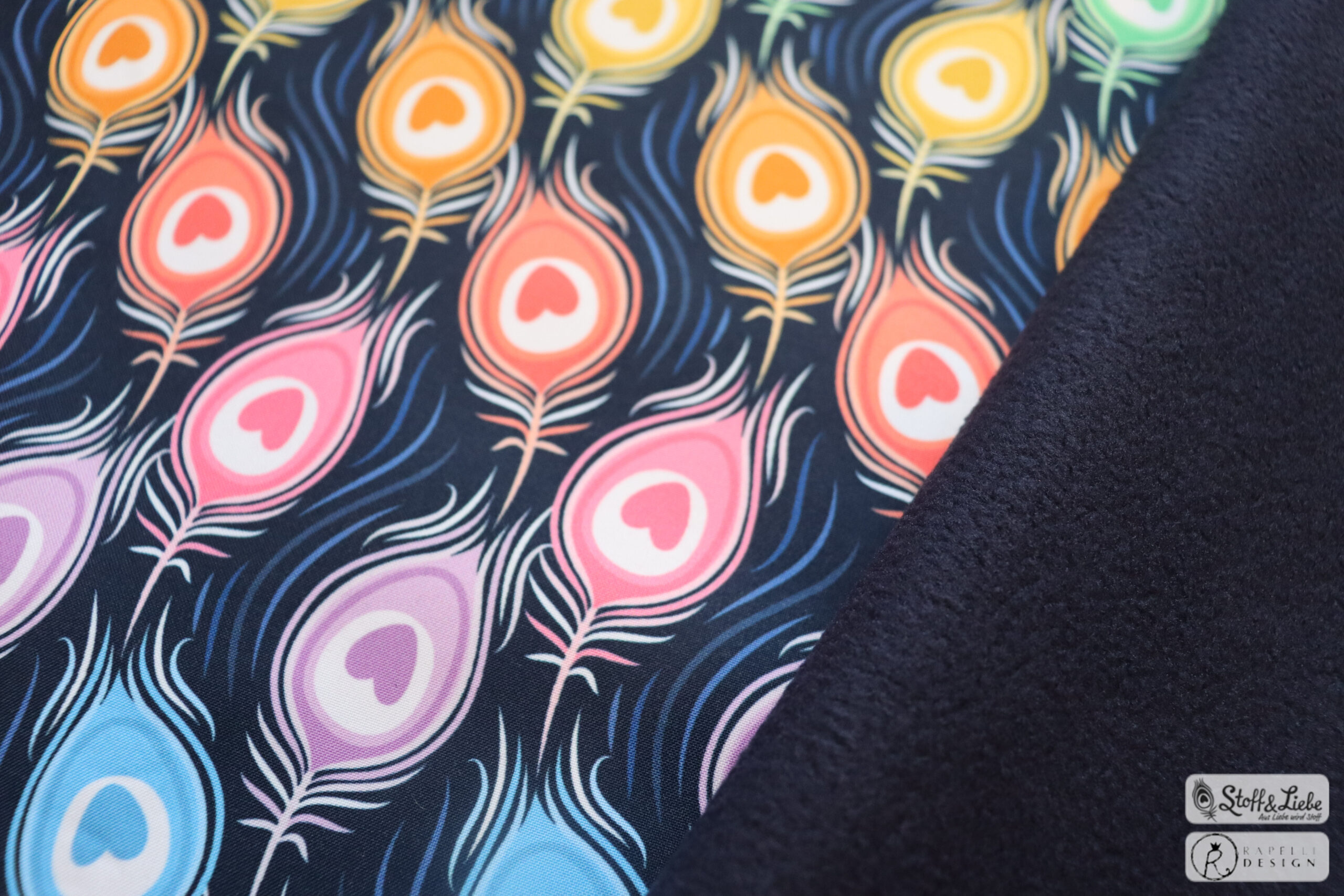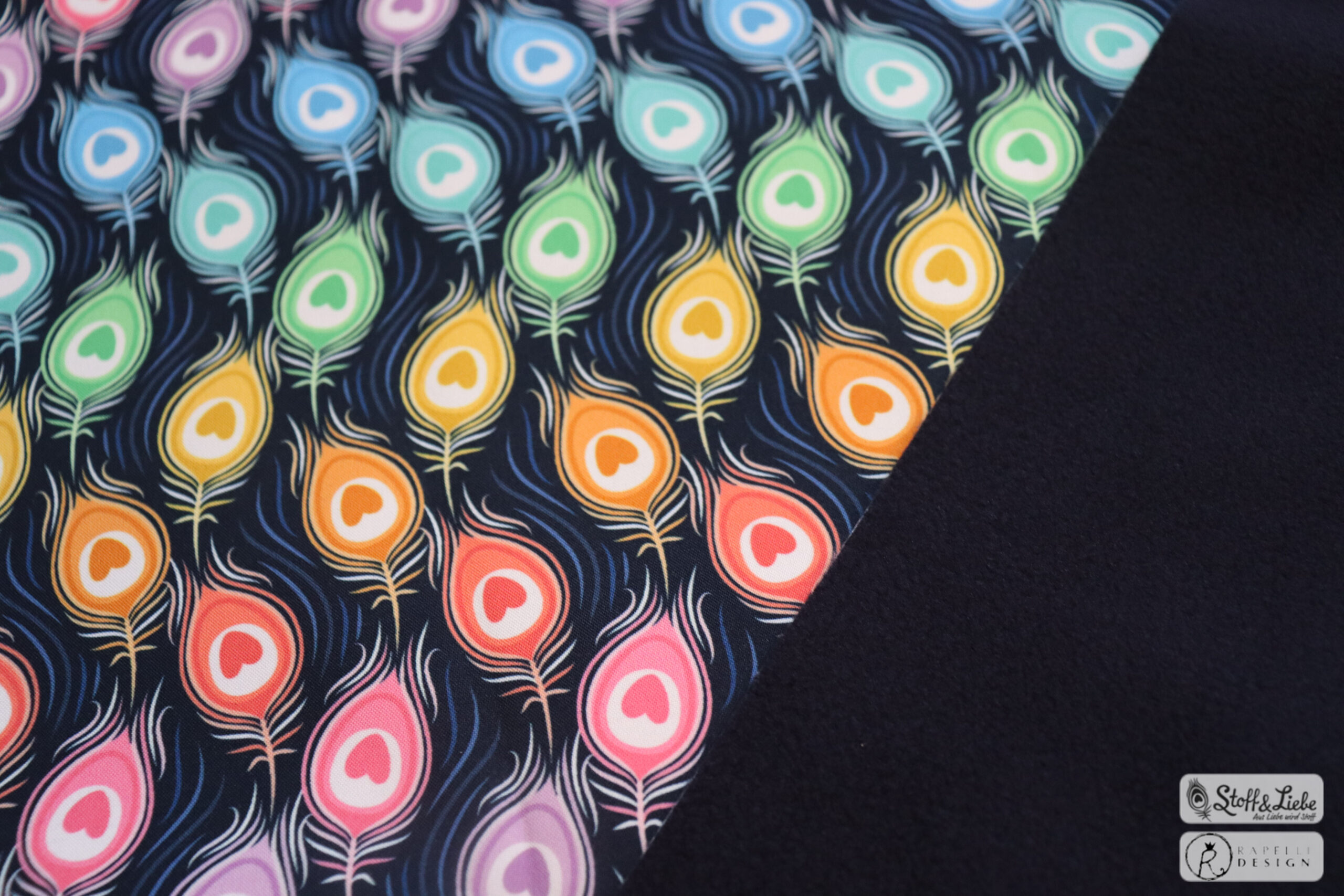 Die Abseite aller drei Stoffe ist ein kuscheliger, farbiger Fleece in passendem dunklen Blau, so dass Du auch ohne Probleme Kleidungsstücke ohne extra Innenfutter daraus nähen kannst.