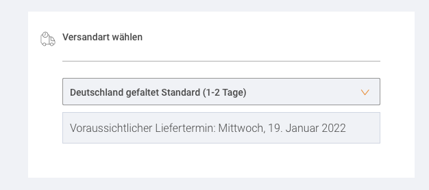 Wenn Ihr einen Gutscheincode eingelöst habt, seht Ihr, dass er eingelöst wurde, wenn das Feld Rot hinterlegt ist und der Rabatt angezeigt wird. Unter Versandart wählen könnt Ihr übrigens sehen, wann Eure Schnittmuster voraussichtlich bei Euch eintreffen werden.