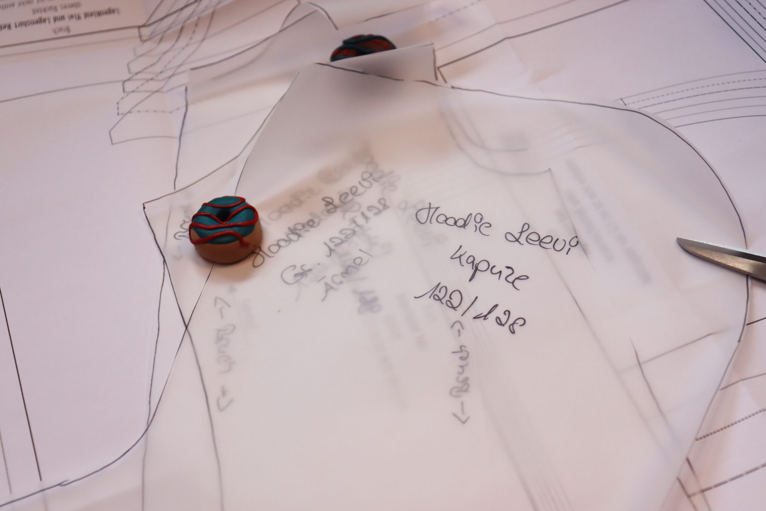 Wir haben die Erfahrung gemacht, dass es sich bei Schnittmustern für Kinder anbietet, hier die Schnittmuster in der benötigten Größe abzupausen und damit zu arbeiten, so dass man hier jederzeit auf alle Größen zugreifen kann. Bei Schnitten für Erwachsenen kann man dies vernachlässigen, da wir ja eigentlich so oft wie Kinder zwischen den Größen schwanken. Hier kann man nochmal Zeit sparen, in dem man seine benötigte Größe direkt ausschneidet.