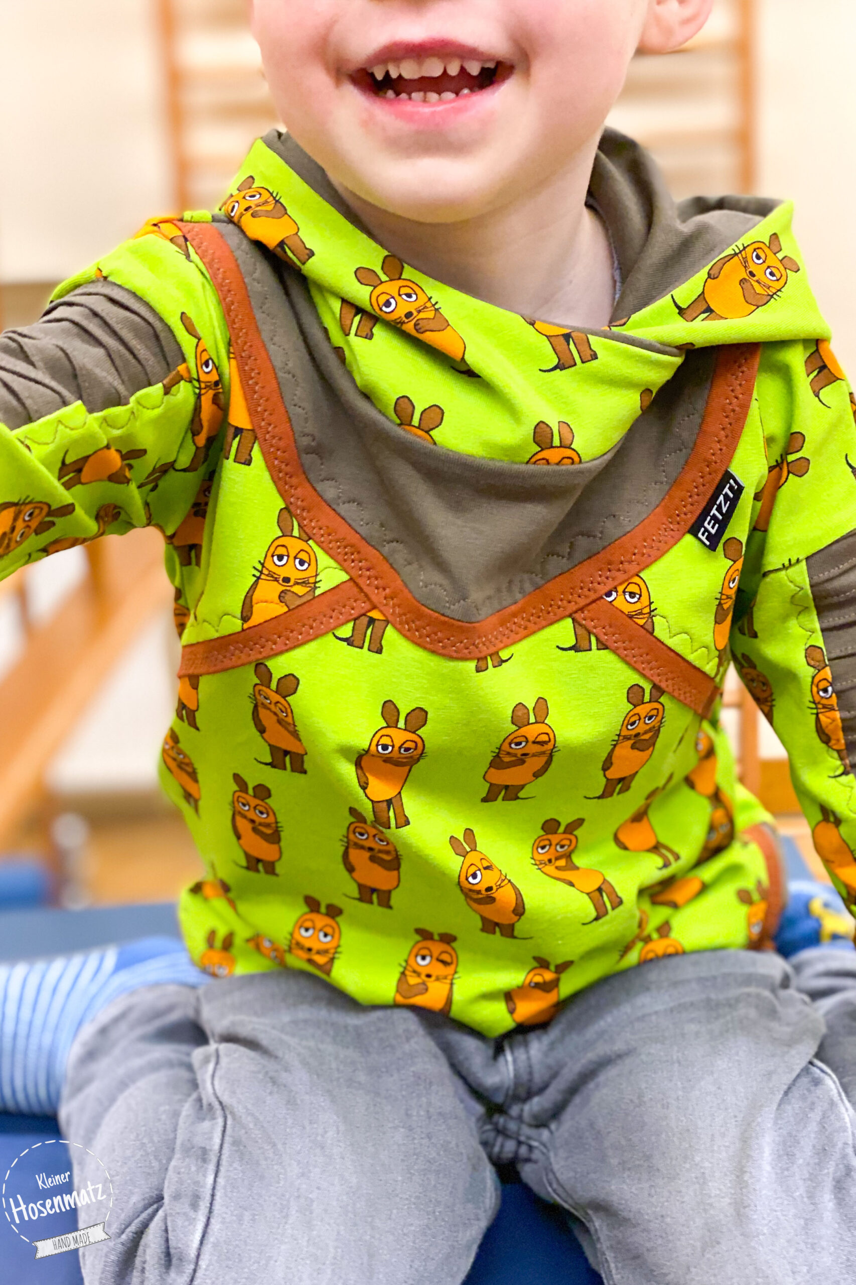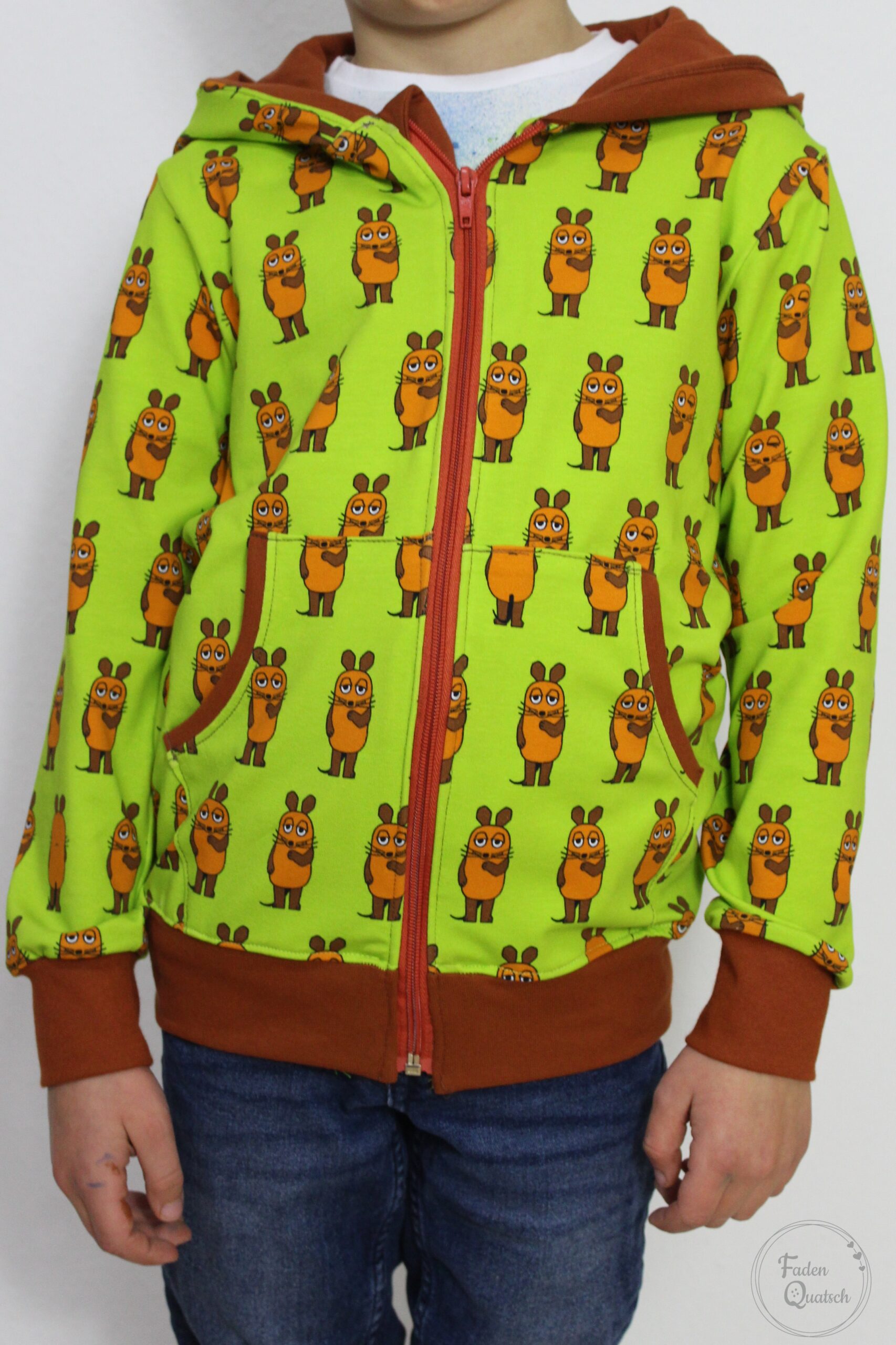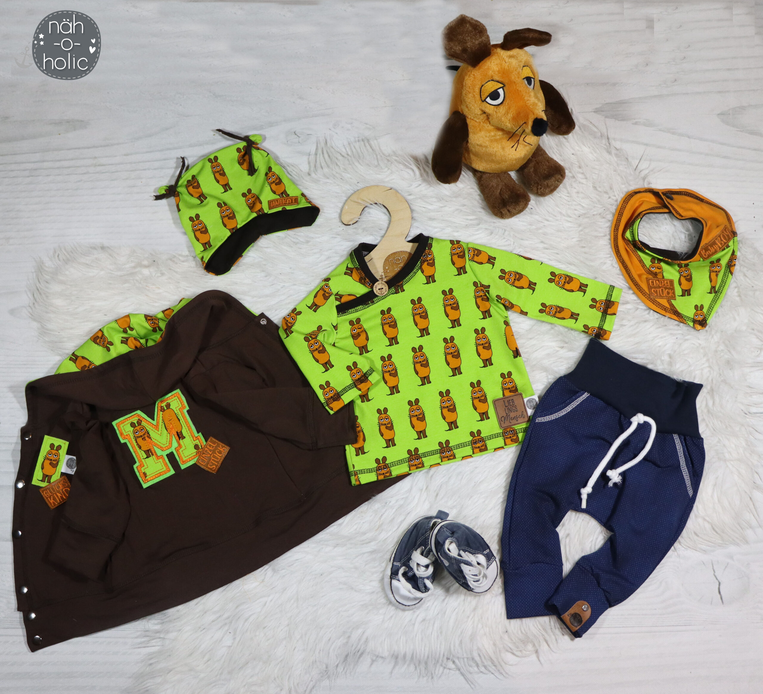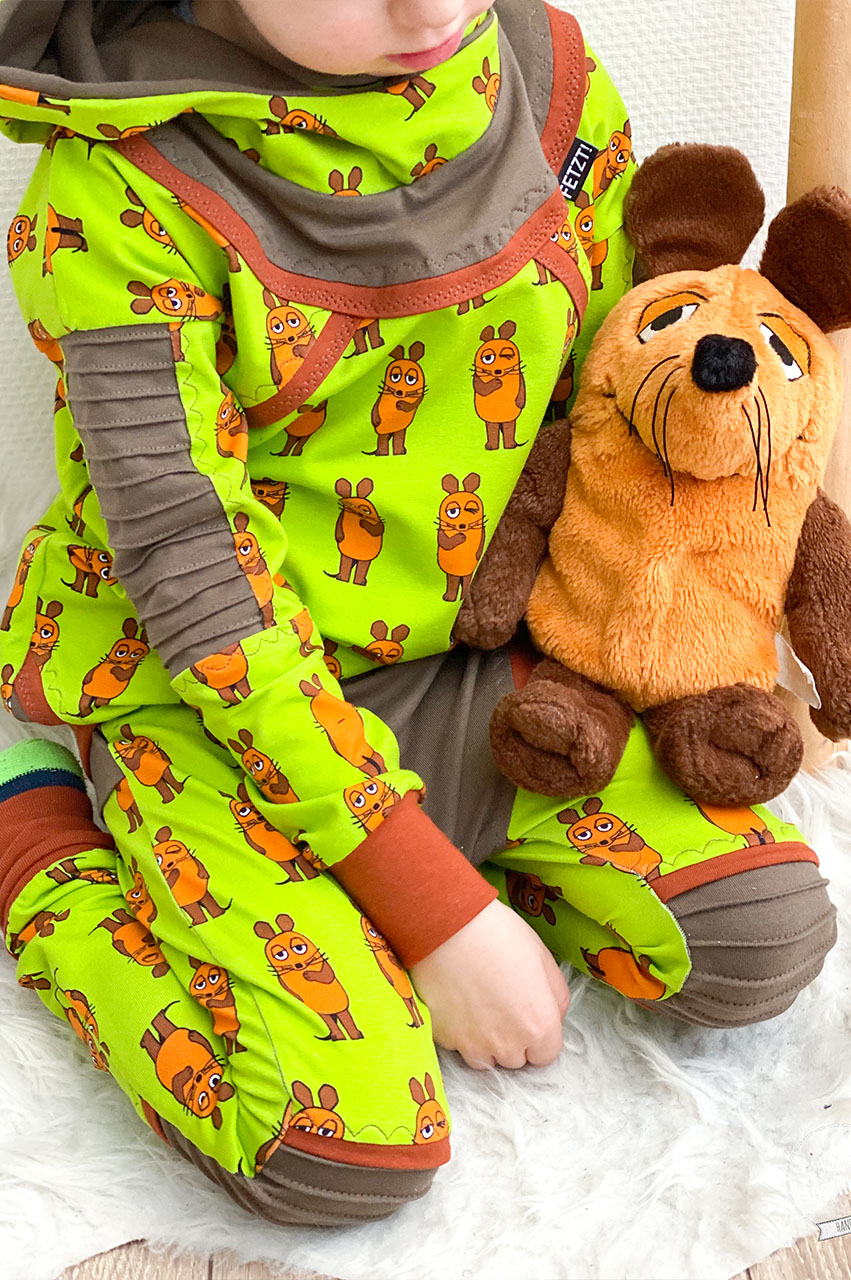 Genau wie bei den letzten Kollektionen der Maus „Vorne – Hinten“ bleiben hier wirklich keine Nähwünsche offen, denn er ist einfach absolut passend für eine Vielzahl an Nähprojekten. Ob Jacke, Kleid, Latzhose, Rock oder kuscheliger Hoodie, jedes Teil wird mit diesem Stoff ein Hingucker sein. Ob untereinander, mit Unis kombiniert oder solo vernäht, aus diesen Stoffen können Eure neuen Lieblingsstücke entstehen. Durch die Größe der Motive eignen sie sich gleichermaßen für Nähstücke in kleinen wie auch großen Größen.