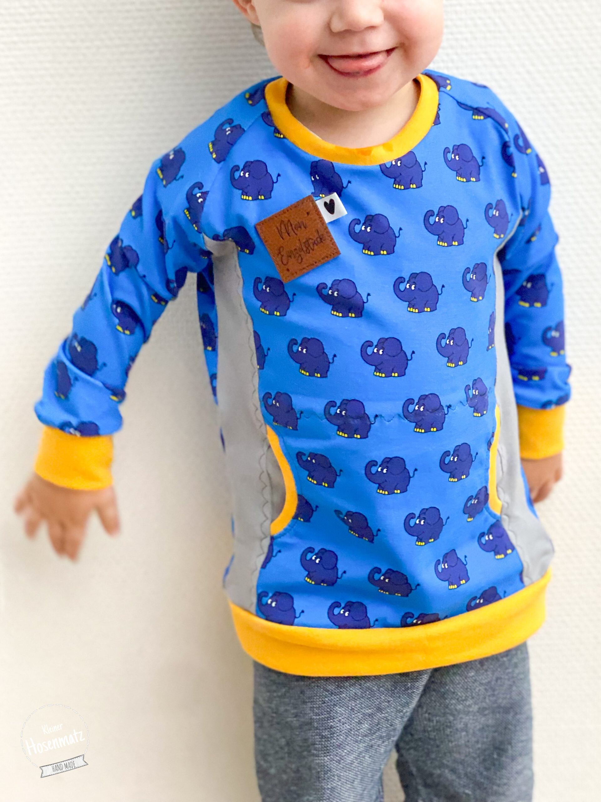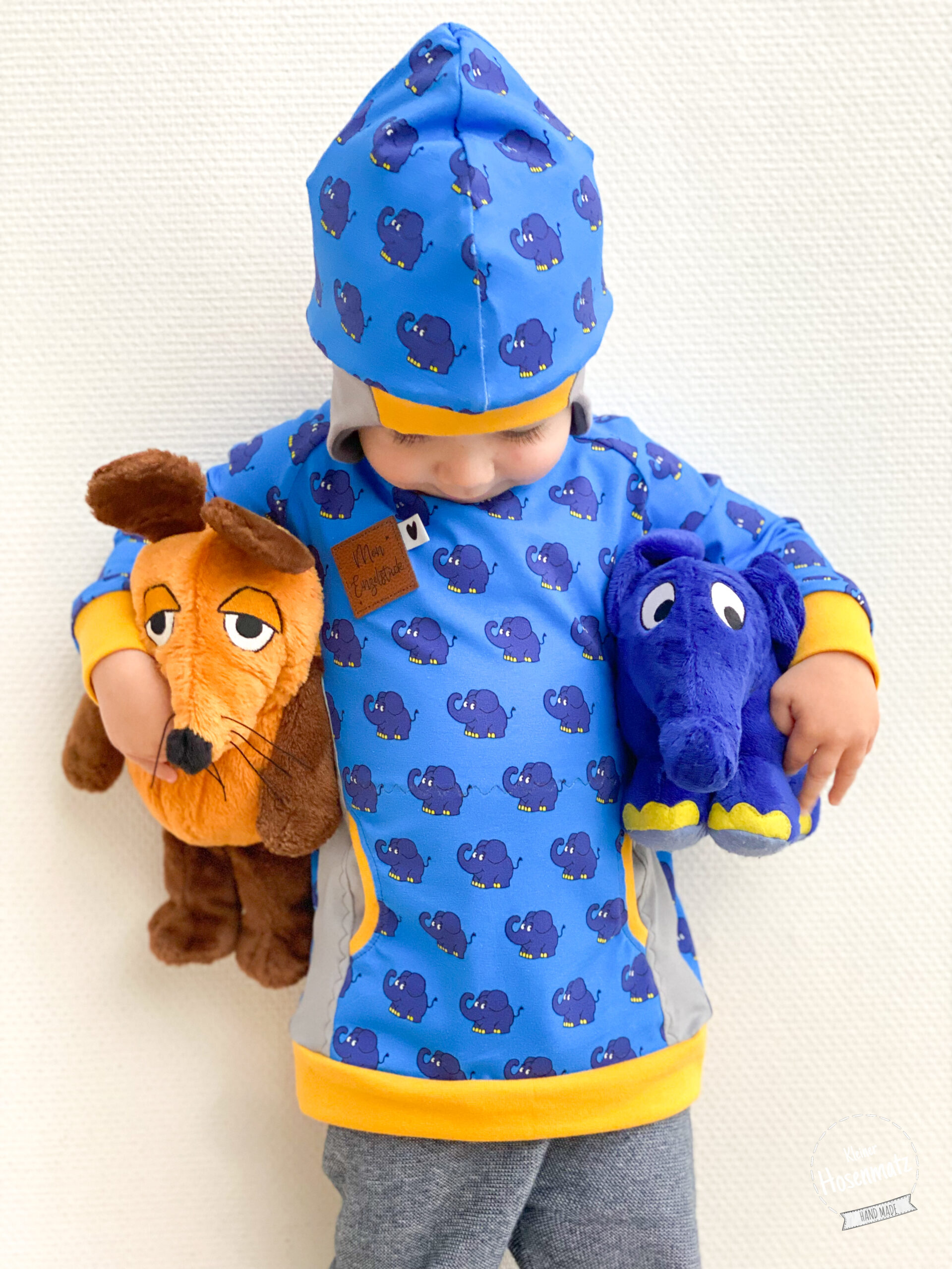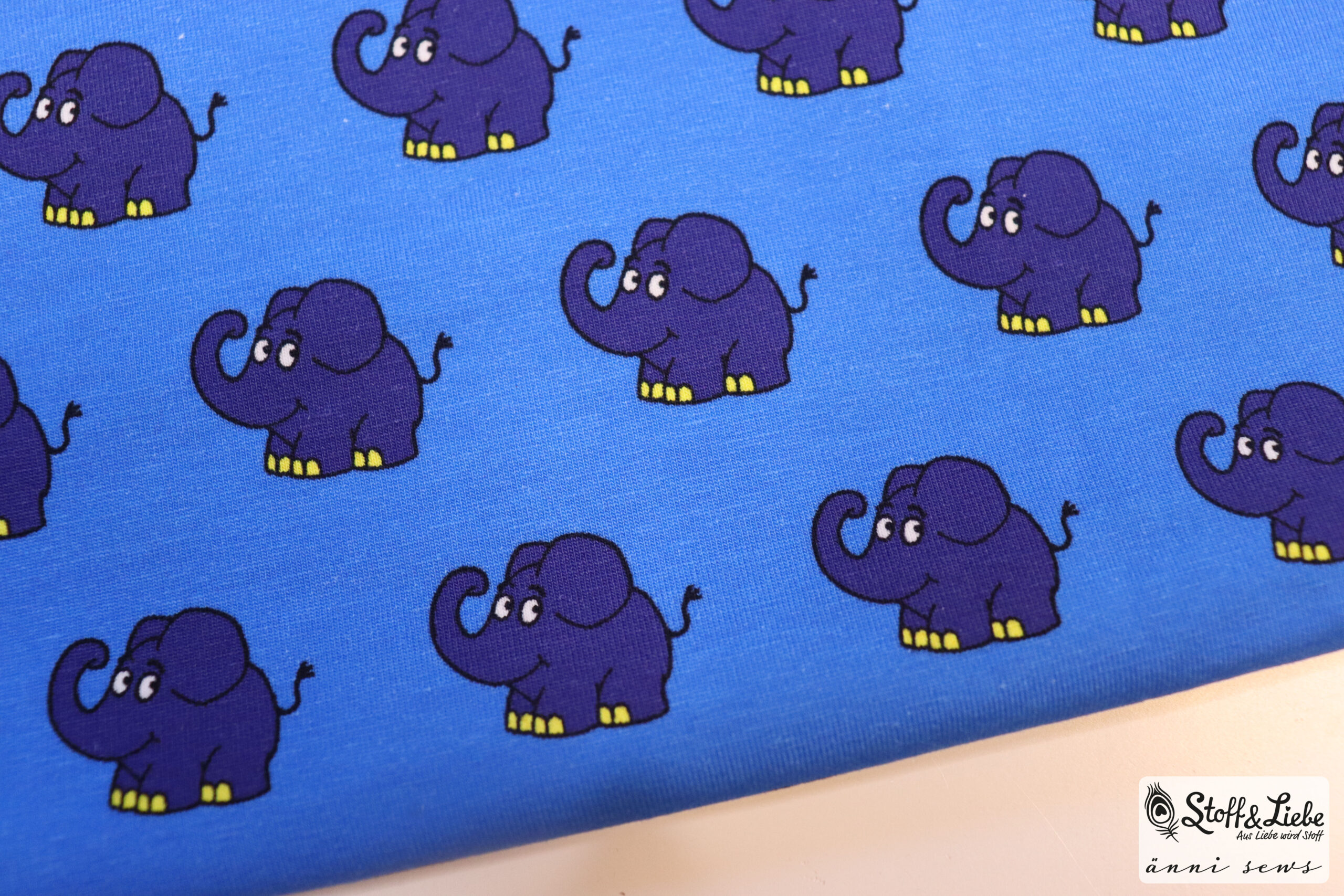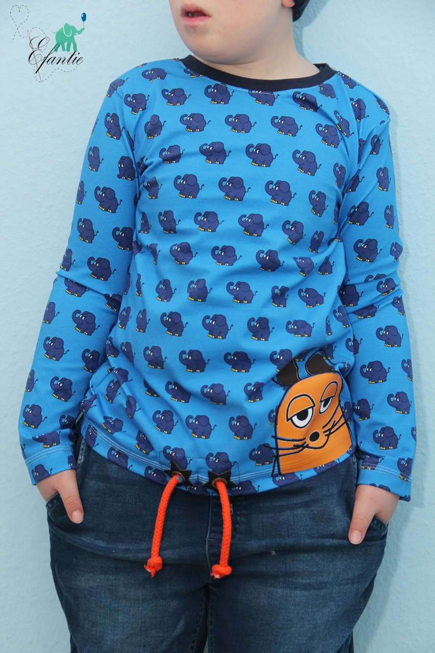 Wie oben schon erwähnt, kommt die Maus nicht allein. Sie hat diesmal den Elefanten mit dabei. Den Elefanten bekommt Ihr auf einem wunderschönen Royalblau. Wie auch die Maus bekommt Ihr den Elefanten auf Jersey in der bekannten Materialzusammensetzung.