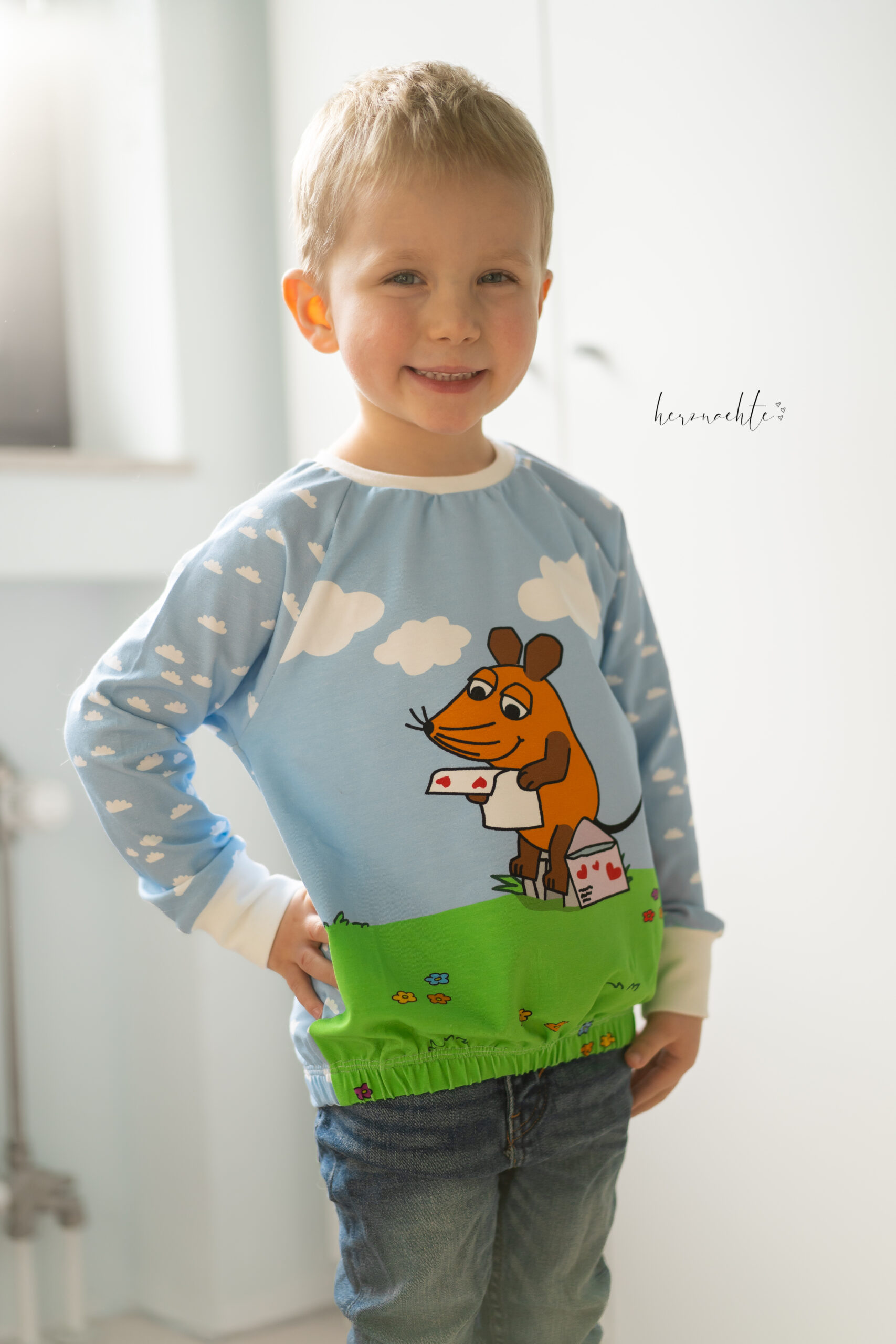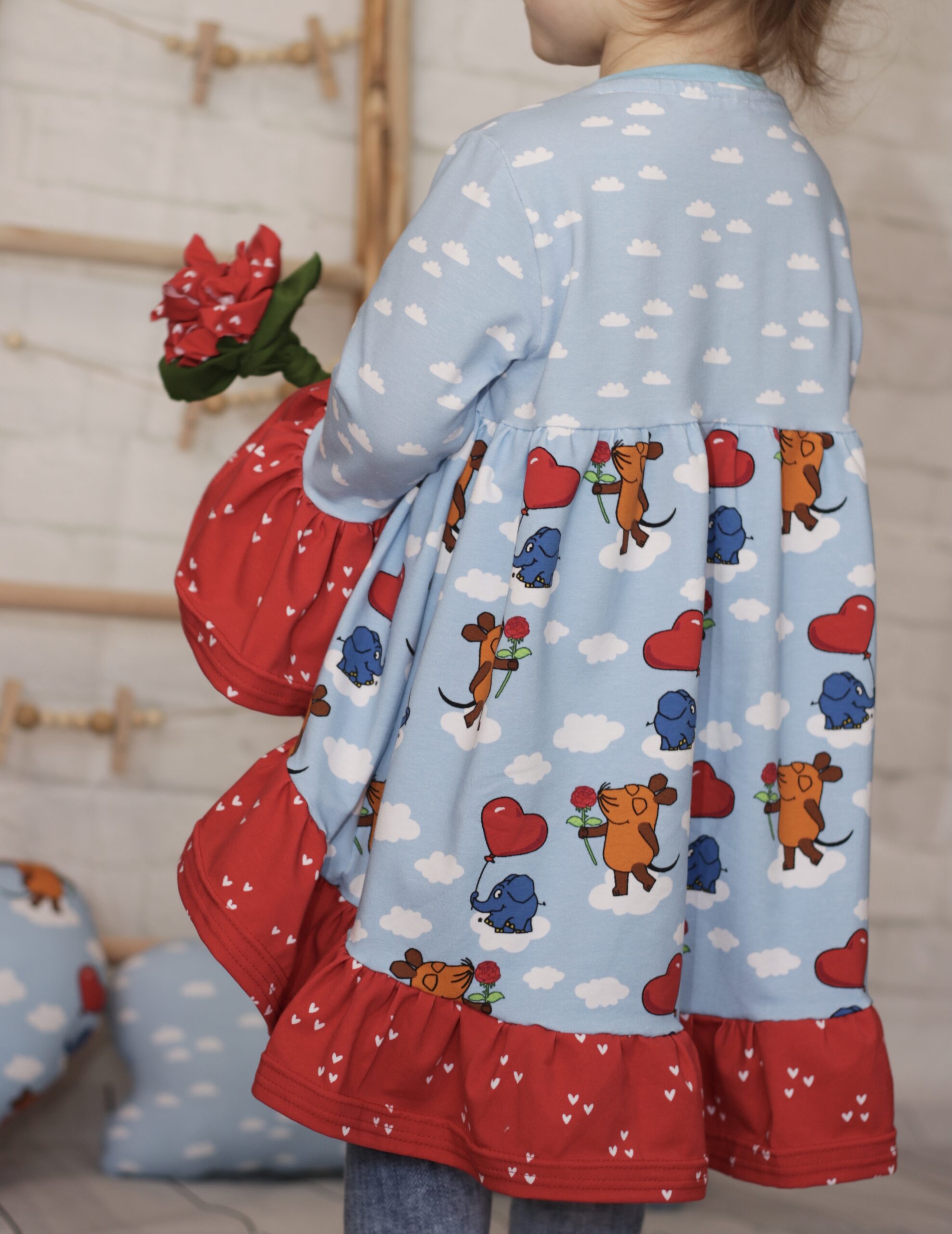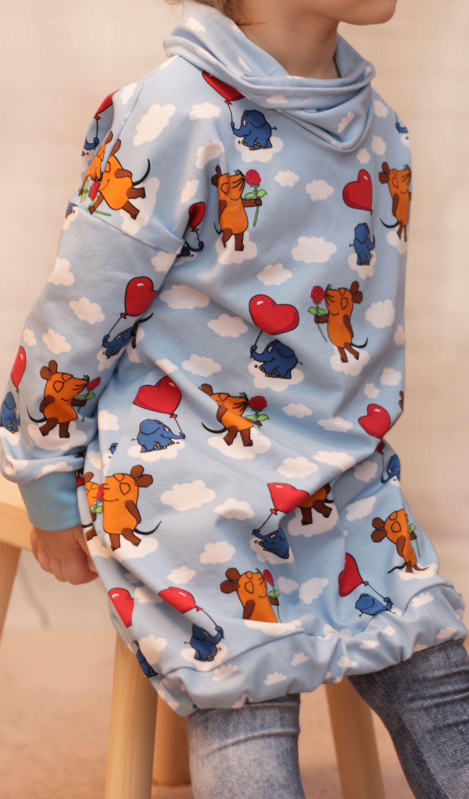 Neu dabei sind die „Wolken“. Natürlich auf einem passendem Hellblau. Wie Ihr seht, lassen sich alle Stoffe der Kollektion untereinander perfekt miteinander kombinieren. So entstehen immer wieder Nähwerke in einem anderen, individuellen Look, ganz nach Eurem Geschmack.