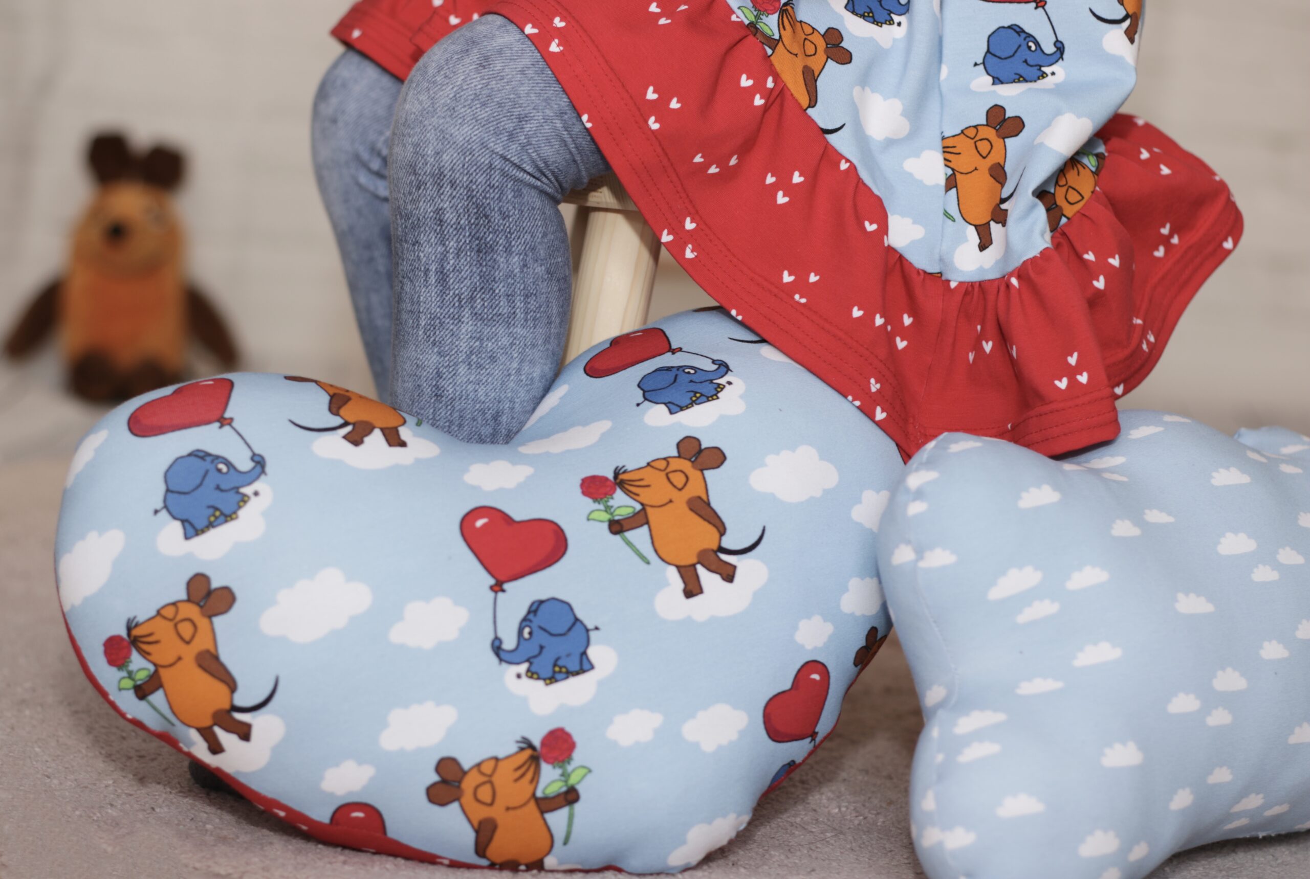 Ich bin vor gut einem halben Jahr auf euch aufmerksam geworden und euren Stoffen seitdem regelrecht verfallen! Vor allem Maus und Pauli haben es mir sehr angetan! Da ich selber keine Kinder habe, benähe ich mit euren tollen Stoffen die Kinder, die grad in meinem Team ( OP Pflege ) unterwegs sind ( 5 Schwangere allein im letzten Jahr ) und kinder die schon größer sind-und es macht irrsinnig Spaß!