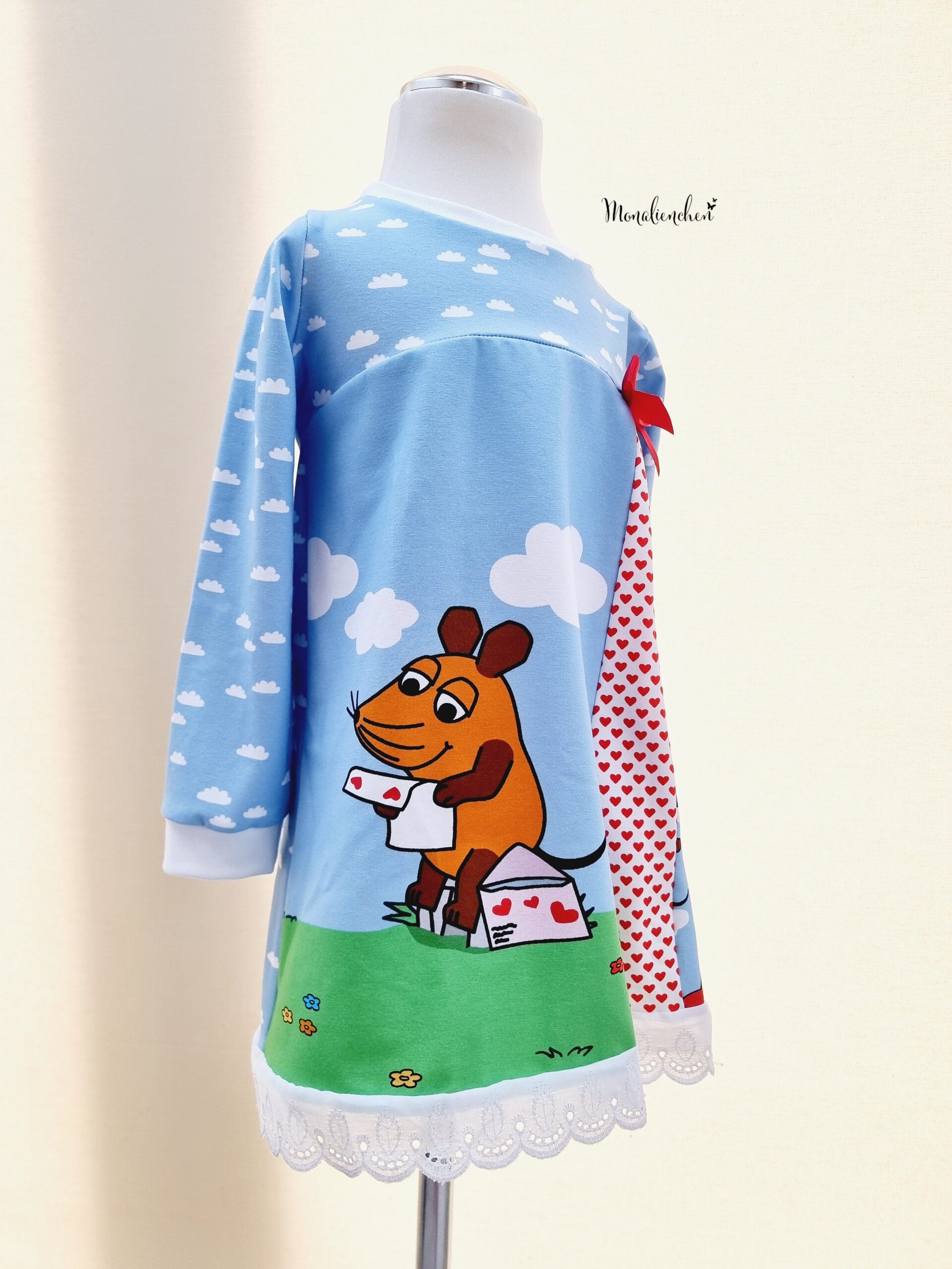 Was ich nicht selbstverständlich finde und wofür ich mich ganz herzlich bei euch bedanken möchte, sind die tollen Zugaben von Maus Pauli und den Mainzelmännchen-die sind großartig und kommen zu den genähten Sachen sehr gut an!