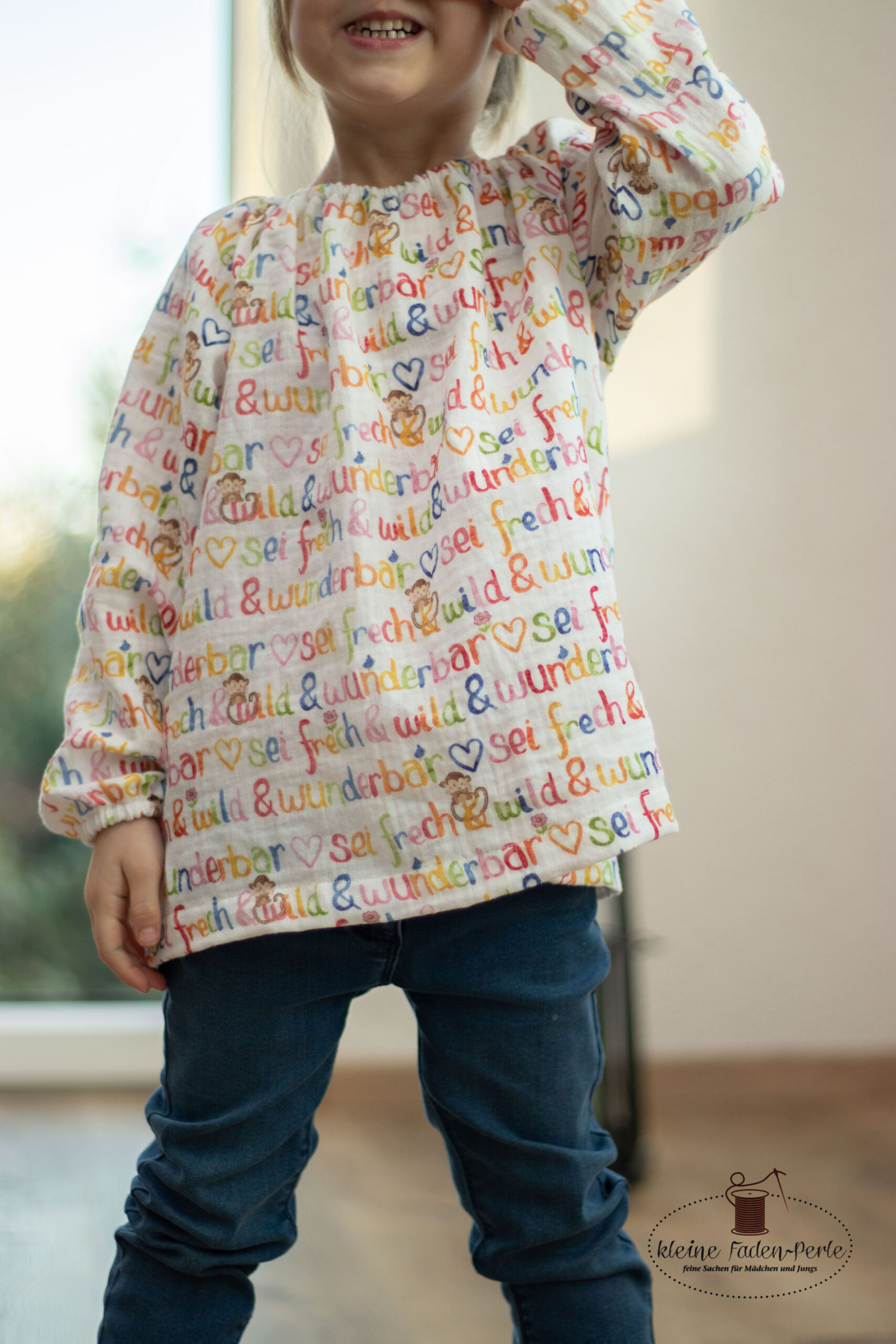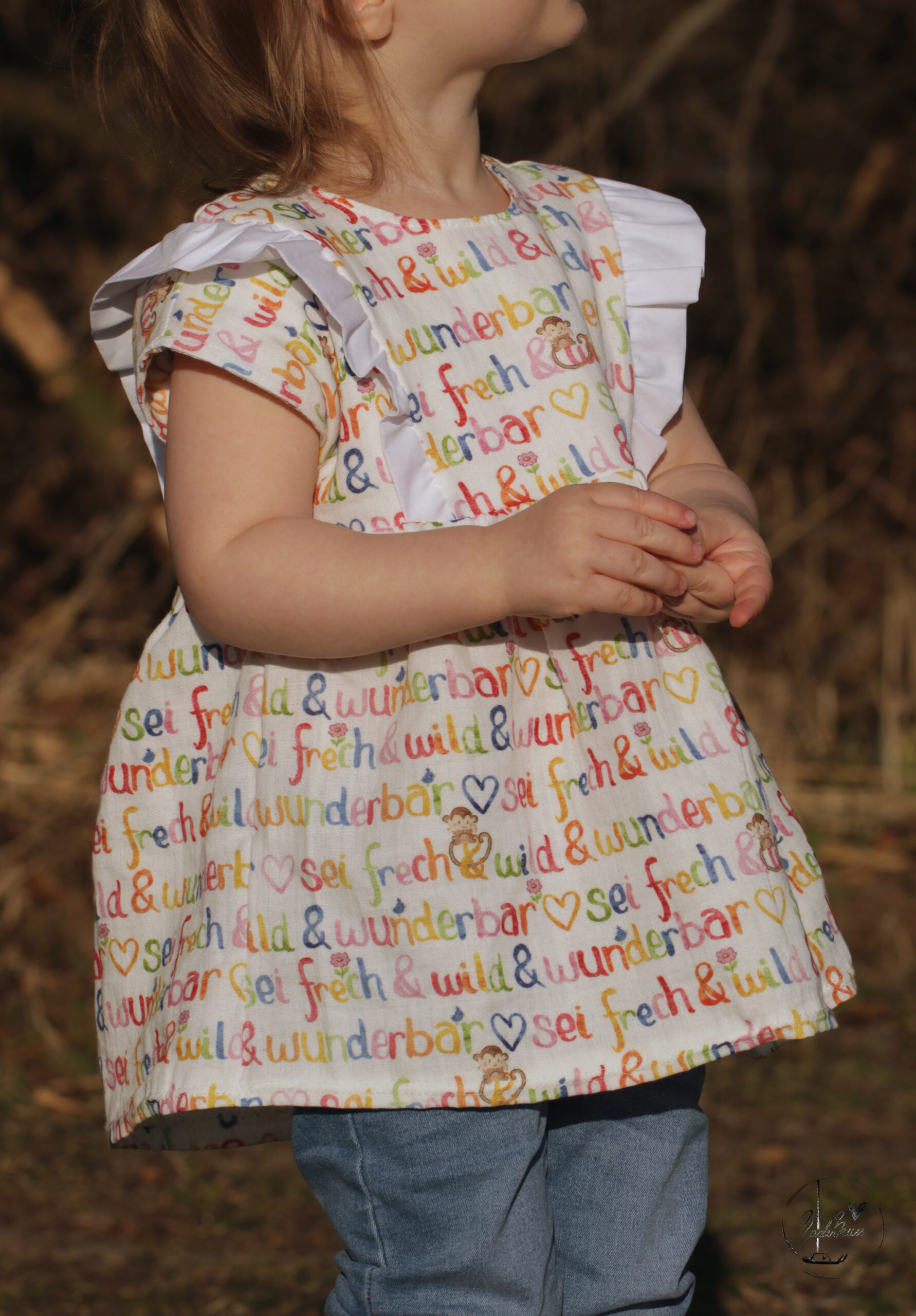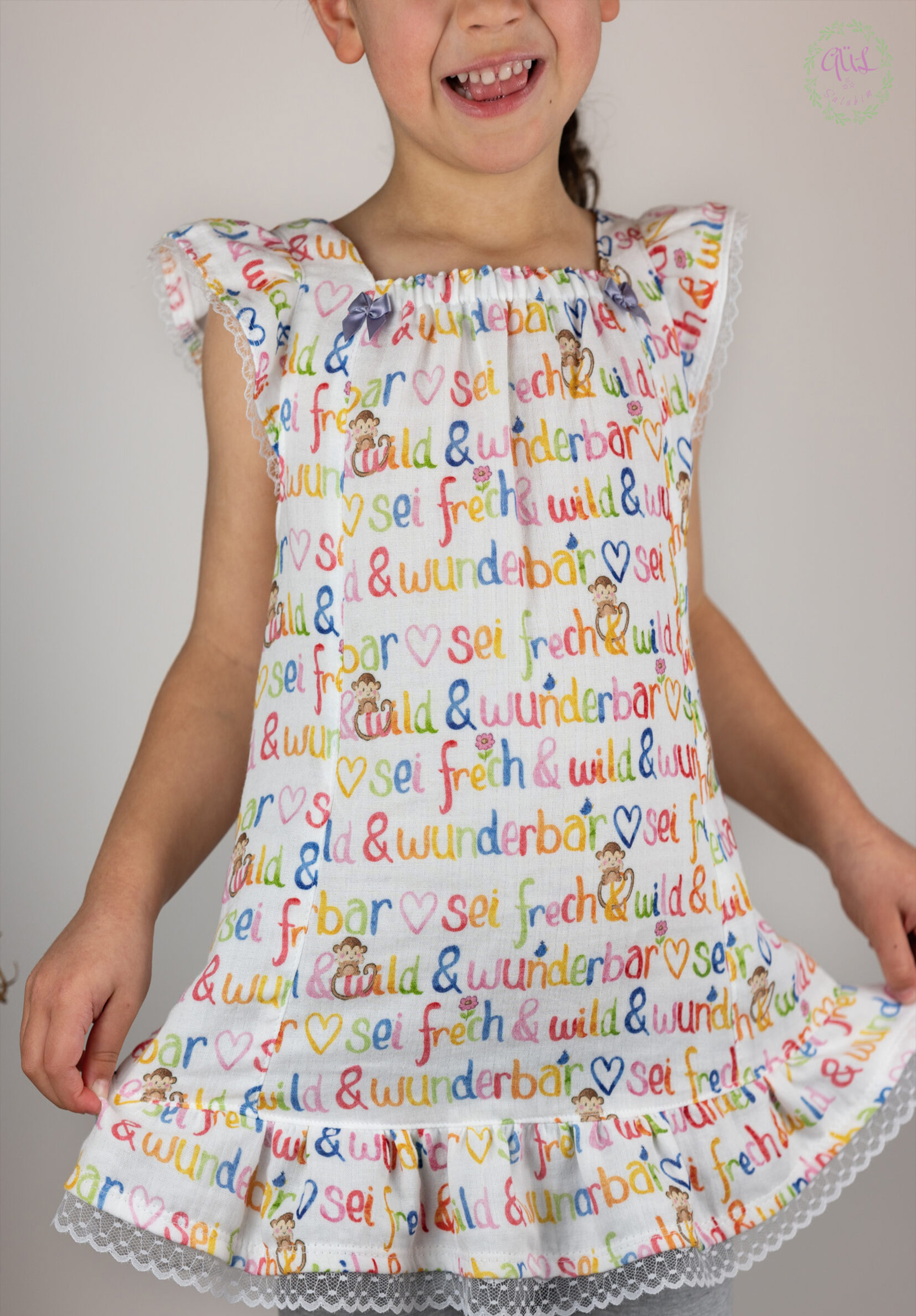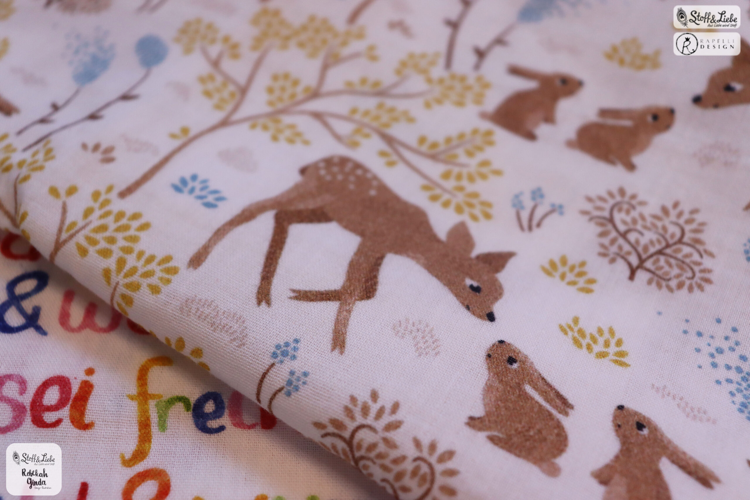 Und jetzt kommen wir zu dem zweiten Design auf Musselin „Sei frech & wild“ aus der Feder von Rebekah Ginda. Dieses Design habt Ihr und natürlich auch wir, sehr ins Herz geschlossen. Uns scheint, als ob Ihr gar nicht genug davon bekommen könnt. Wir hatten dieses Design bereits auf Jersey, French Terry, Canvas, Softshell und Lycra. Es stand außer Frage, Sei frech & wild & wunderbar auf Musselin ist ein absolutes Muss!