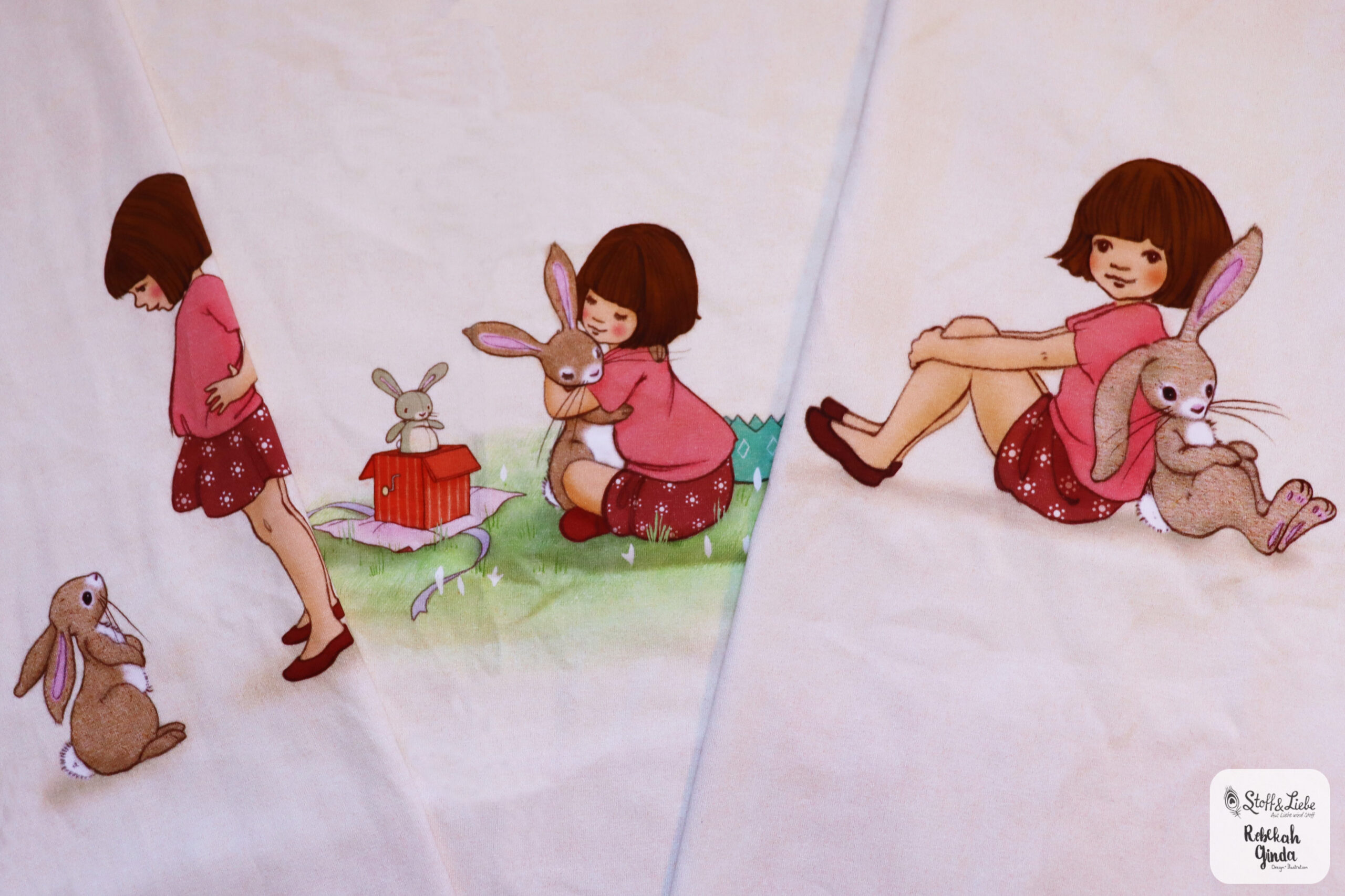 Unsere „Belle & Boo – Forever Friends“ Kollektion besteht aus einem Panel, zwei Haupt- und einem Kombistoff. Die Stoffe erhaltet Ihr auf Jersey in unserer gewohnten Spitzenqualität. Die Materialzusammensetzung beträgt 95 % Baumwolle und 5 % Elasthan. Dieses Design wurde von Rebekah Ginda für uns umgesetzt.