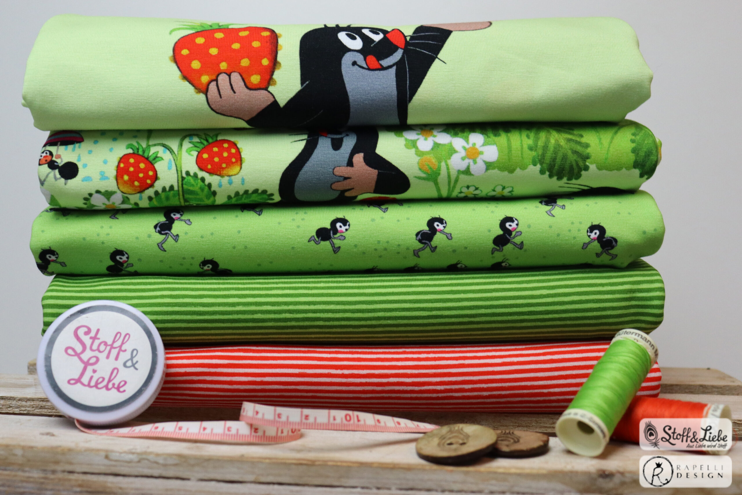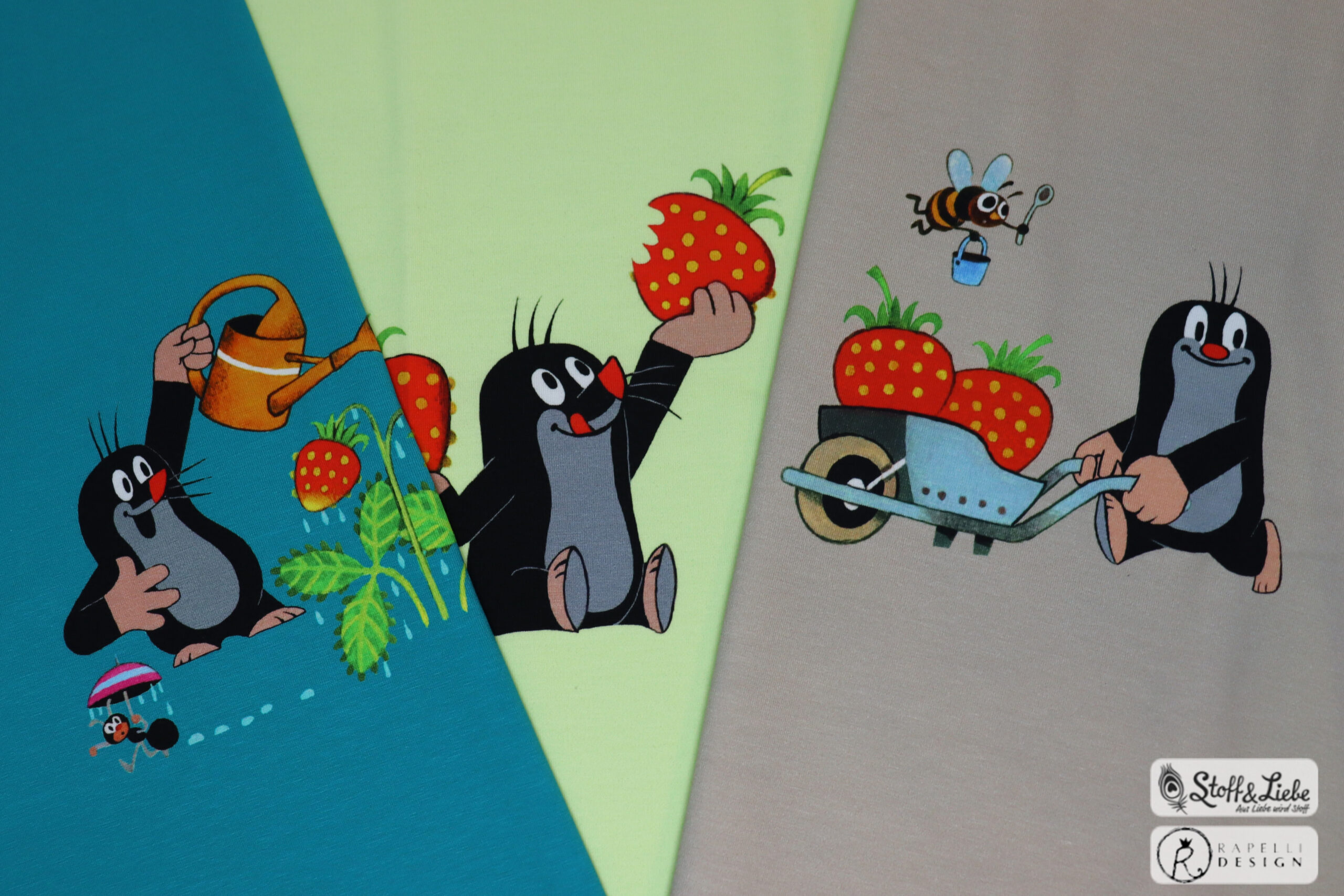 Das Design „Der kleine Maulwurf – Erdbeerfeld“ wird es nach und nach in unterschiedlichen Farben geben. In dieser Woche haben wir eine Auswahl in Grün für Euch und ganz bald werden weitere fantastische Farben folgen. Wisst Ihr noch, welche wir bereits gezeigt hatten? Eine ist schöner als die andere und jeder wird ganz bestimmt seine Lieblingsfarbe darunter finden. Lasst Euch überraschen.